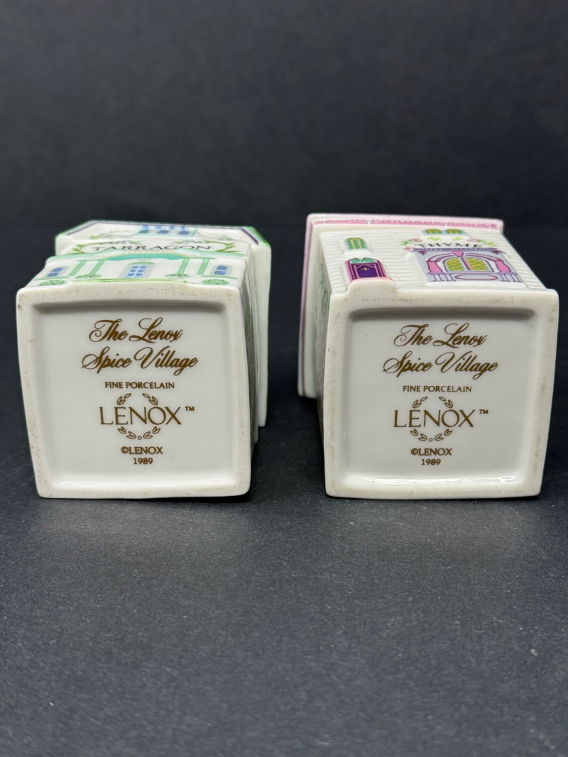 Lot # 45 - Lenox Village Spice Jar Set – Tarragon & Thyme Ceramic Houses – 1990s