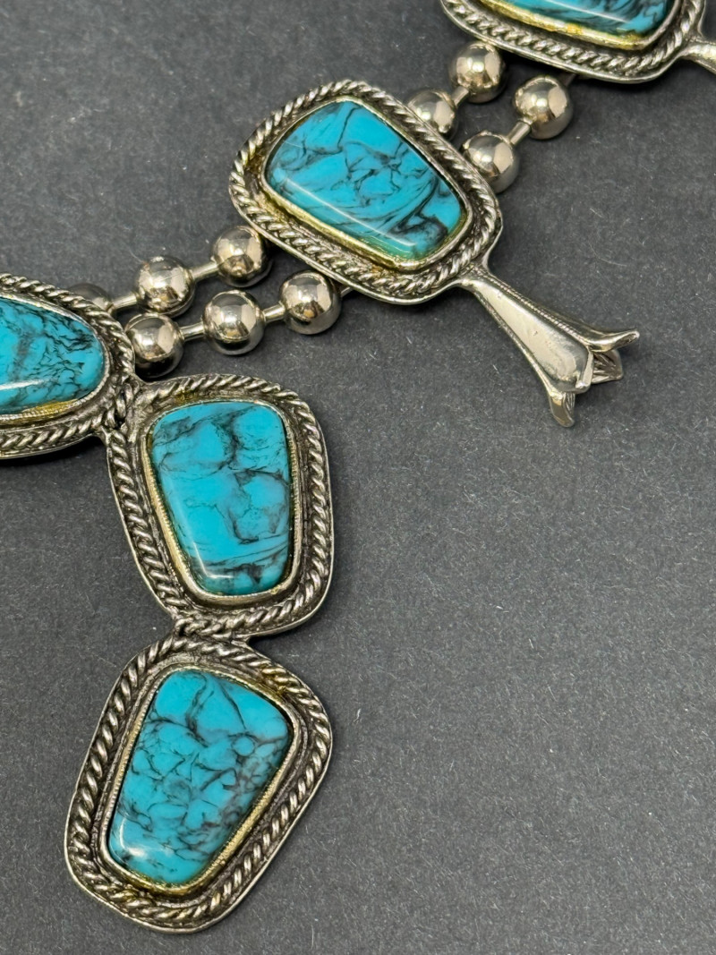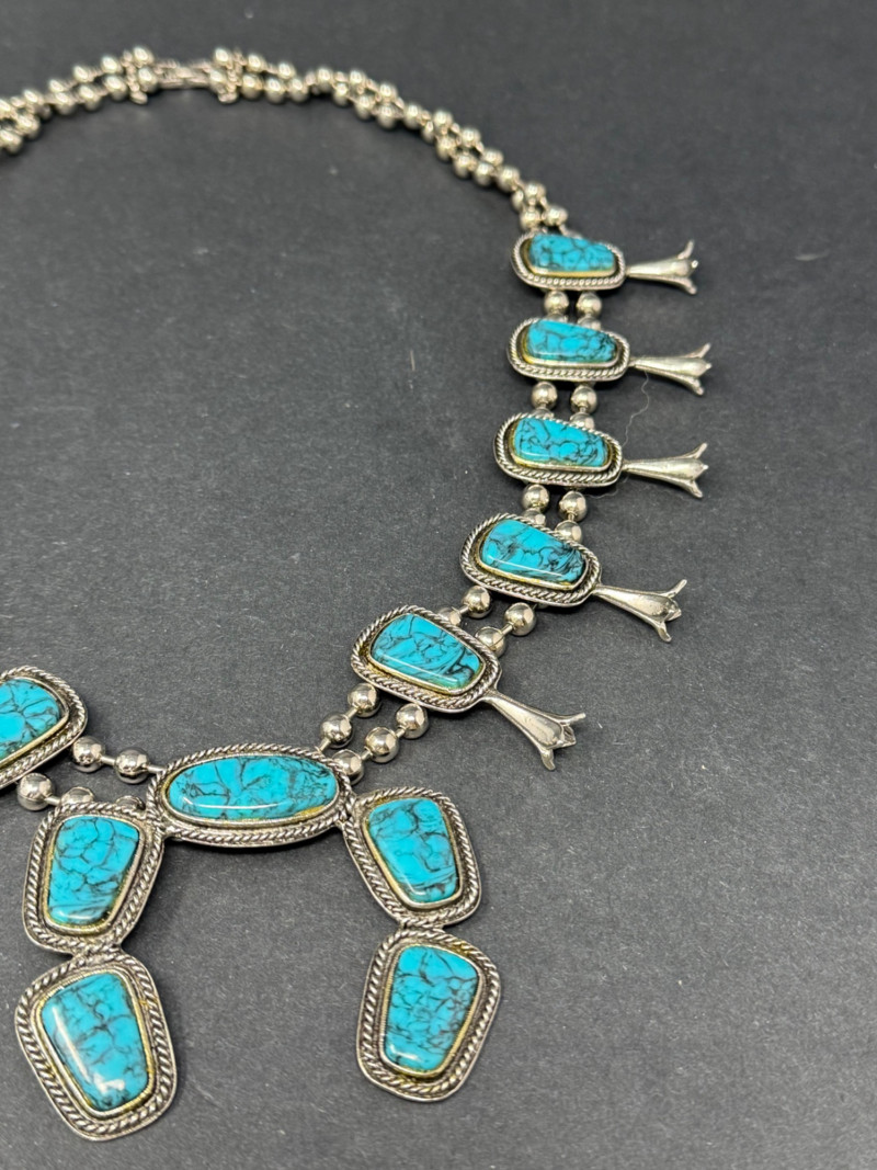 Lot # 3 - Vintage Navajo Sterling Silver & Turquoise Squash Blossom Necklace