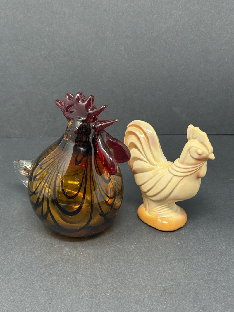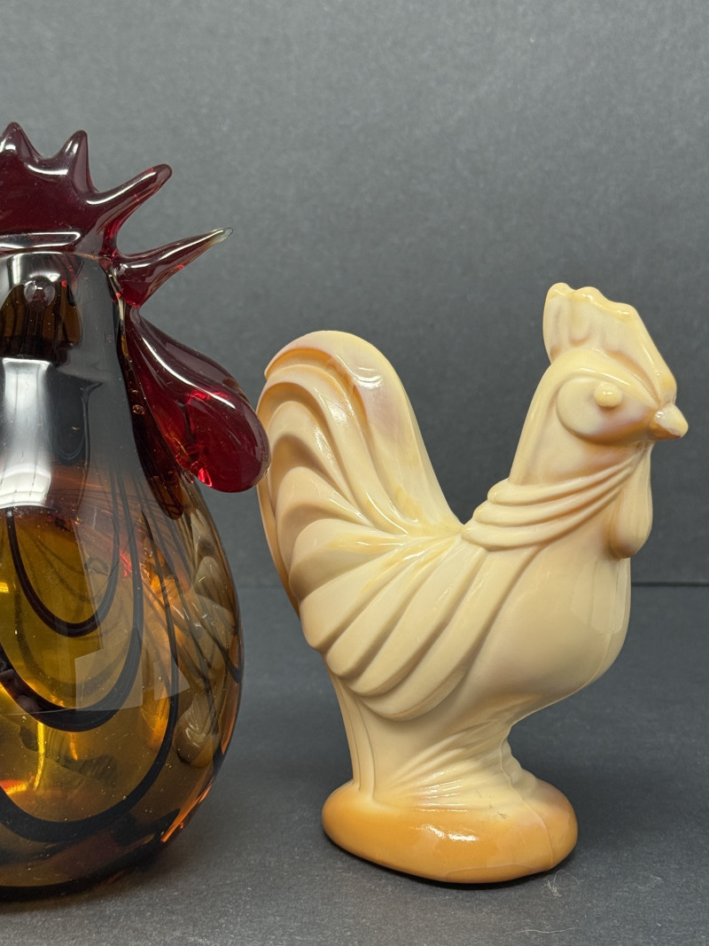 Lot # 61 - Murano Art Glass & Fenton Ceramic Rooster Figurines