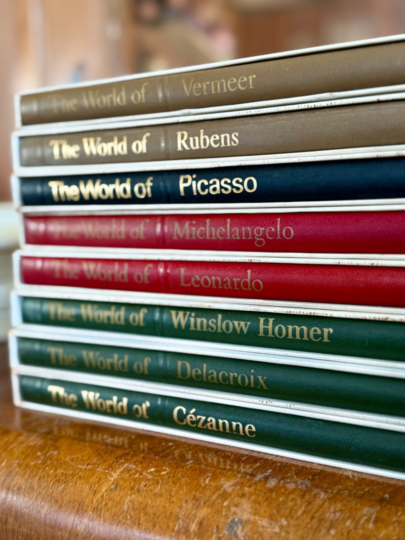 Vintage Art Book Collection – Set of 11 – Iconic Artists, Movements & Collectibles A beautifully curated collection of 11 vintage hardcover art books featuring legendary artists and movements, perfect for display or reference. This set includes highly collectible volumes from the Time-Life “The World of…” series, along with sought-after titles like The Art of Walt Disney and Perillo Collectibles Edition. Includes: The Art of Walt Disney by Christopher Finch (Abradale/Abrams, 1975) Perillo Collectibles Edition (Signed by Perillo and DiLauro, United States Historical Society) Art of the Western World (WNET Educational Media) The World of Cézanne The World of Delacroix The World of Winslow Homer The World of Leonardo The World of Michelangelo The World of Picasso The World of Rubens Dimensions Range: Condition: Very good vintage condition overall. Minor wear to edges and jackets consistent with age. All bindings tight and pages clean. Ideal for: Interior styling, gallery libraries, art students, collectors, or anyone curating a refined vintage library aesthetic.