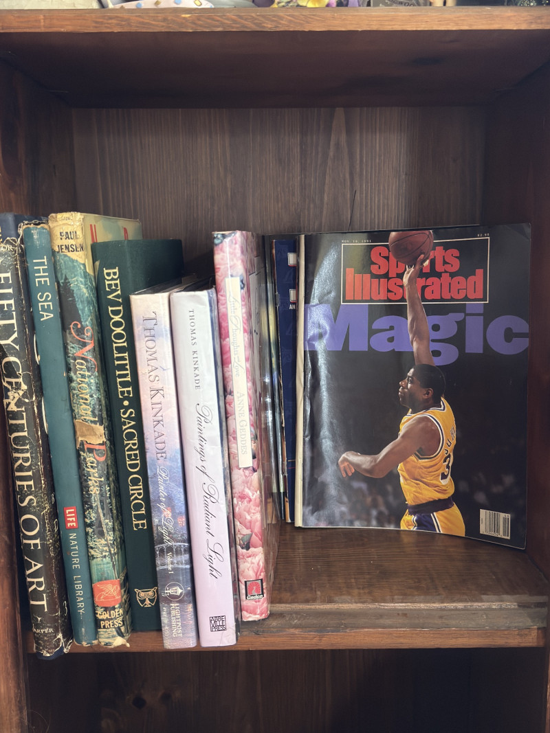 Vintage Art Book & Sports Illustrated Collector’s Bundle – Mixed Media & Visual Treasures This well-rounded shelf lot offers a rich mix of vintage and collectible art books paired with an iconic Sports Illustrated issue featuring Magic Johnson. Ideal for lovers of visual culture, design, sports history, or coffee table curation. Highlights Include: Fifty Centuries of Art – Hardcover visual encyclopedia The Sea – LIFE Nature Library Edition Bev Doolittle’s Sacred Circle – Oversized art monograph Thomas Kinkade – Two hardcover titles: Painter of Light and Paintings of Radiant Light Anne Geddes – Pure photography collection Sports Illustrated (Nov. 18, 1991) – Featuring Magic Johnson in his Lakers prime Additional softcover art publications, photography books, and visual anthologies Approximate Dimensions: Why It’s Special: