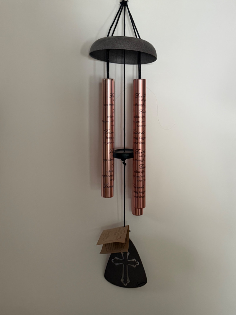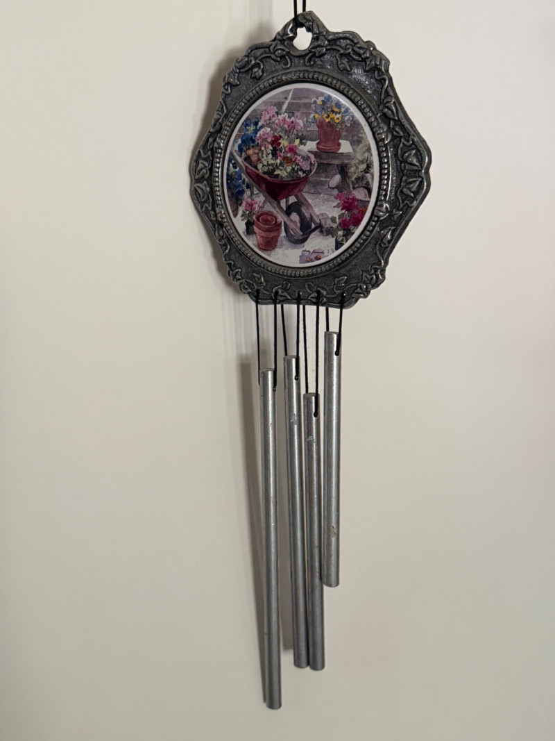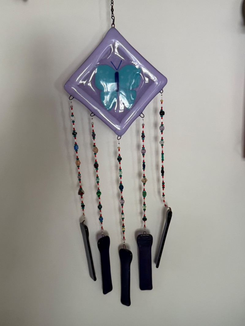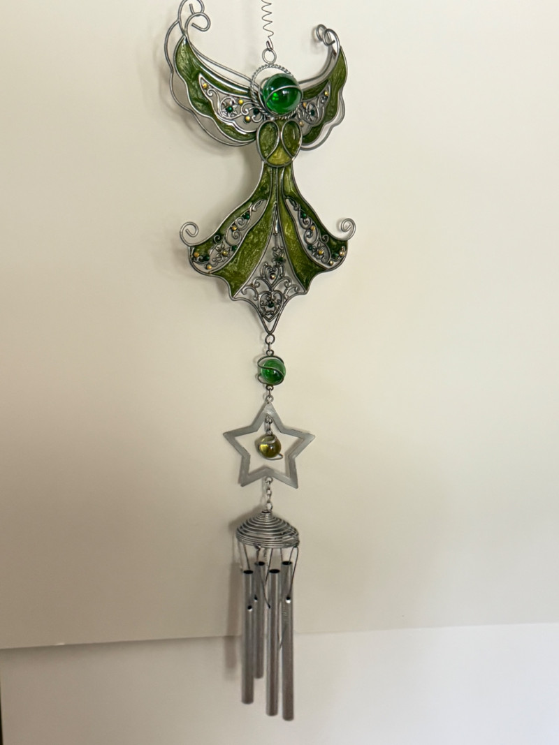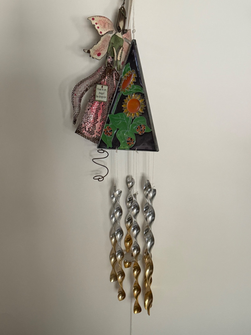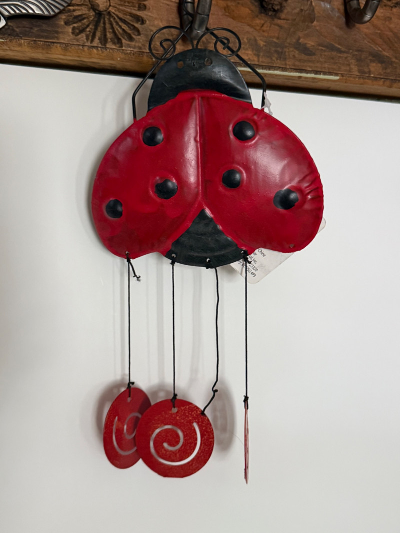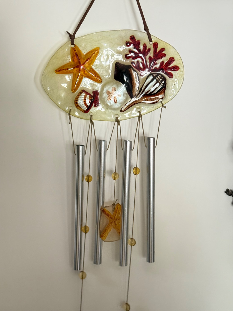 Eclectic Wind Chime Collection – Mixed Materials, Handmade & Artistic Styles A delightful assortment of wind chimes and hanging décor, this collection brings together a mix of whimsical, spiritual, and coastal themes across a range of materials, finishes, and sounds. From handcrafted beaded strands to nautical glass, copper tubes, and painted metal shapes, this display is full of movement, charm, and melody. Collection Features: Artisan and handmade chimes with beads, fused glass, and found objects Themed designs including ladybugs, sea stars, celestial motifs, and crosses Materials include metal, copper, stained glass, ceramic, wood, and resin Mixed tones from soft tinkles to deep resonant chimes Great for patios, gardens, porches, or window displays Size range: Approx. 6" to 30" in total hanging length Condition: Most pieces are in excellent pre-owned condition; some may show light wear or patina from use or age.