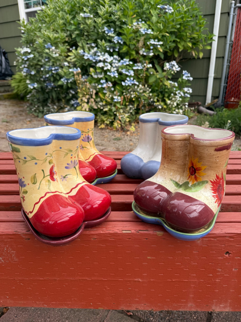 Fitz and Floyd’s ceramic creations are highly collectible, known for quality and imaginative designs. These boots are a standout example of their 1990s garden-themed line—rare to find as a complete set of four. Adds a perfect pop of personality to cottagecore, farmhouse, or eclectic interiors.