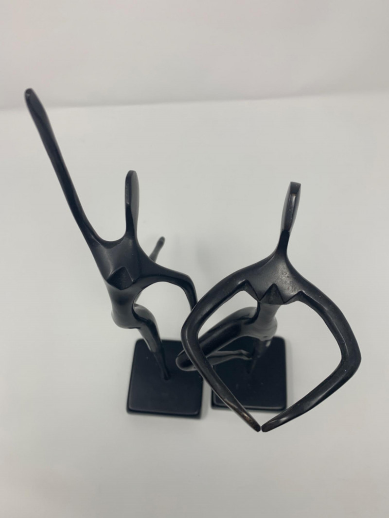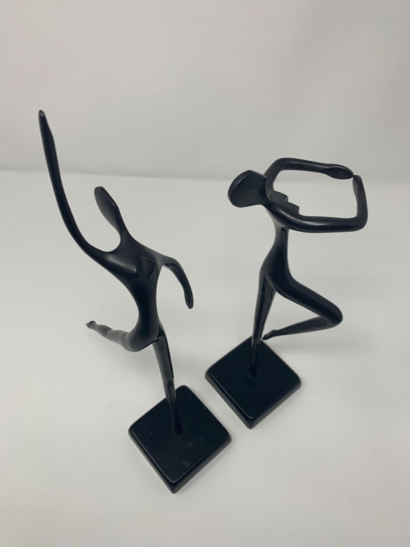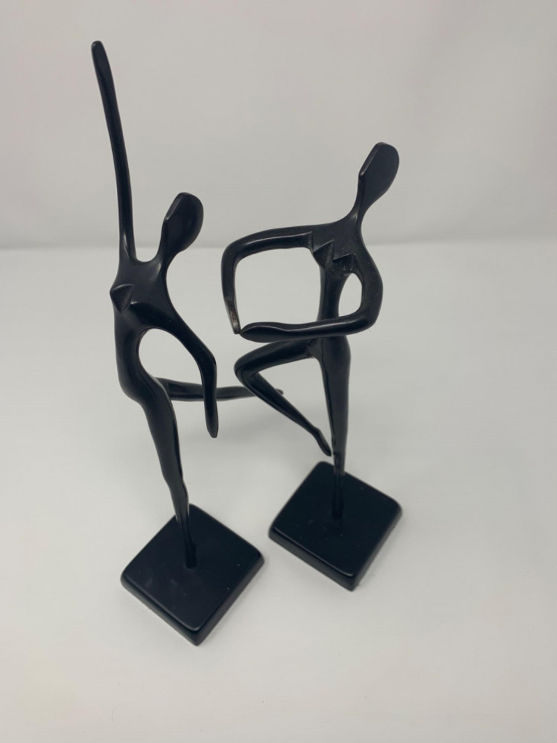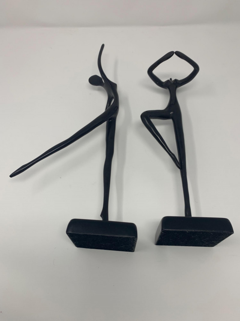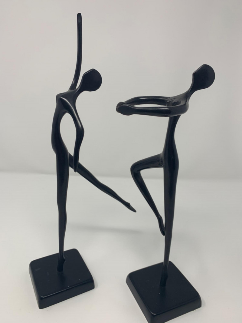 Two bronze black painted sculptures by Artist Bodrul Khalique, a colleague and British contemporary designer for IKEA. These ballet dancers were marketed around 2000 and still collectable.