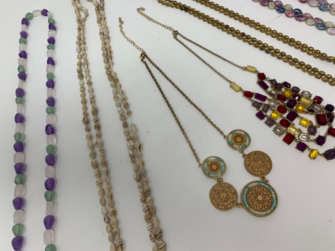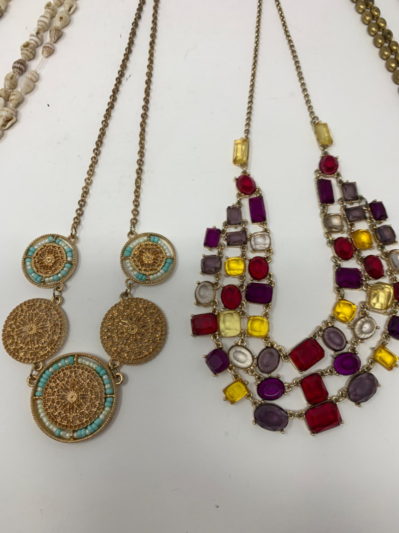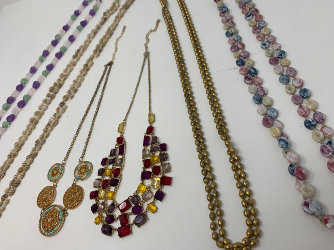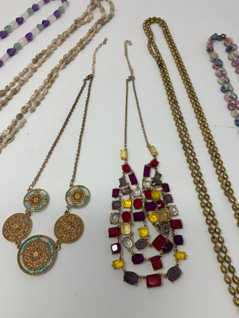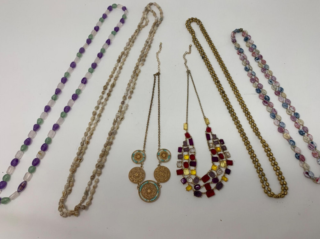 Lot of six costume jewelry necklaces of various lengths and colors.