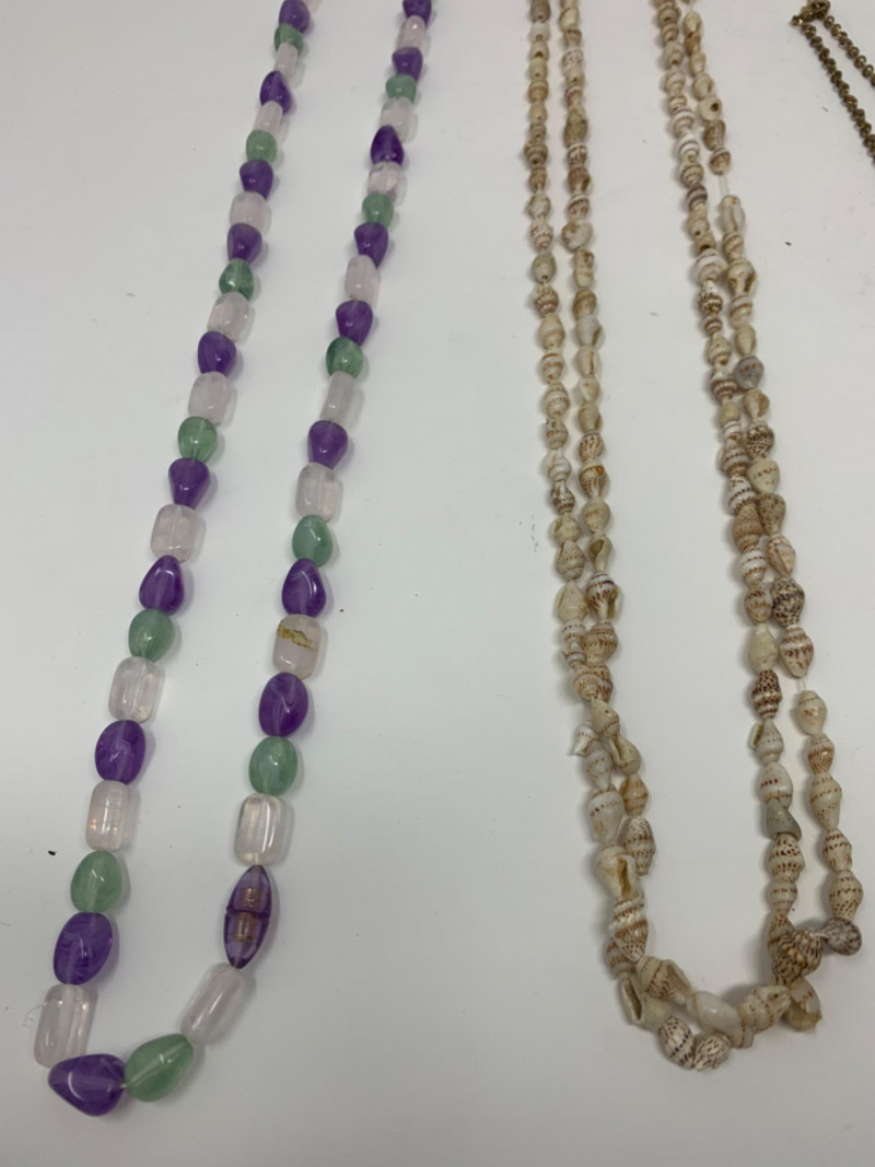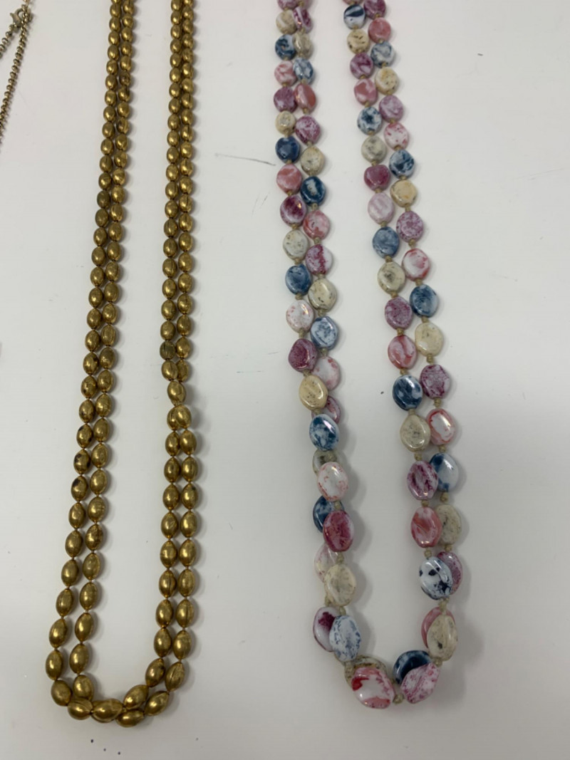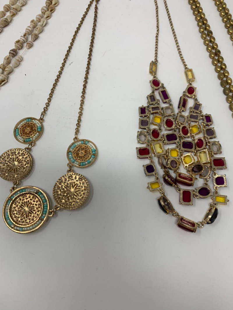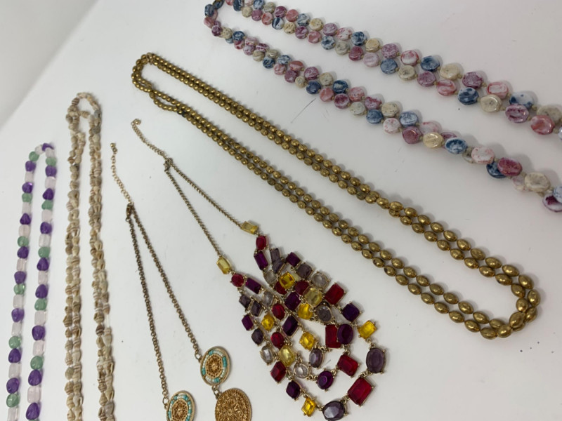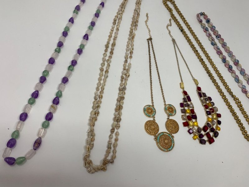 Lot of six costume jewelry necklaces of various lengths and colors.