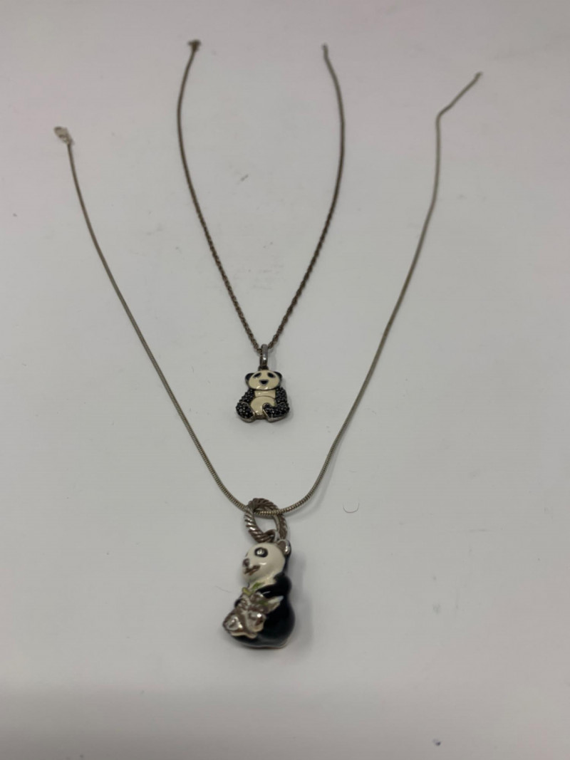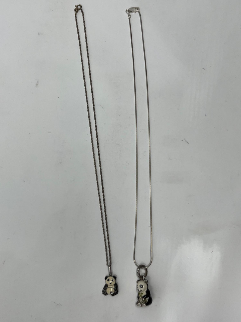 Lot # 101 - Lot of 2 Necklaces: .25 carat TW Black Diamond & Enamel Pandas