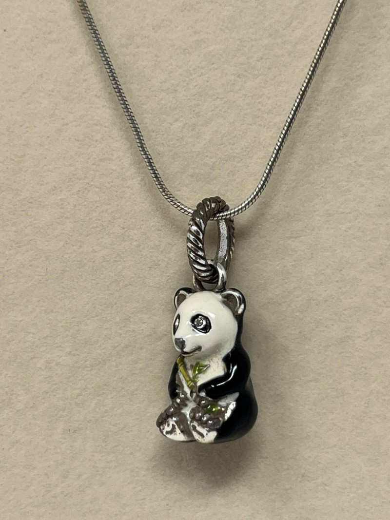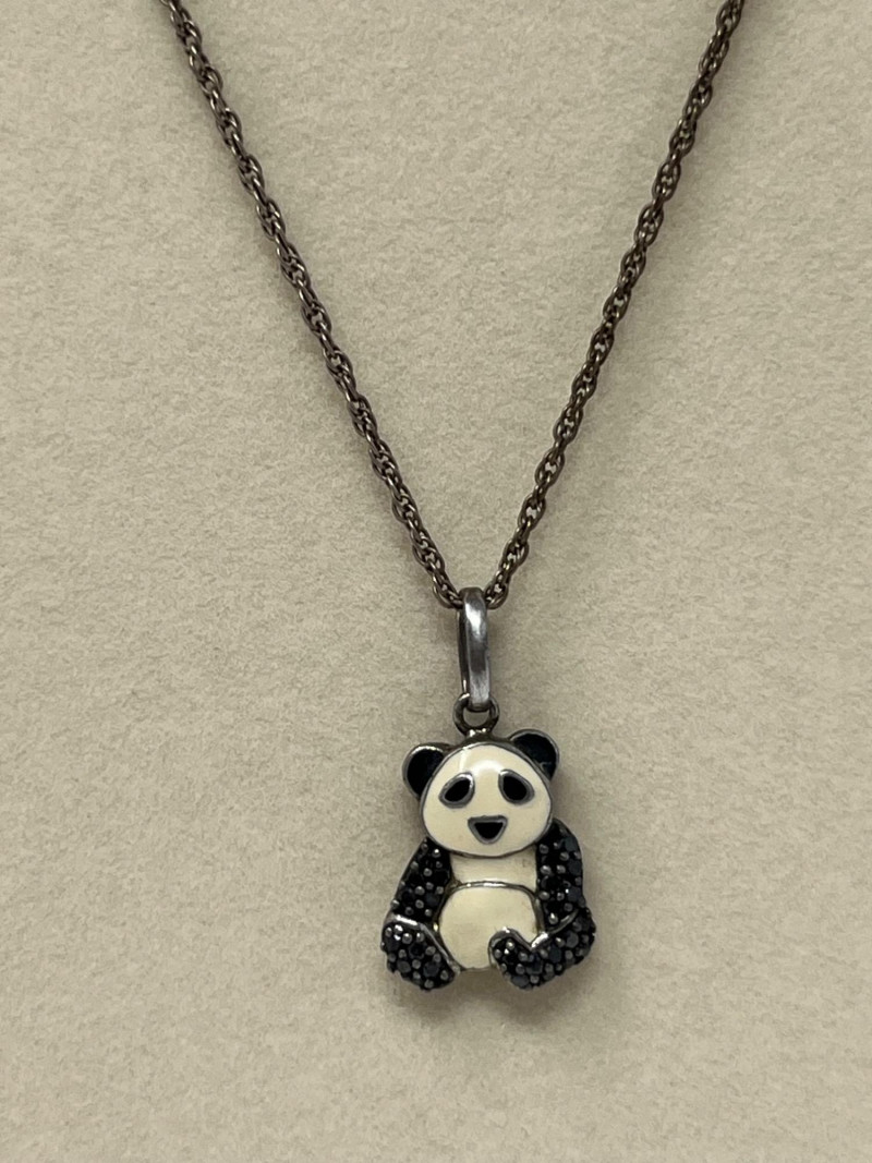 Zales Panda Diamond & Silver Necklace Pendant 18” length Brighton Sterling silver chain markings 925 silver. White and black. 18” length