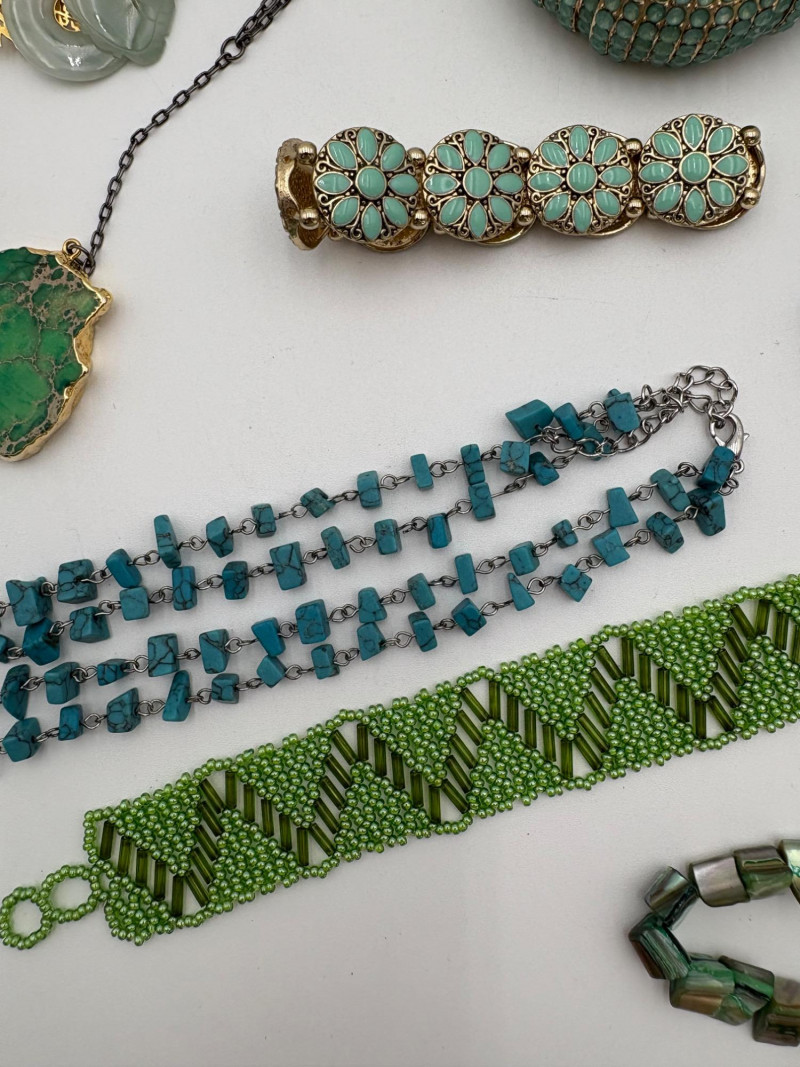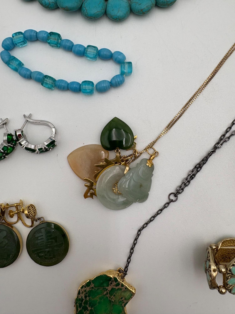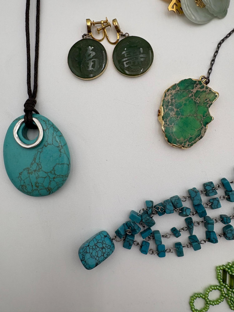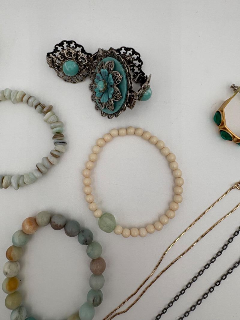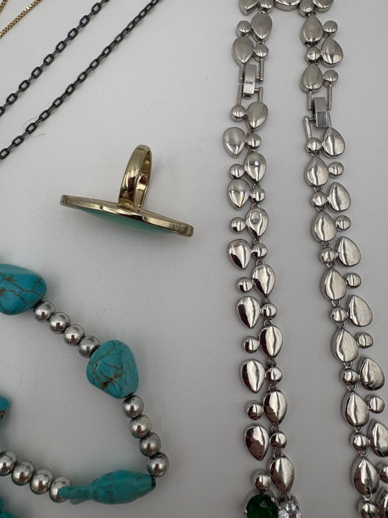 Mixed jewelry lot - what you see is what you get. Please note that while we gave the pieces a look, they were not inspected; nothing egregious was noted during that quick look, however.