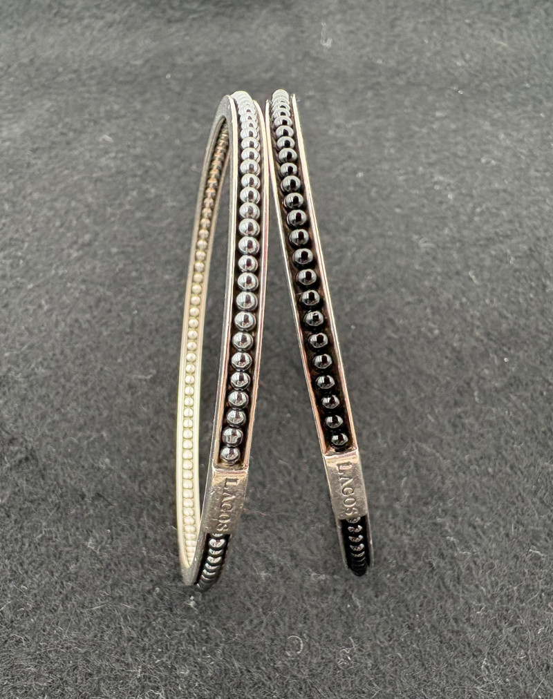 Lot # 46 - Sterling Caviar Icon Bangle Bracelet Pair - LAGOS
