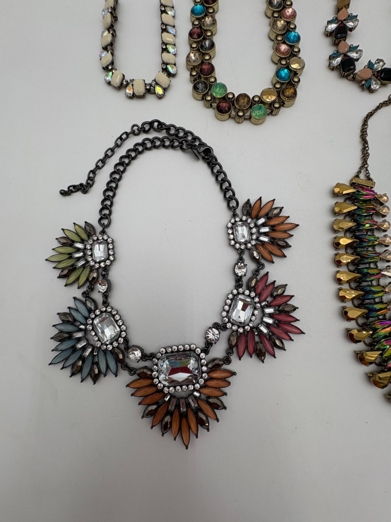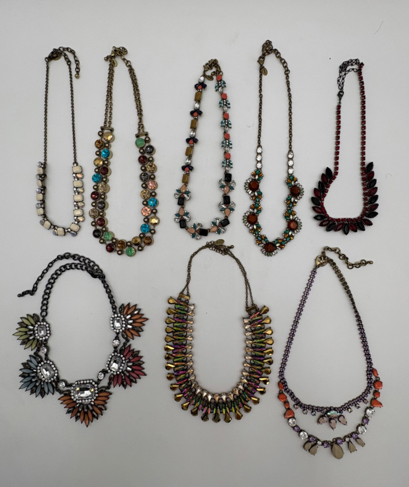 Mixed sparkly necklace lot - what you see is what you get. Most of these are from Lori Goldstein/LOGO. Please note that while we gave the pieces a look, they were not inspected; nothing egregious was noted during that quick look, however.