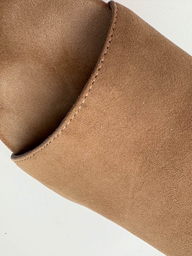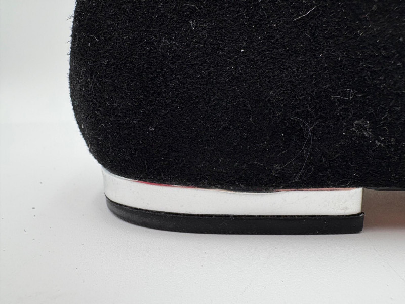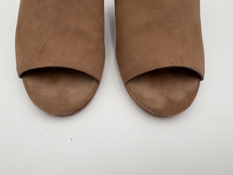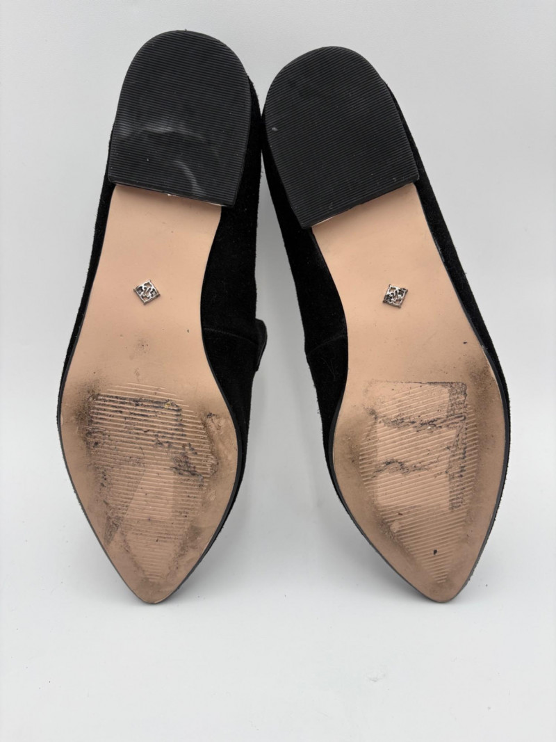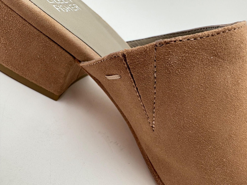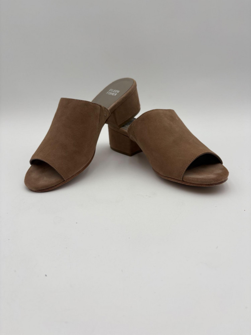 Nanette black suede tuxedo-style flats with pointed toe. Size 7. Eileen Fisher open toe suede mules with self-covered heel and in-step gusset. Size 7.