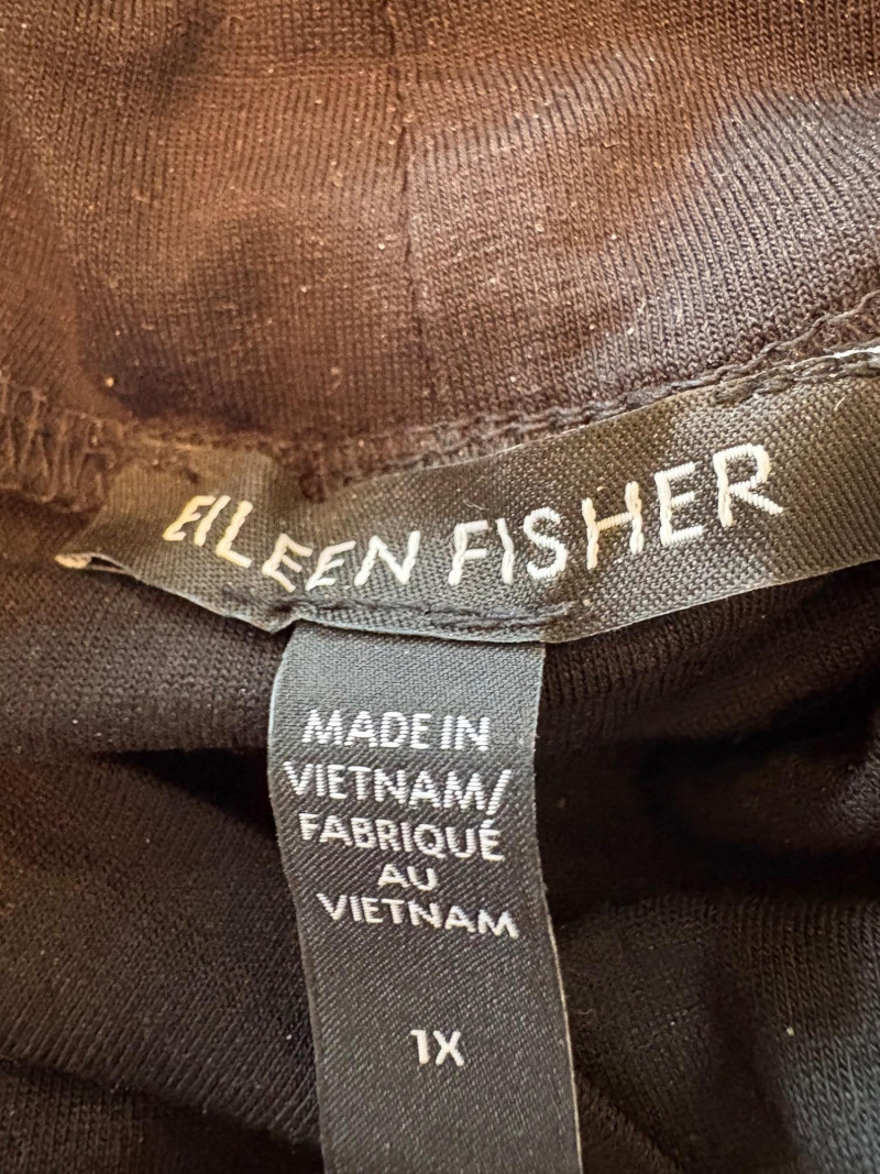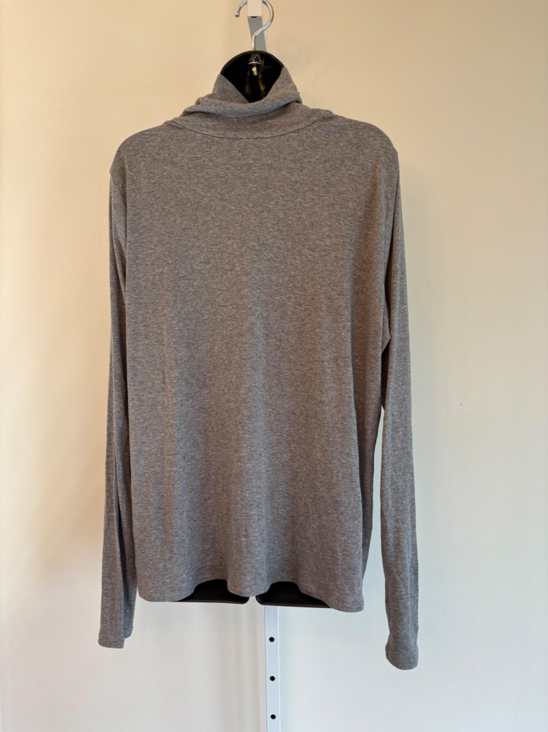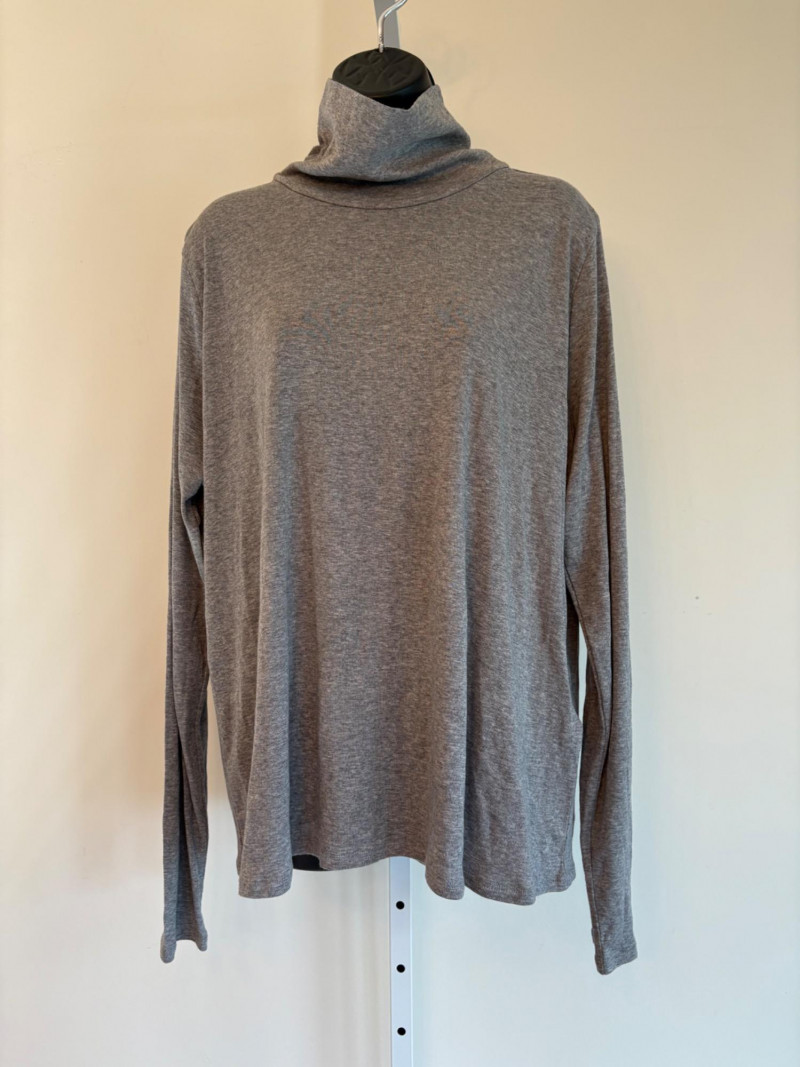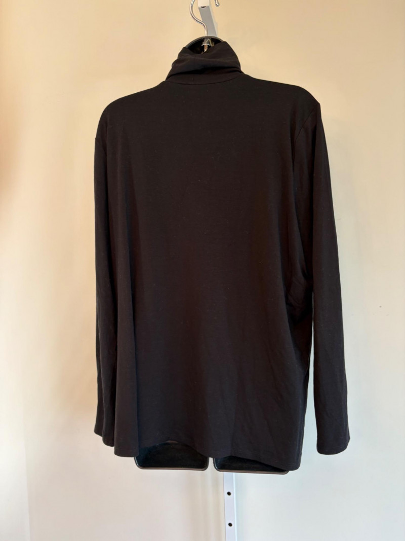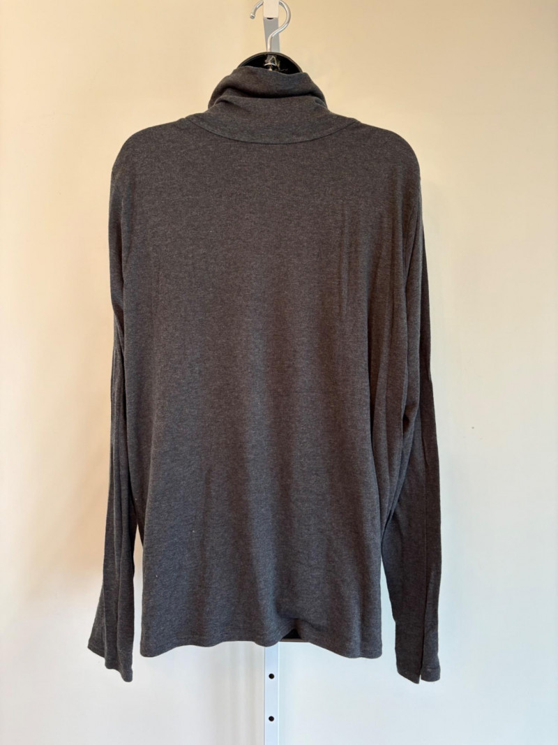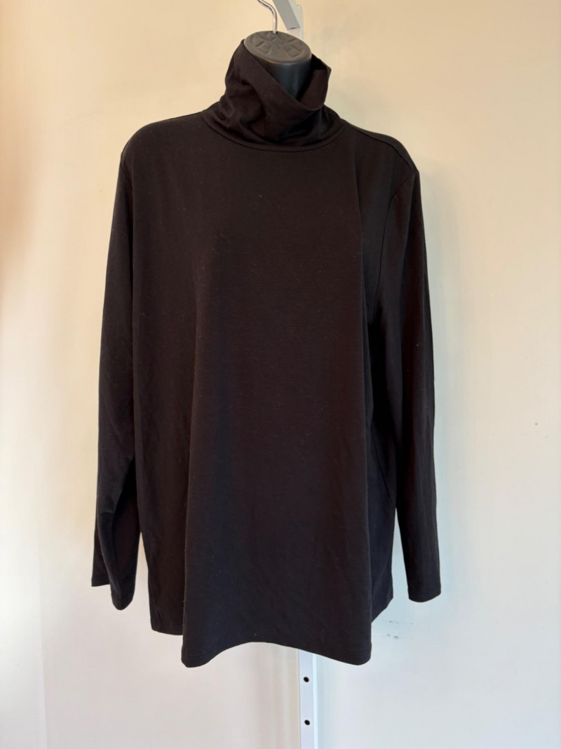 4 turtlenecks in dark neutral colors from Eileen Fisher for transitional fall season. All measure between 24" - 25" pit to pit and all are extremely soft to the touch. 2 identical dark grey turtlenecks from Eileen Fisher. This particular shade of grey looks great with black, white, and a host of other colors (our client had A LOT of this color). One shirt is new with tag. Both are organic cotton/Tencel Lyocell blend. Size tag on the older one says 1X. Size tag on the new one says XL. Light grey turtleneck is also an organic cotton/Tencel Lyocell blend. Size tag says 1X. Black turtleneck is a Tencel Lyocell/elastane blend. Size tag says 1X.