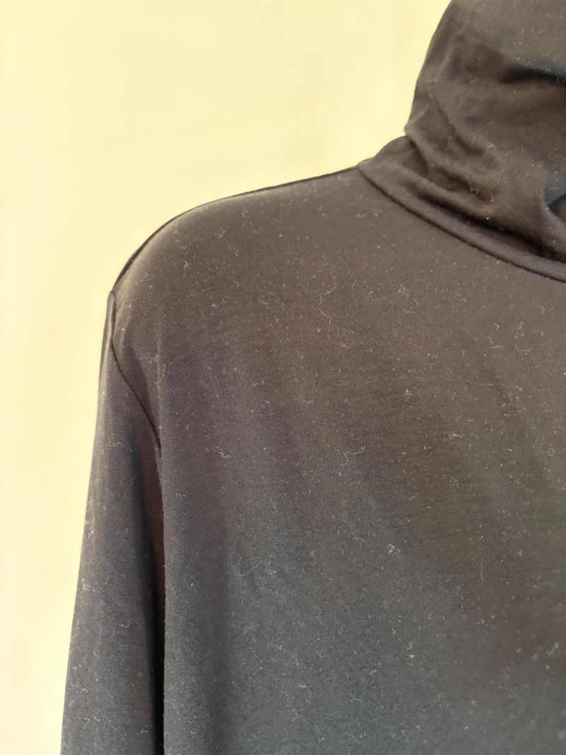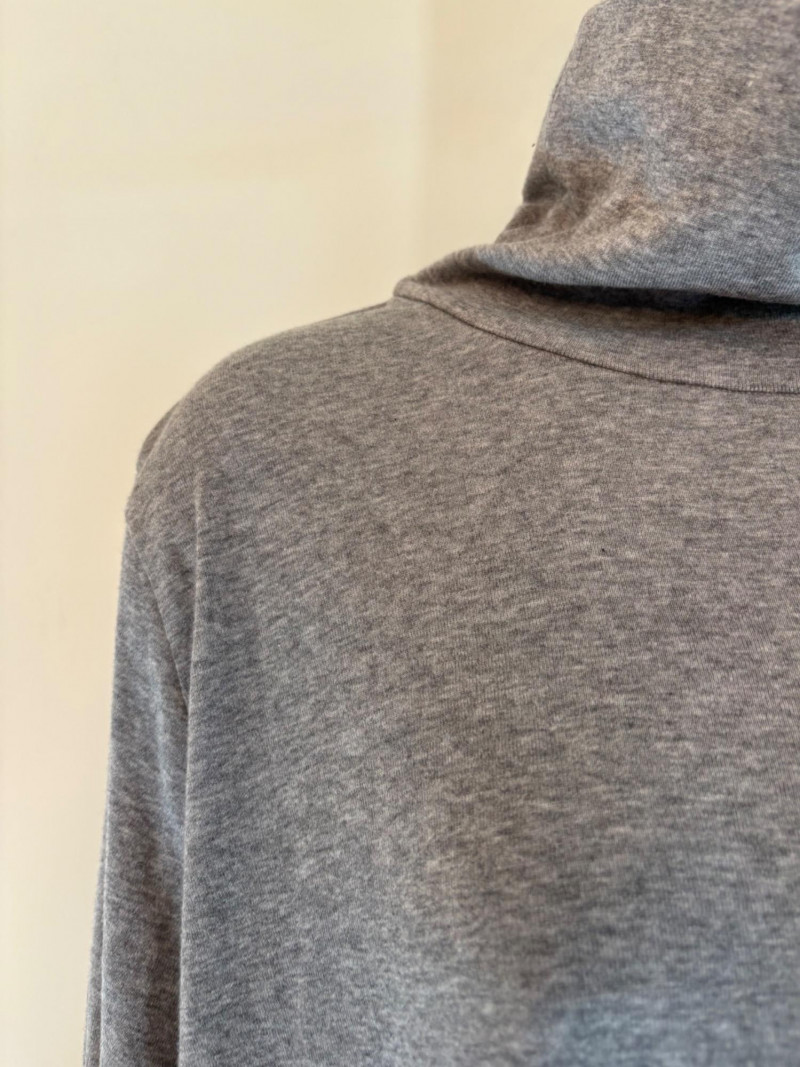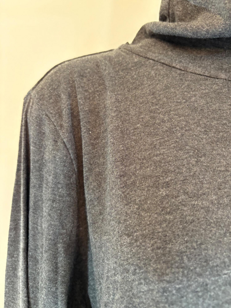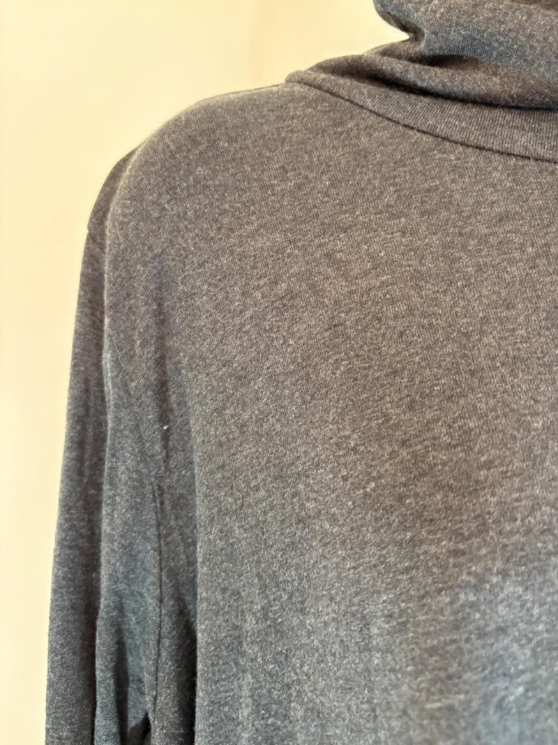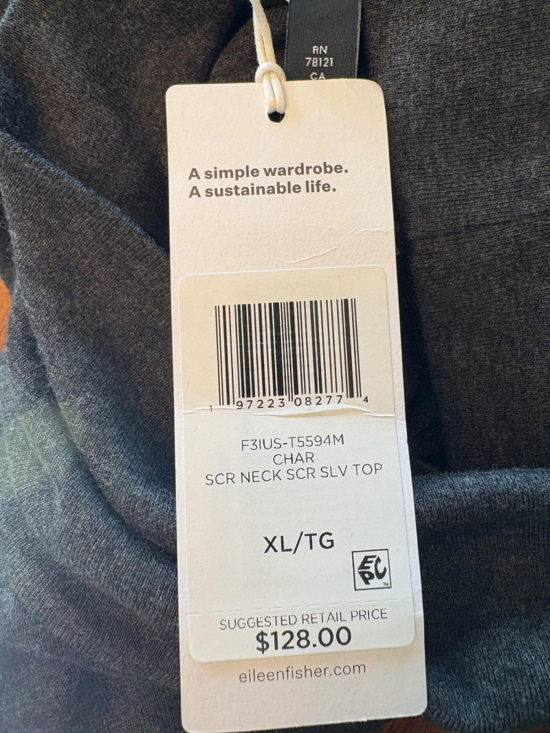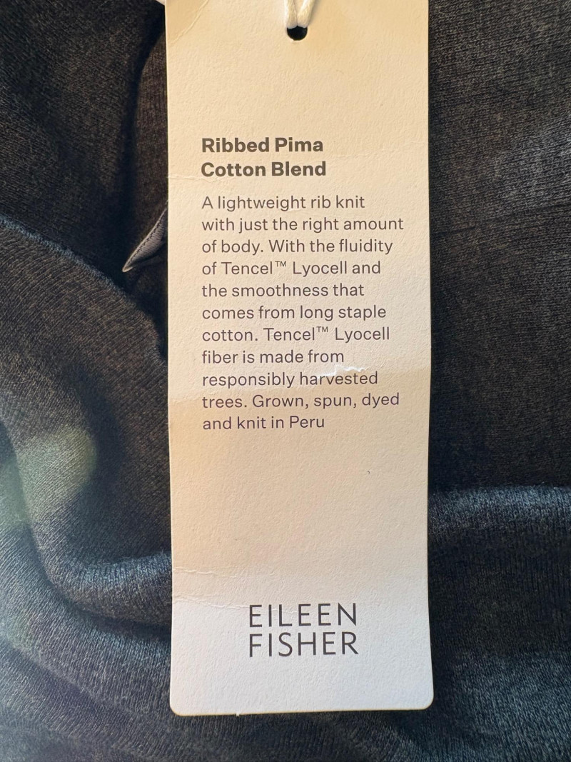 4 turtlenecks in dark neutral colors from Eileen Fisher for transitional fall season. All measure between 24" - 25" pit to pit and all are extremely soft to the touch. 2 identical dark grey turtlenecks from Eileen Fisher. This particular shade of grey looks great with black, white, and a host of other colors (our client had A LOT of this color). One shirt is new with tag. Both are organic cotton/Tencel Lyocell blend. Size tag on the older one says 1X. Size tag on the new one says XL. Light grey turtleneck is also an organic cotton/Tencel Lyocell blend. Size tag says 1X. Black turtleneck is a Tencel Lyocell/elastane blend. Size tag says 1X.