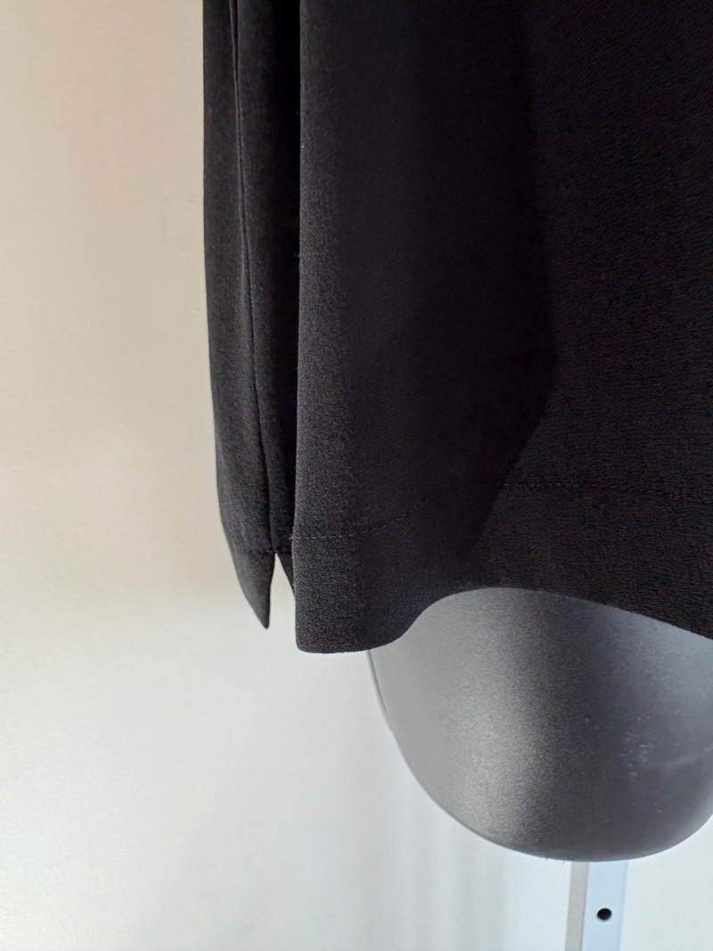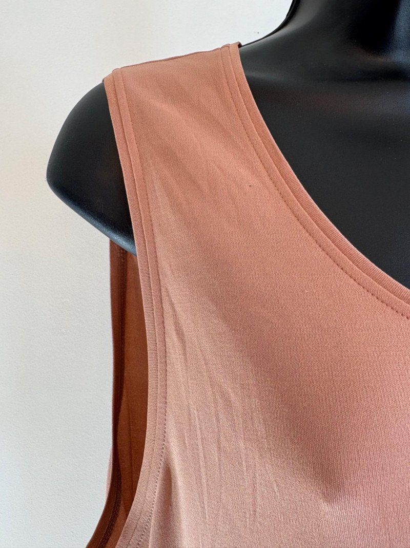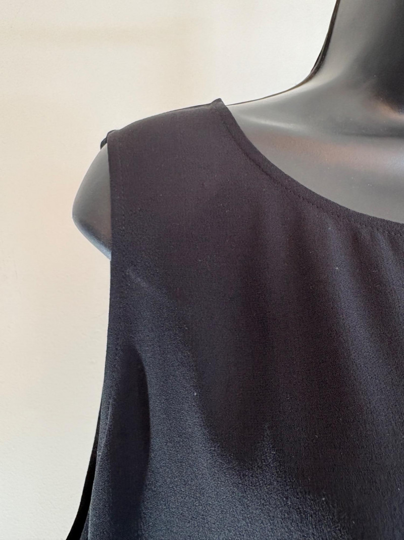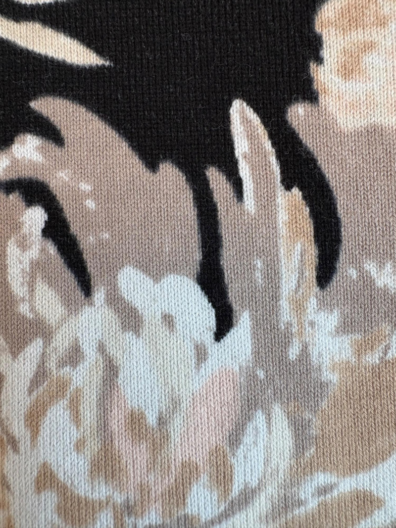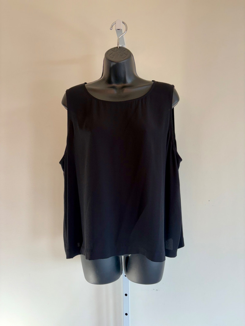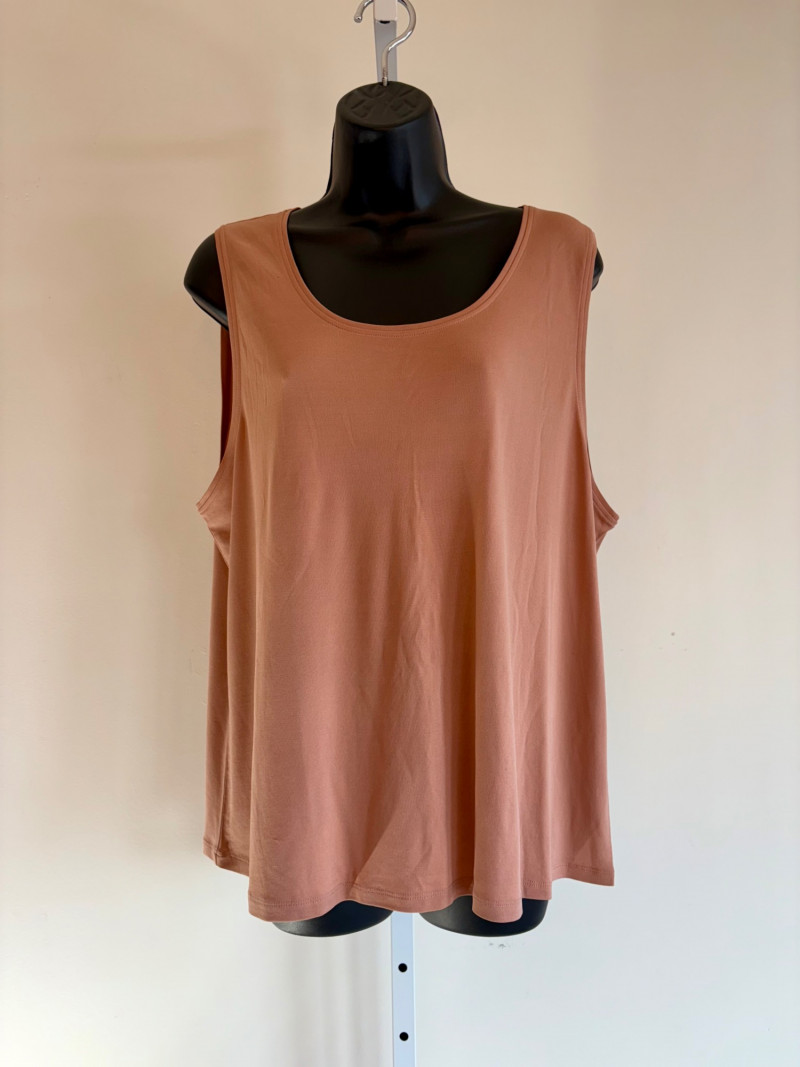 3 coordinating separates from Eileen Fisher & Isaac Mizrahi. Pink shell has curved neckline. 100% silk. Measures 21.5" pit to pit and 24.5" from back neckline to hem. Size tag says XL. Black shell has curved neckline, button back neck closure, and small split hem. 100% silk. Measures 22" pit to pit and 23" from back neckline to hem. Size tag says XL. Pink, taupe, black, and white cardigan sweater from Isaac Mizrahi has scalloped rib trim on round neckline, 8 button front closure, and ribbing on sleeve ends and hem. Cotton/nylon blend. Measures 23" pit to pit and 25" from back neckline to hem. Size tag says 1X.