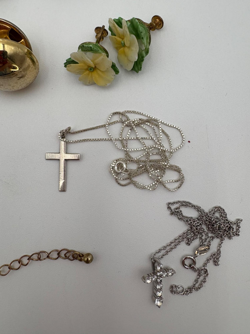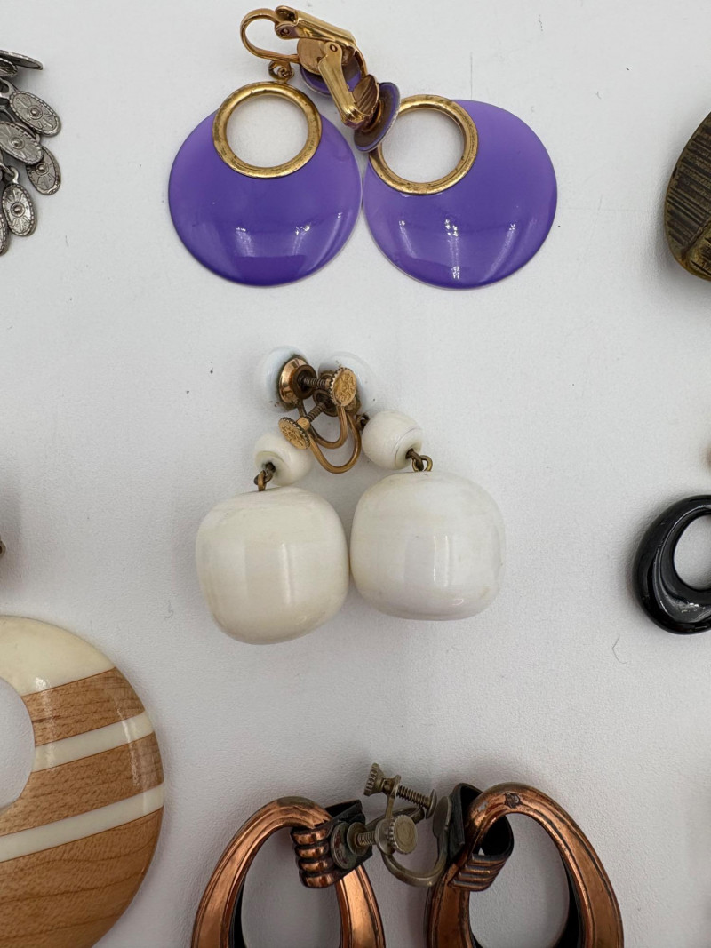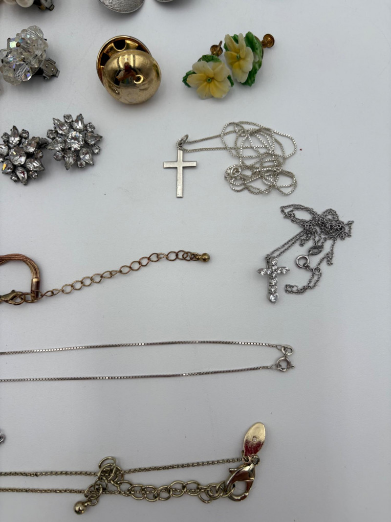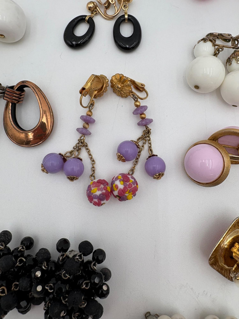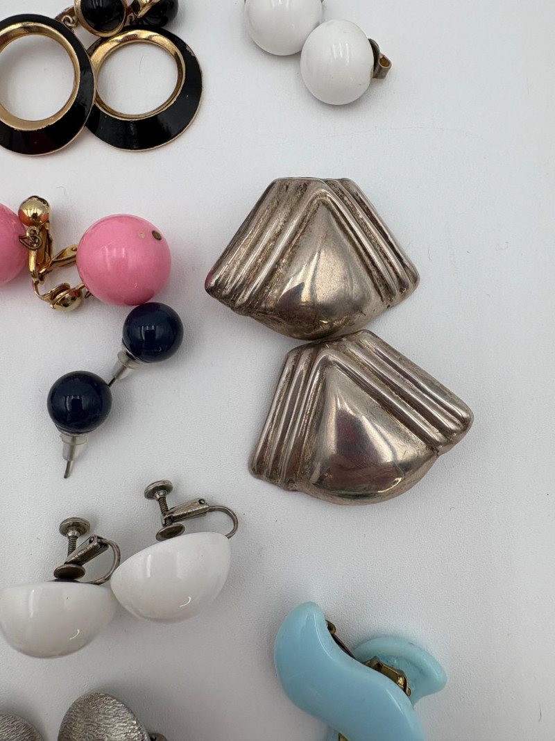 Mixed jewelry lot of clip earrings - some vintage - and a couple of necklaces. What you see is what you get. Please note that while we gave the pieces a look, they were not inspected; nothing egregious was noted during that quick look, however.