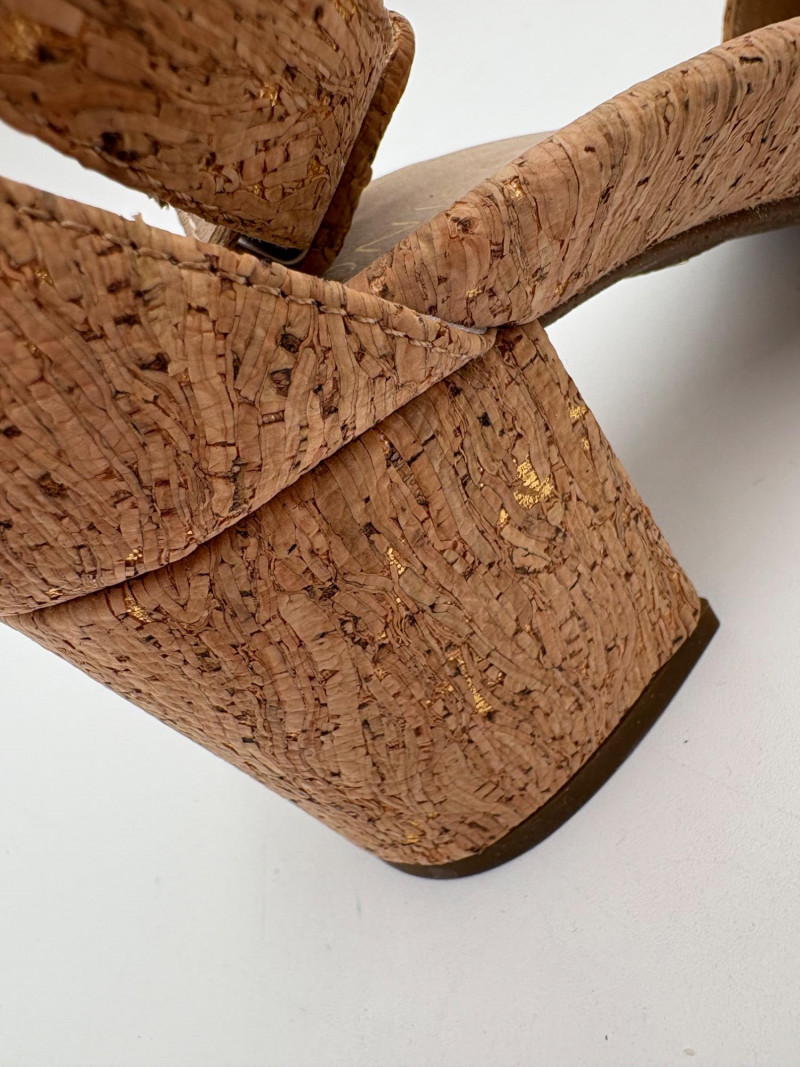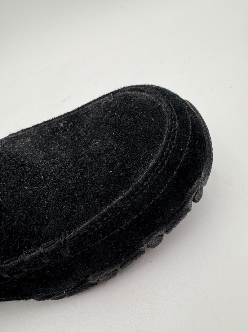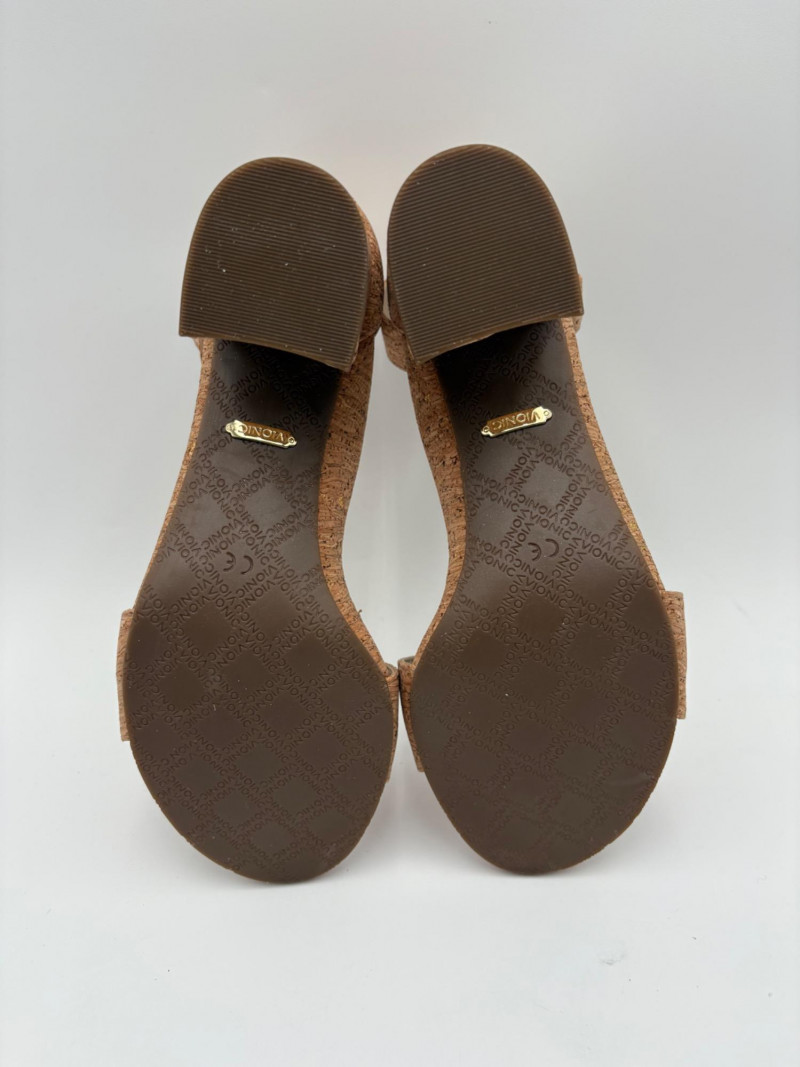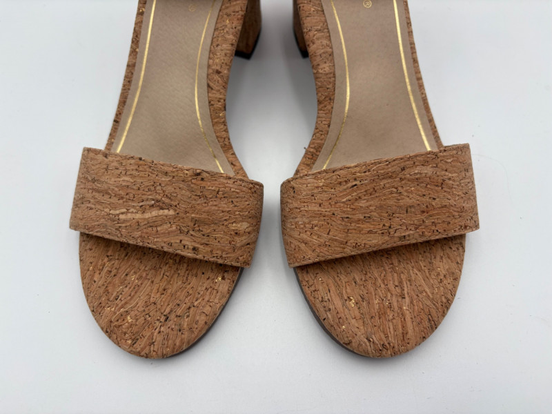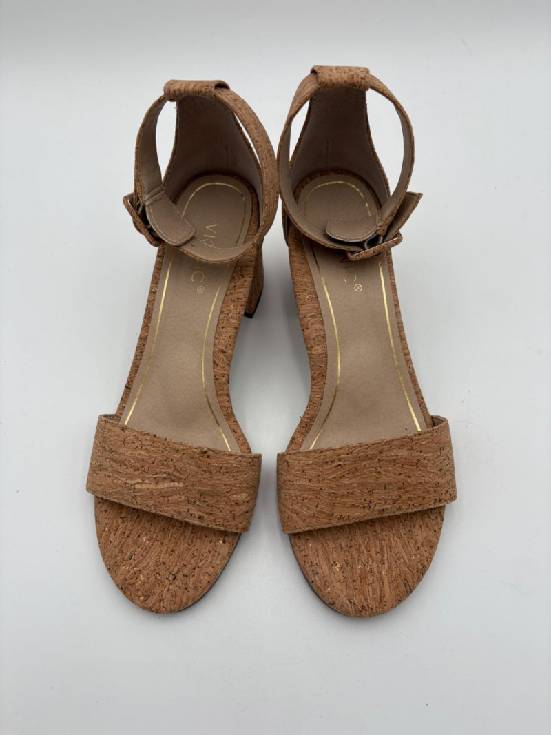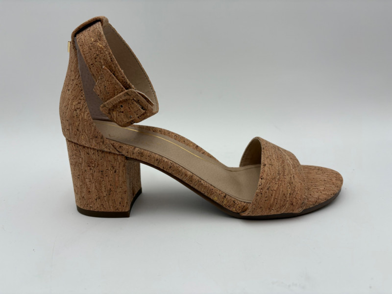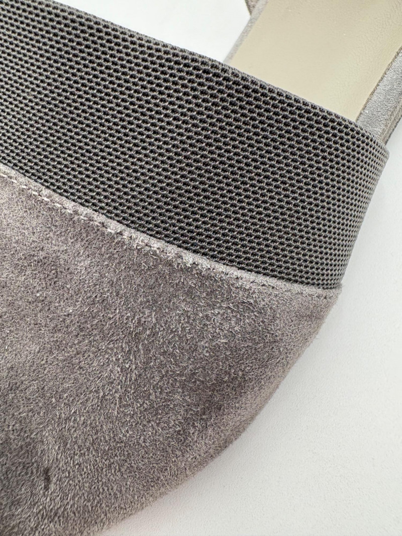 Eileen Fisher grey suede flats with open in-step and elastic band on vamp. Size 7. Vionic chunky heel cork sandals with self-covered buckle and heel. Appear to be new. Size 7. Sketchers black leather casual ankle boots with rubber sole, side zip, and ankle gusset. Size 7.