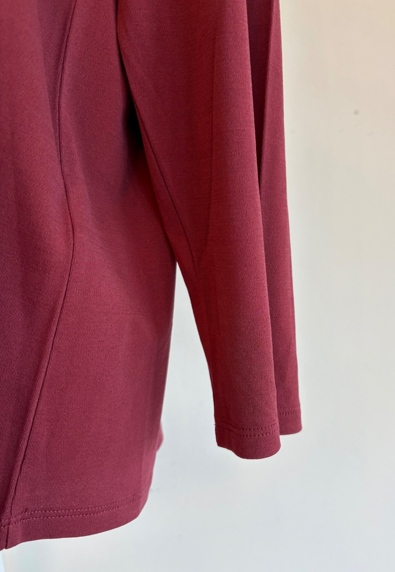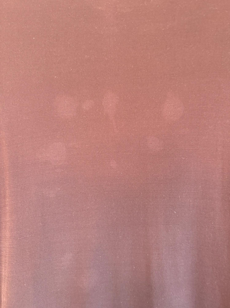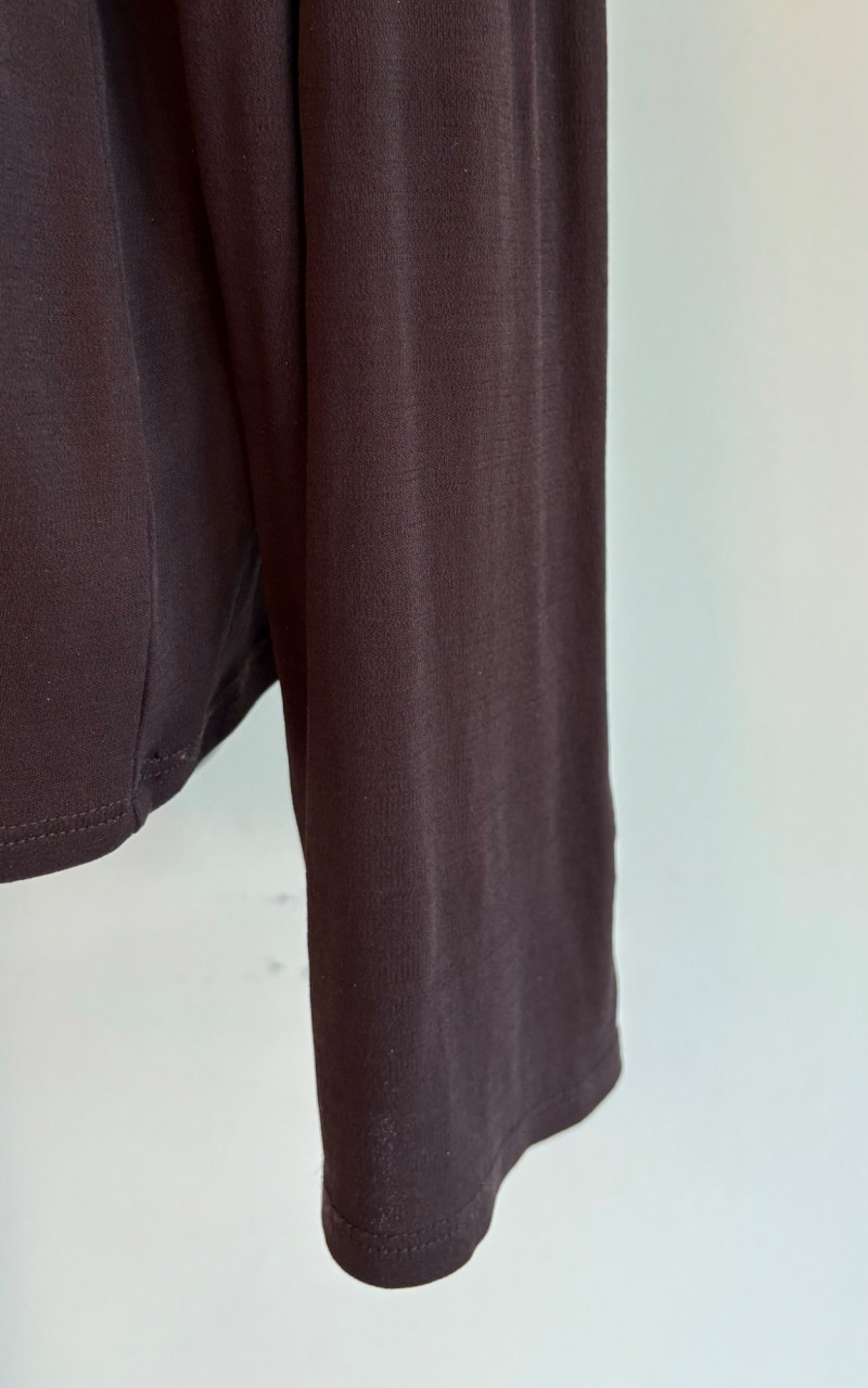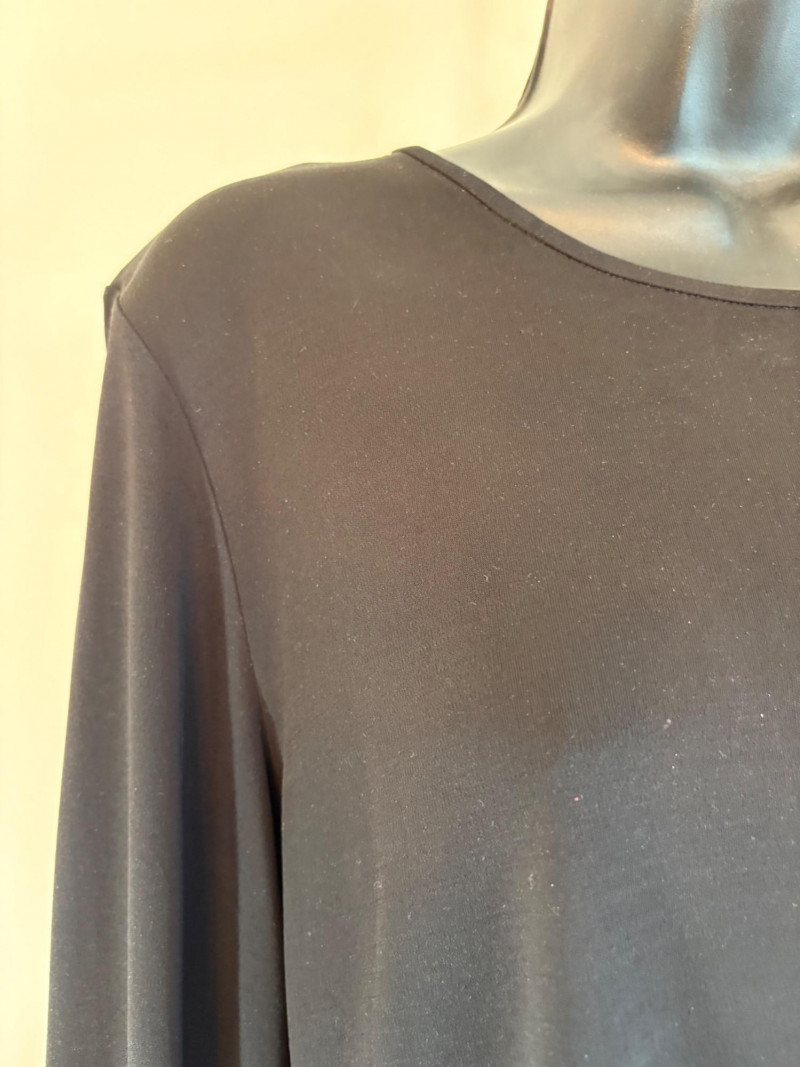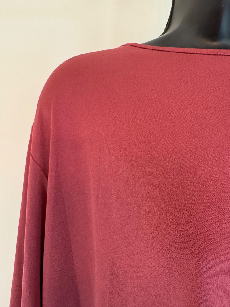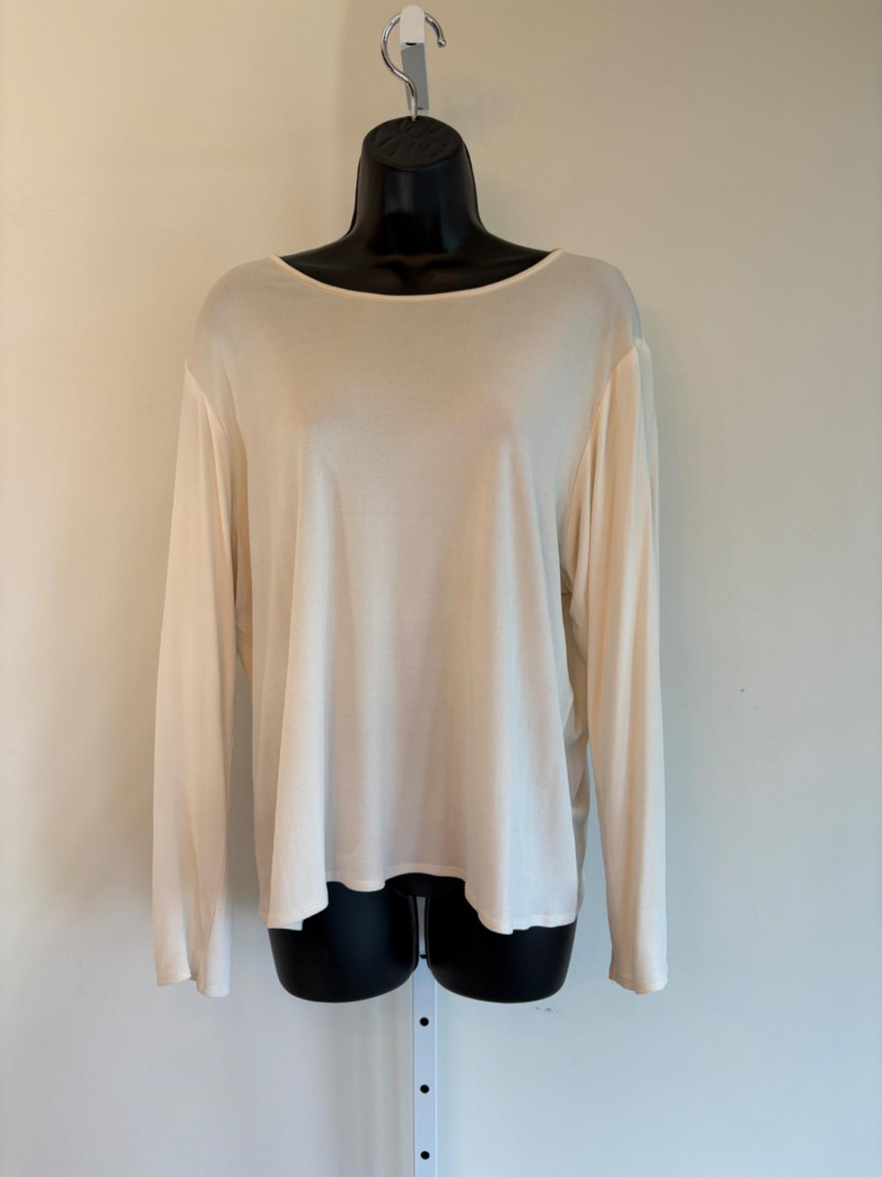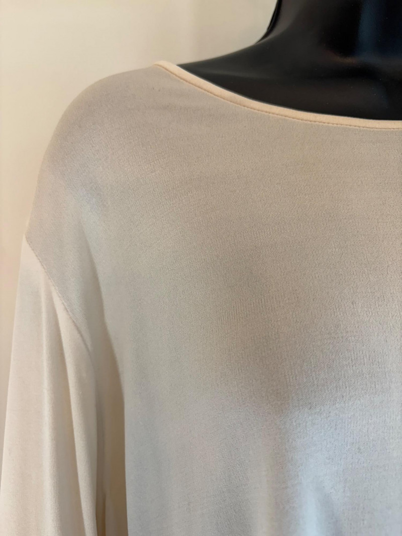 4 gorgeous silk long-sleeve shirts from Eileen Fisher. All are identical in style, are 100% silk, measure between 22.5"- 23" pit to pit, and measure approx. 23" from back neckline to bottom hem. Colors are a brownish-red, black, chocolate brown, and creamy white. Chocolate brown and black shirts have size tags that say XL, while the brownish-red and creamy white shirts have size tags that say 1X. Note that fabric tag is missing from white shirt and brown shirt has some odd markings on the back - see last photo. We've included the brown shirt since if may wash out and even if not, the back of the shirt may be under a jacket most of the fall/winter so it is still useful.