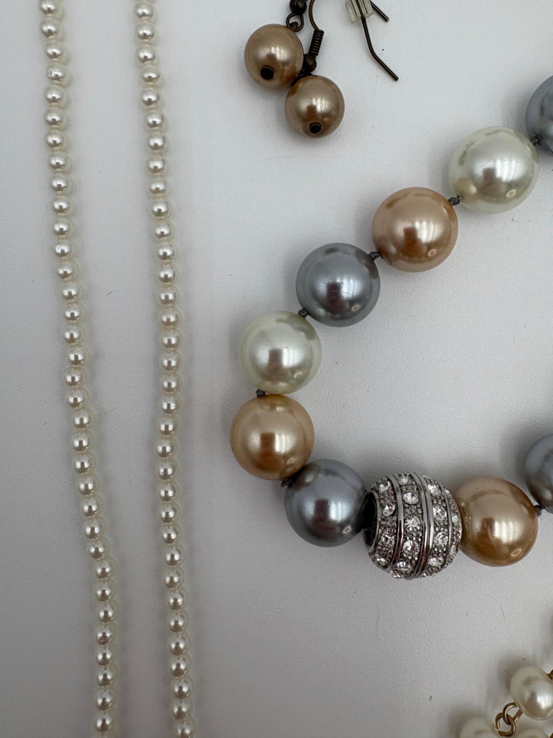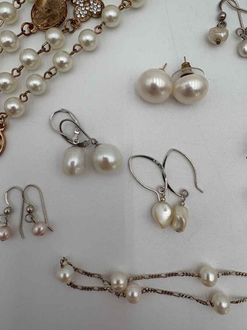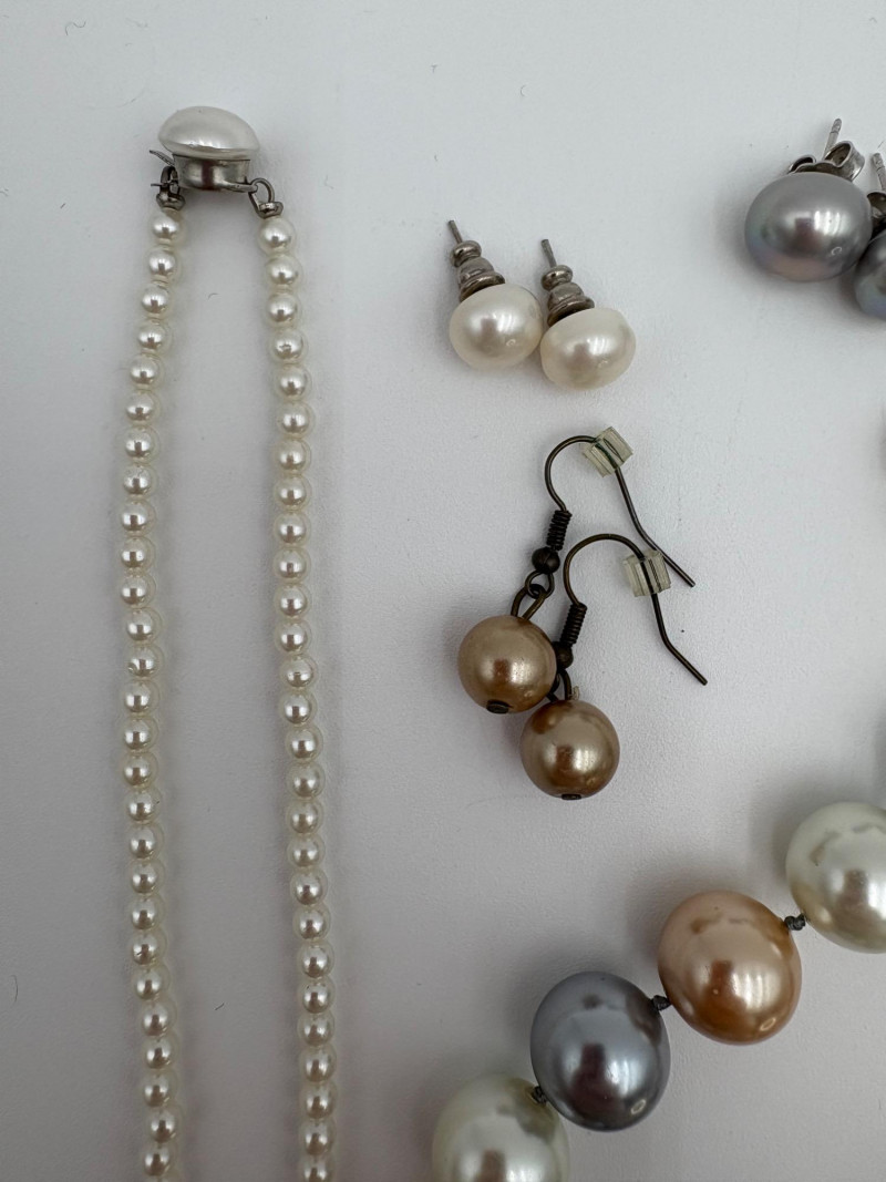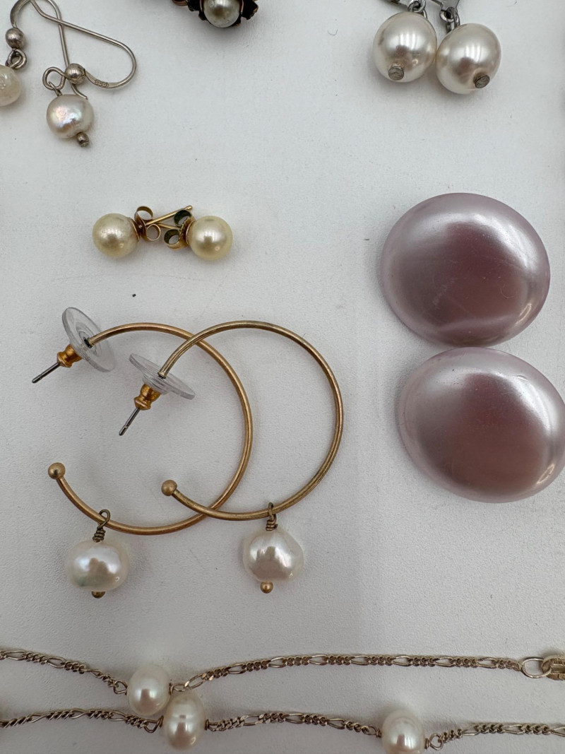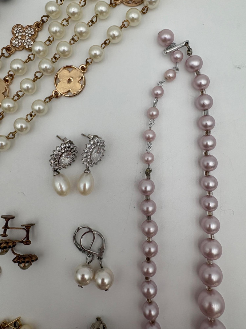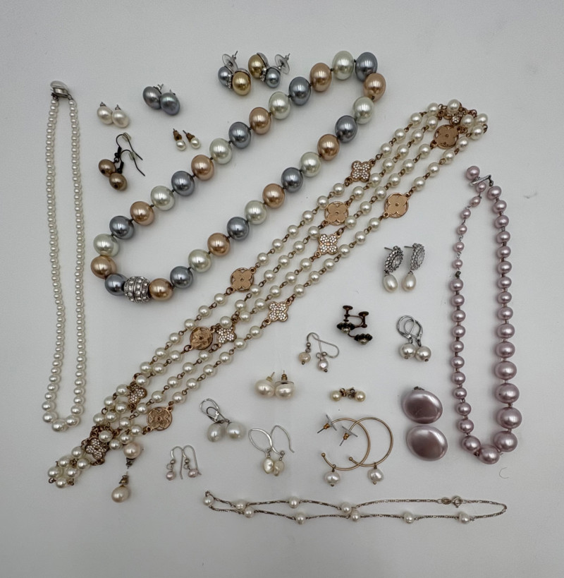 OK, we are not pearl experts. Client's son says some could be real, but he's not sure. Neither are we, so we are operating on the assumption they're manmade synthetic or cultured. Despite the "realness" issue, we still love the variety and colors. Bid accordingly!