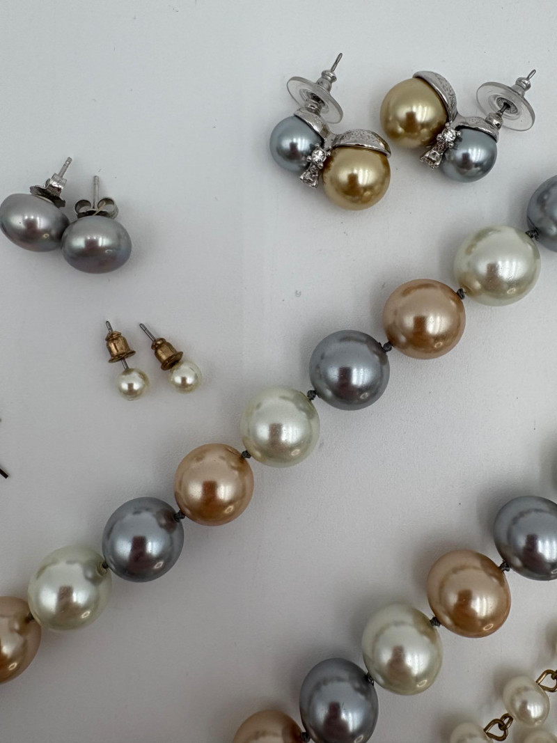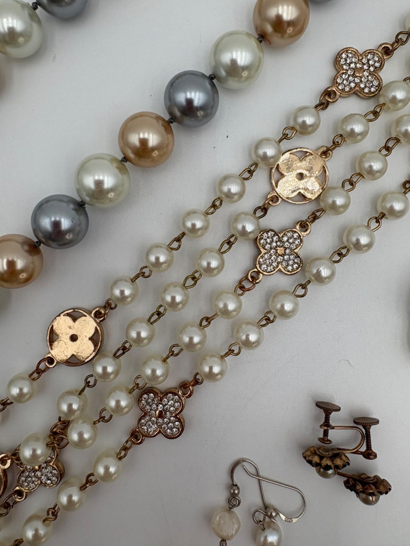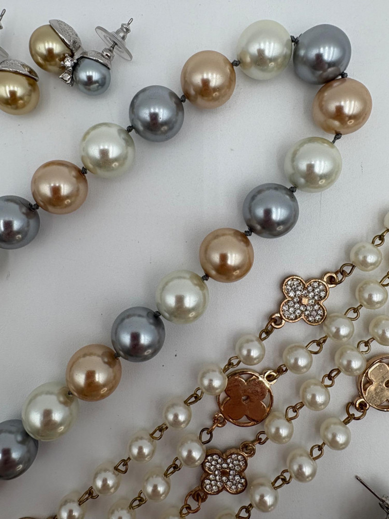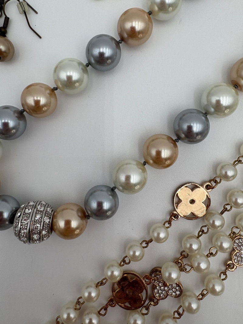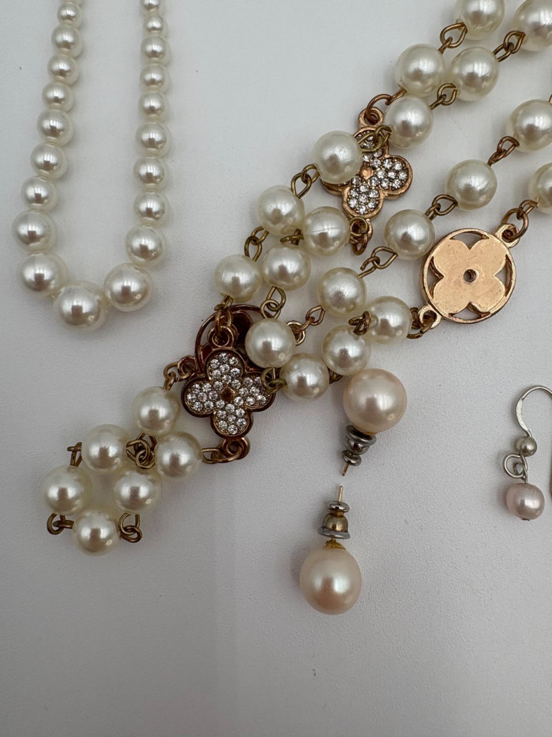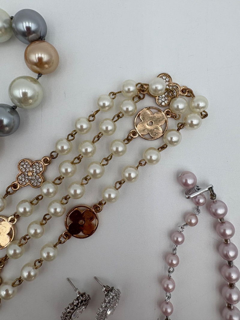 OK, we are not pearl experts. Client's son says some could be real, but he's not sure. Neither are we, so we are operating on the assumption they're manmade synthetic or cultured. Despite the "realness" issue, we still love the variety and colors. Bid accordingly!