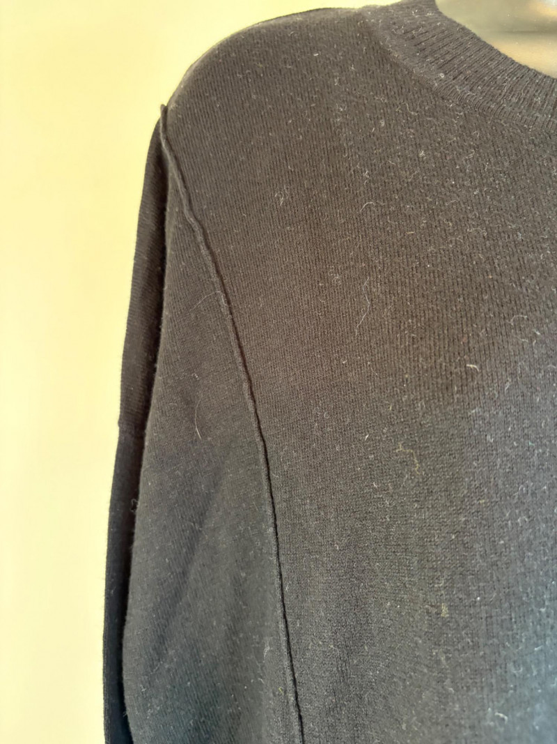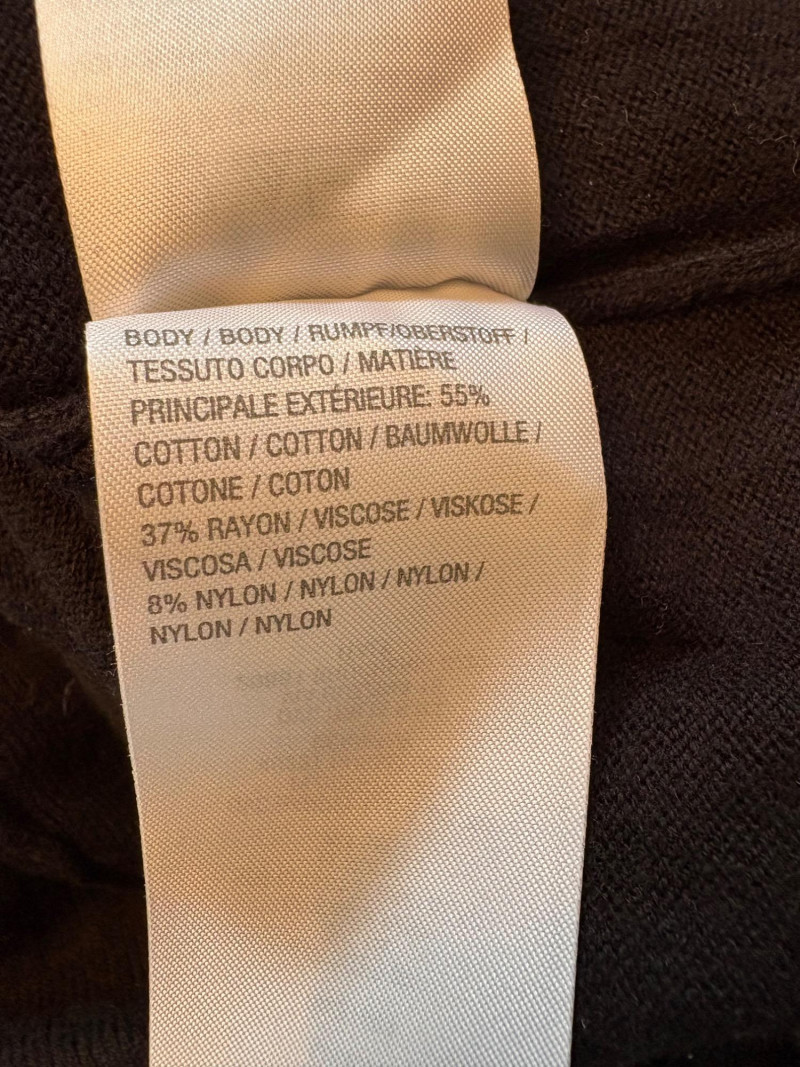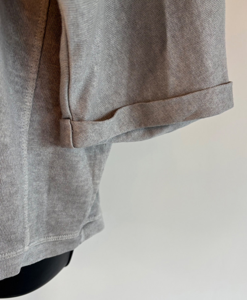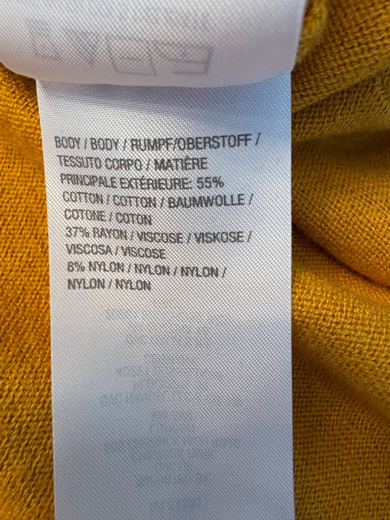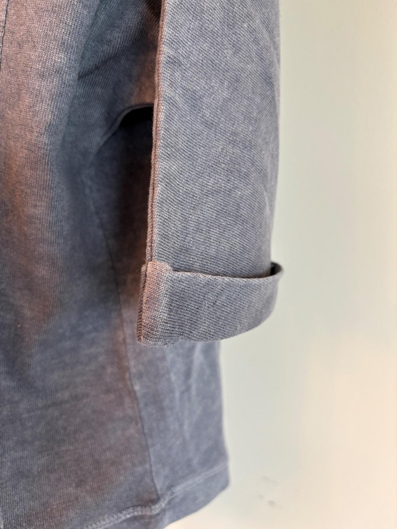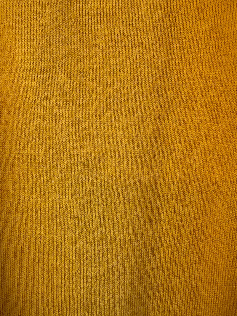 Pair of comfortable Poetry heavy t-shirts (almost light sweatshirts) along with two lightweight sweaters from Isaac Mizrahi. Identical black and gold sweaters from Isaac Mizrahi measure 26.5" pit to pit with long sleeves and princess/side seaming down front and back. Bottom split hem. Both are cotton/rayon/nylon blend. Both size tags are XL. Both Poetry t-shirts measure 27" pit to pit with the back hem longer than front. Sleeves have rolled cuffs and there are bands at the neckline and lower hem along with side/sleeve piecing. Both shirts in hemp/cotton blend. Both size tags are 16.