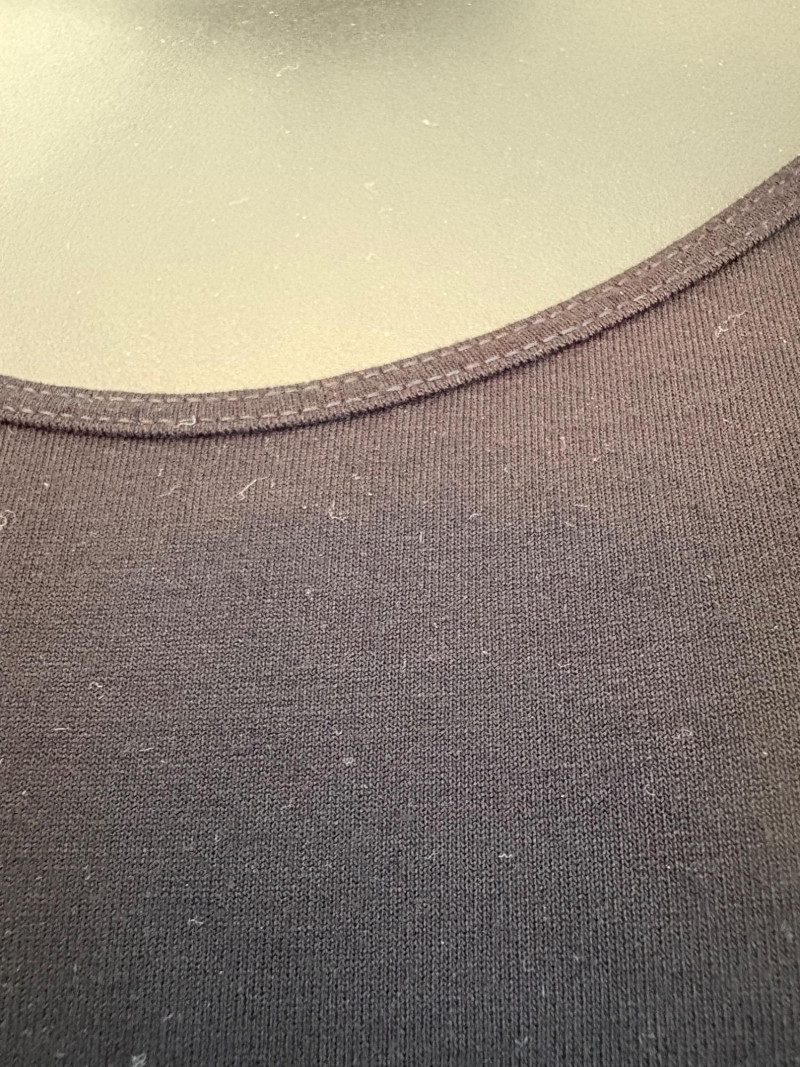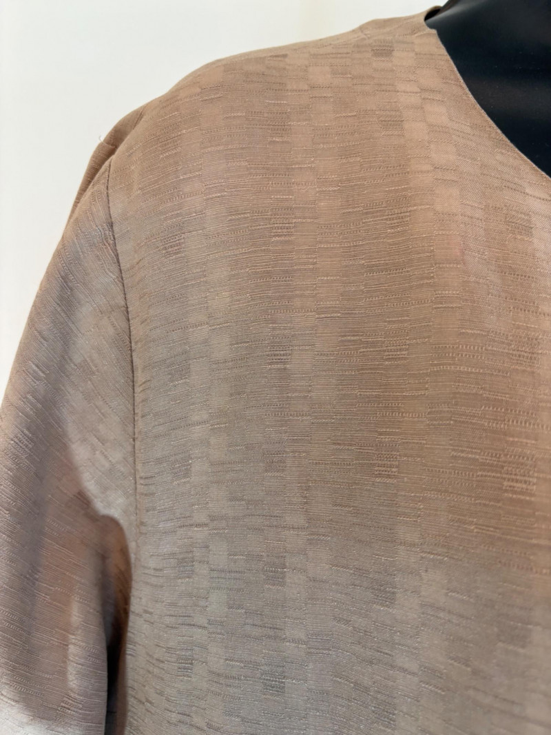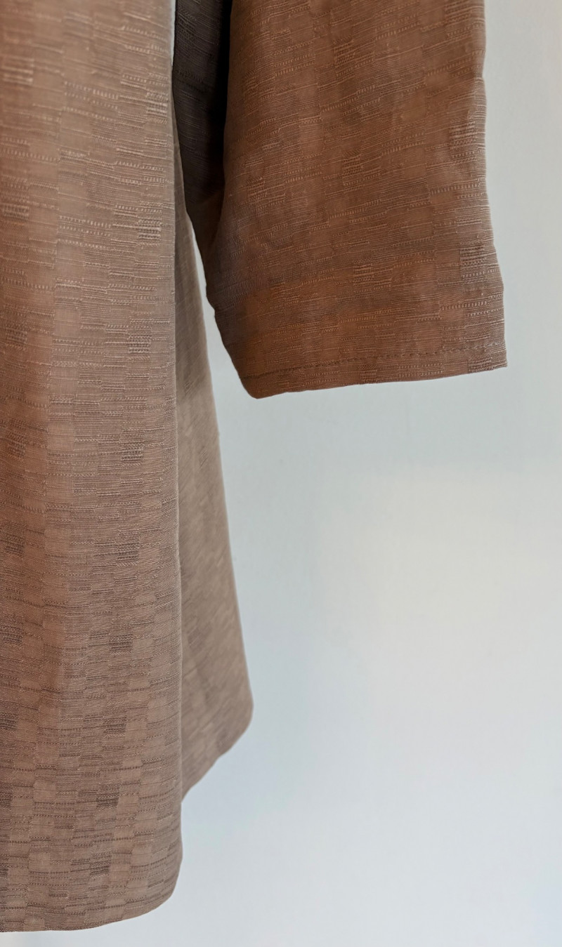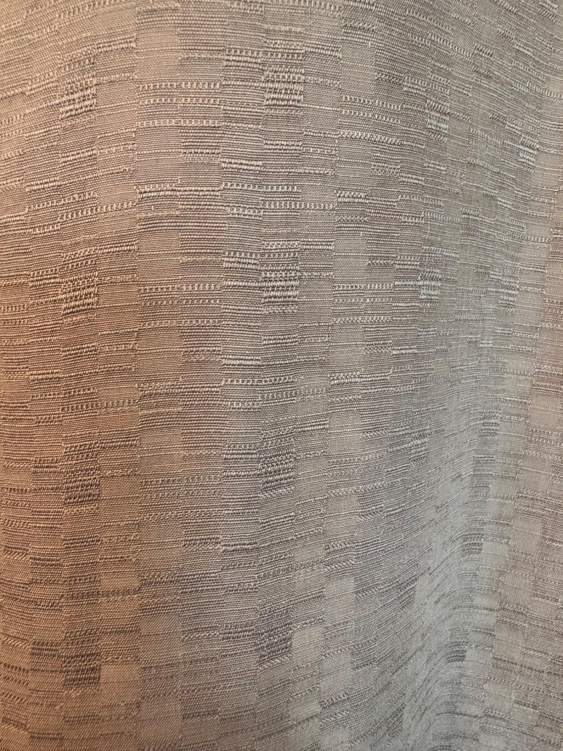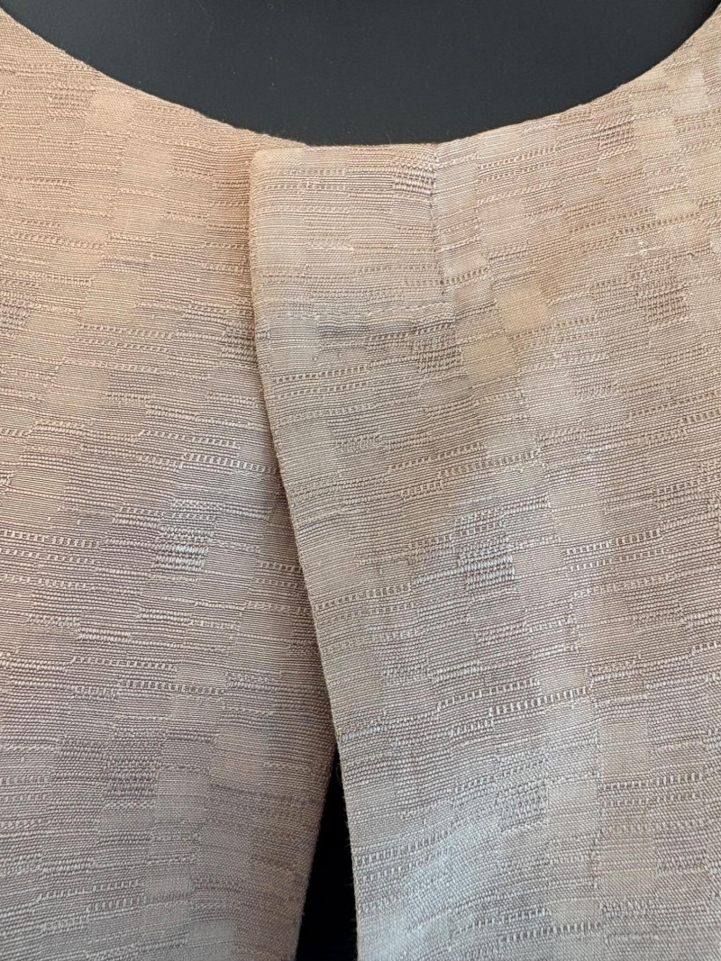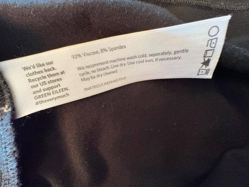 Classic duo from Eileen Fisher with scarf from Garnet Hill. Full-length black sleeveless dress is one of those basics everyone should have to dress up or down. This one has has round neckline, straight cut, and a lot of body/heft in the stretch knit. Viscose/spandex blend. Measures 21" pit to pit and 50" from shoulder to bottom hem. Size tag says XL. Collarless taupe jacket has round neckline, open front, textured weave, and self-faced front panels along with a magnetic closure at the collar. Fabric tag is missing. Measures 21" pit to pit and 33" from back neckline to bottom hem. Size tag says 2X and while it is generous, it doesn't seem to be quite this big... Paired with soft floral scarf from Garnet Hill in coordinating colors. Measures approximately 50" x 54". Modal/cashmere blend.