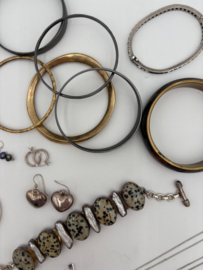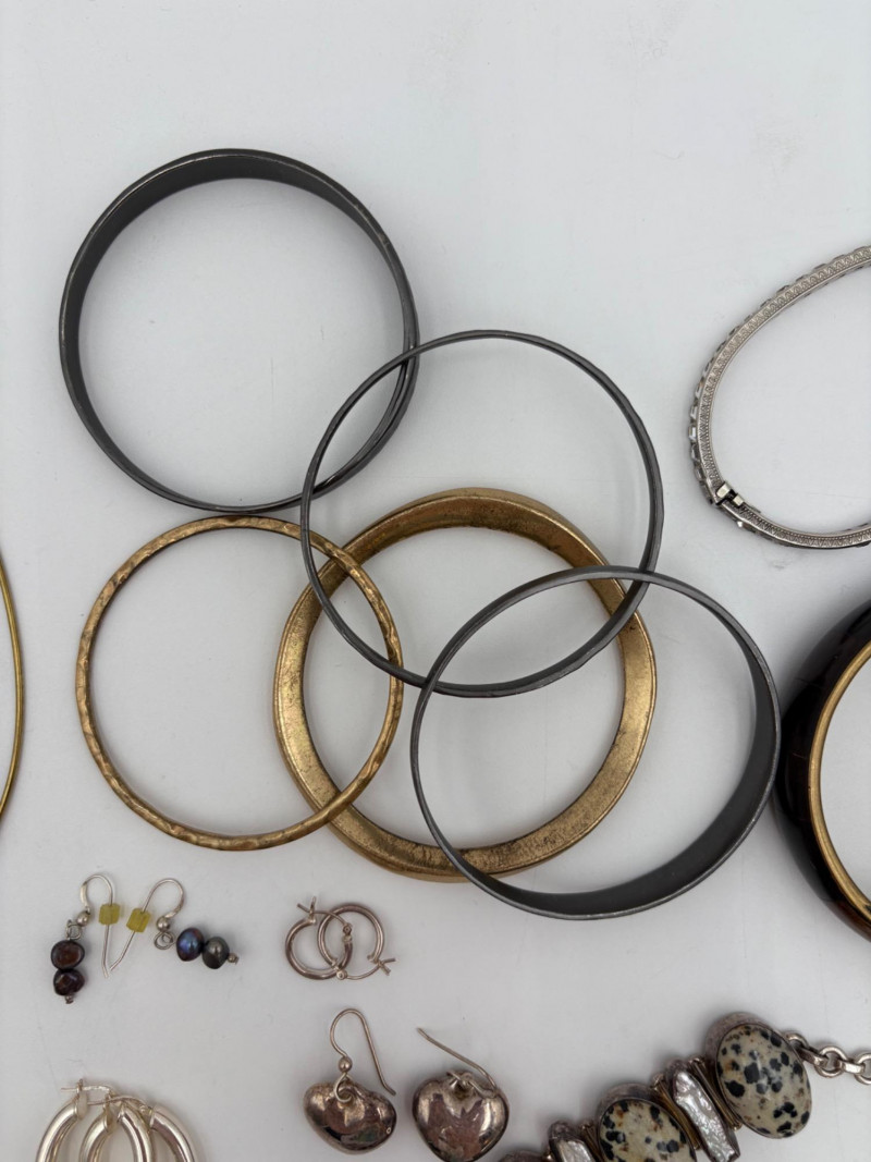 Mixed jewelry lot - what you see is what you get. Please note that while we gave the pieces a look, they were not inspected; nothing egregious was noted during that quick look, however. Note - there is some sterling mixed into this lot.