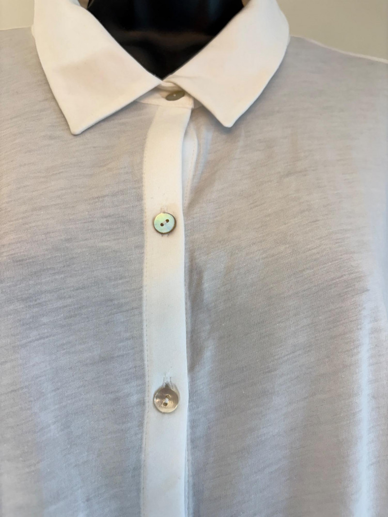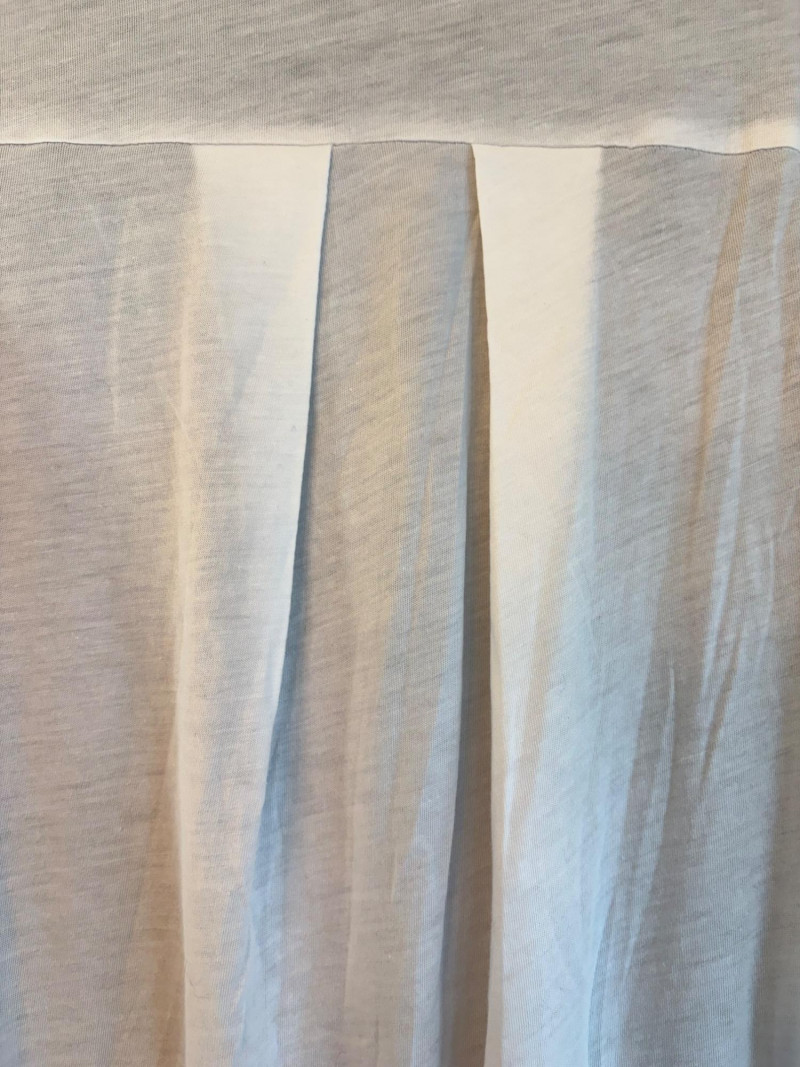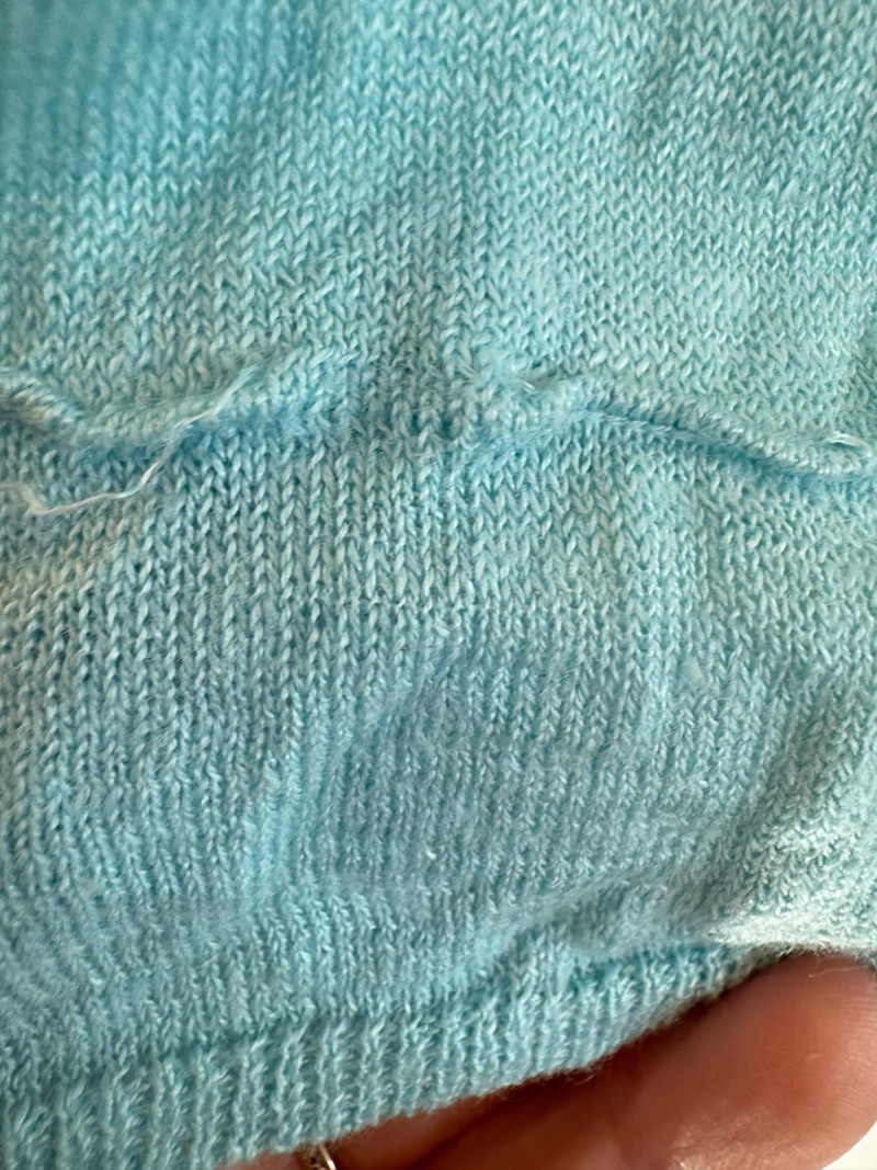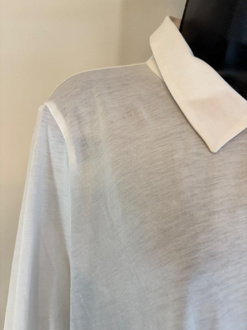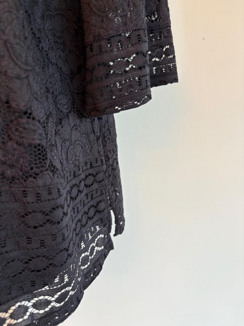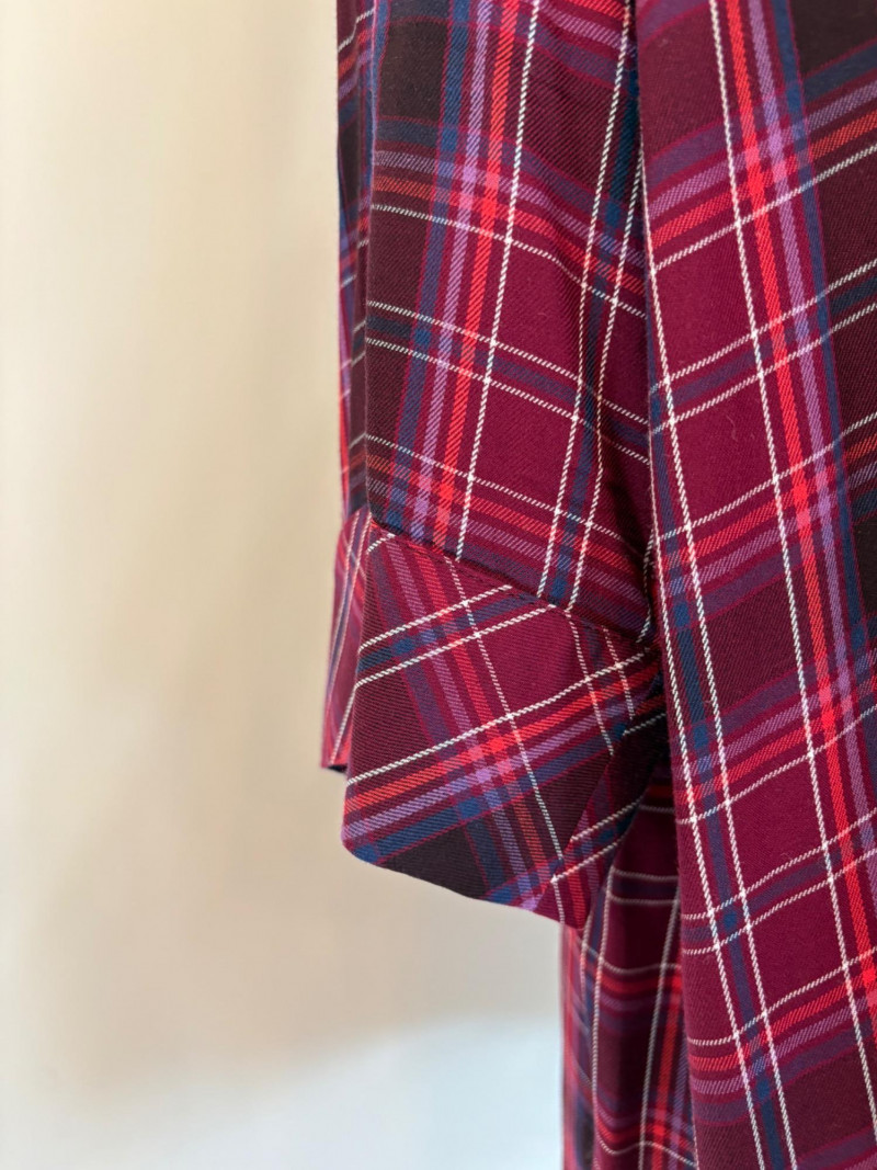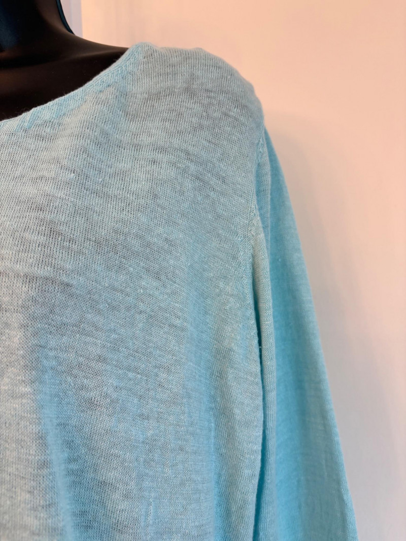 This is a real variety lot, but all pieces measure between 23" - 23.5" pit to pit. Black lace top from Isaac Mizrahi has 3/4 sleeves, yoke, solid stretch lining, and split hem. Nylon/spandex blend. Size tag says 1X. Intense blue top from Poetry is has long sleeves with button detailing, ribbed waistline, and criss-cross back. 100% linen. Size tag says says 18, but it looks a bit smaller to us. Note that we waffled on including this top - not only does the sizing appear to be off, but there are also several issues with small pulls in the fabric/loose threads - a sweater shaver might help but we aren't sure. We decided to put it in anyhow, but be warned that the quality here is definitely not up to the usual of the other items in this auction - see last 2 photos for most egregious examples. Soft smooth white knit shirt has collar, button front closure, back yoke with pleat, split hem with back lower than front, and long sleeves with button cuff. 100% organic cotton. Size tag says XL. Red plaid top from J. Jill has 3/4 banded sleeves, back yoke with pleats, and front left patch pocket along with a split hem that is lower in back than front. 100% rayon. Size tag says XL.