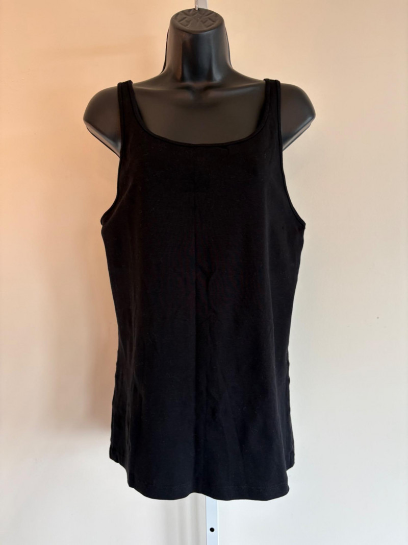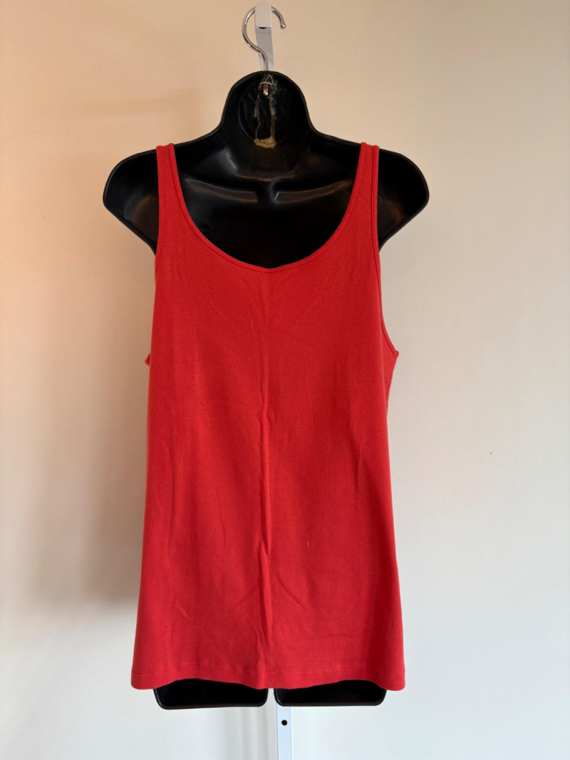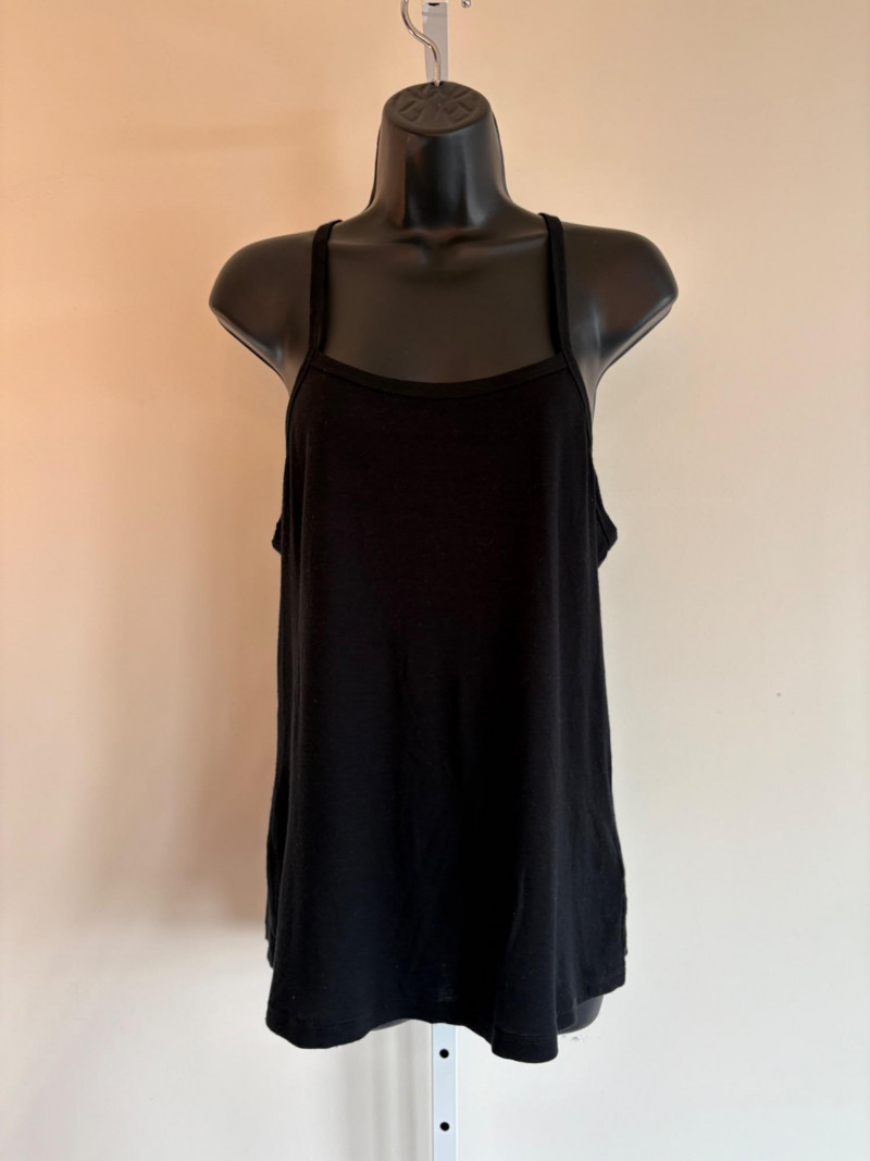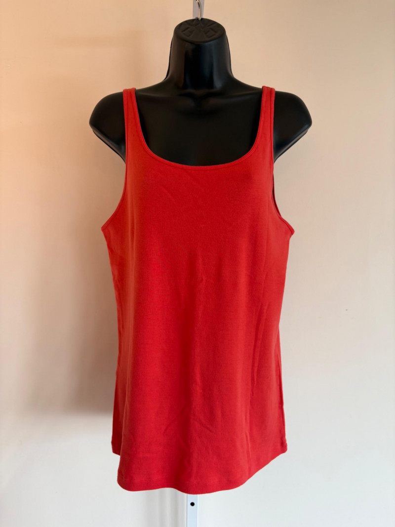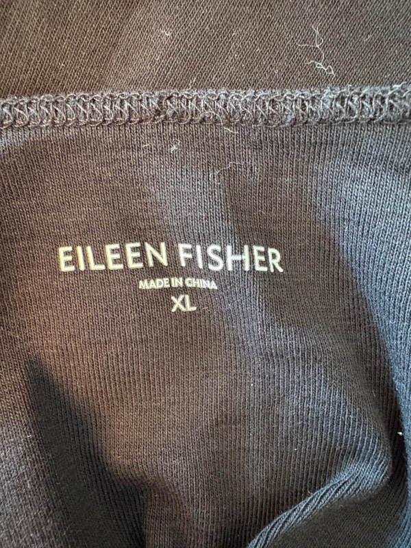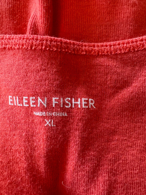 4 tanks from Eileen Fisher on the small side for this auction - all measure 17" pit to pit (unstretched, of course) Grey tank is 100% organic cotton. Size tag says L. Black butterfly back tank is Tencel/Spandex blend. Size tag says L. Shows small pilling overall - a quick date with a sweater shaver will make it look great again, although it is certainly wearable as is. Black tank is 100% organic cotton. Size tag says XL. Red tank is 100% organic cotton. Size tag says XL.