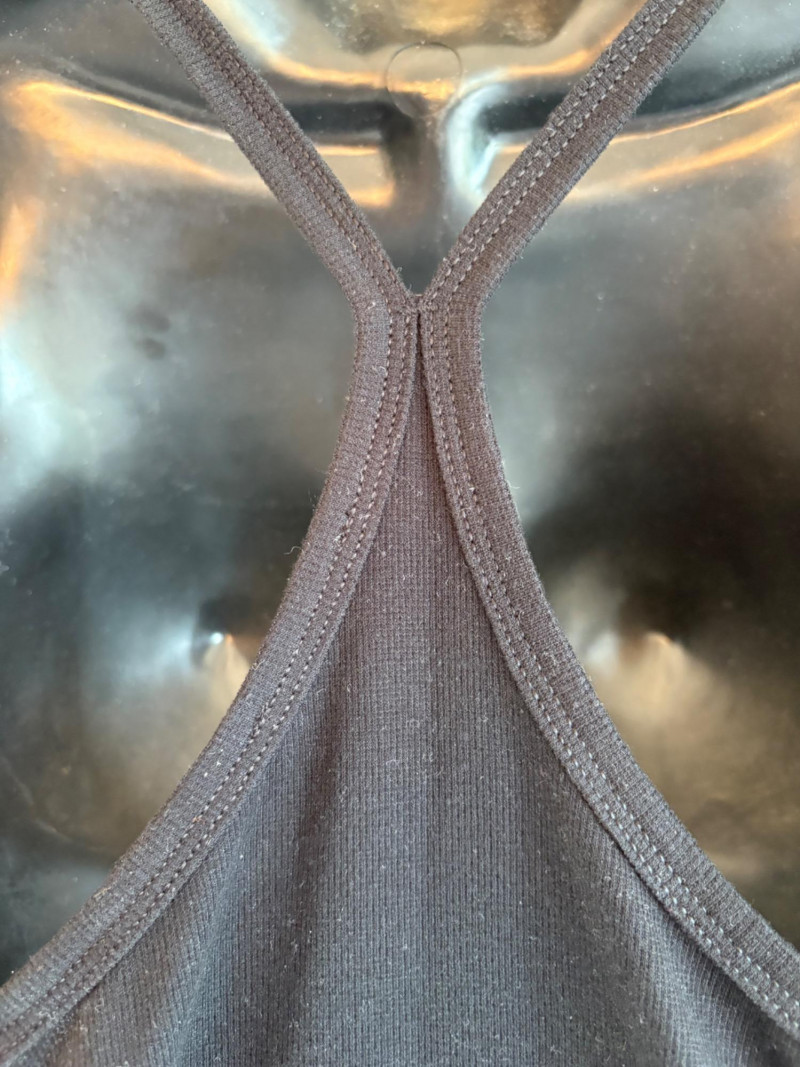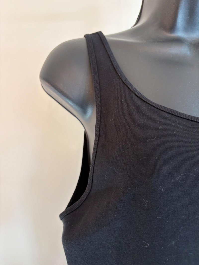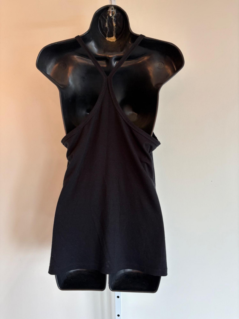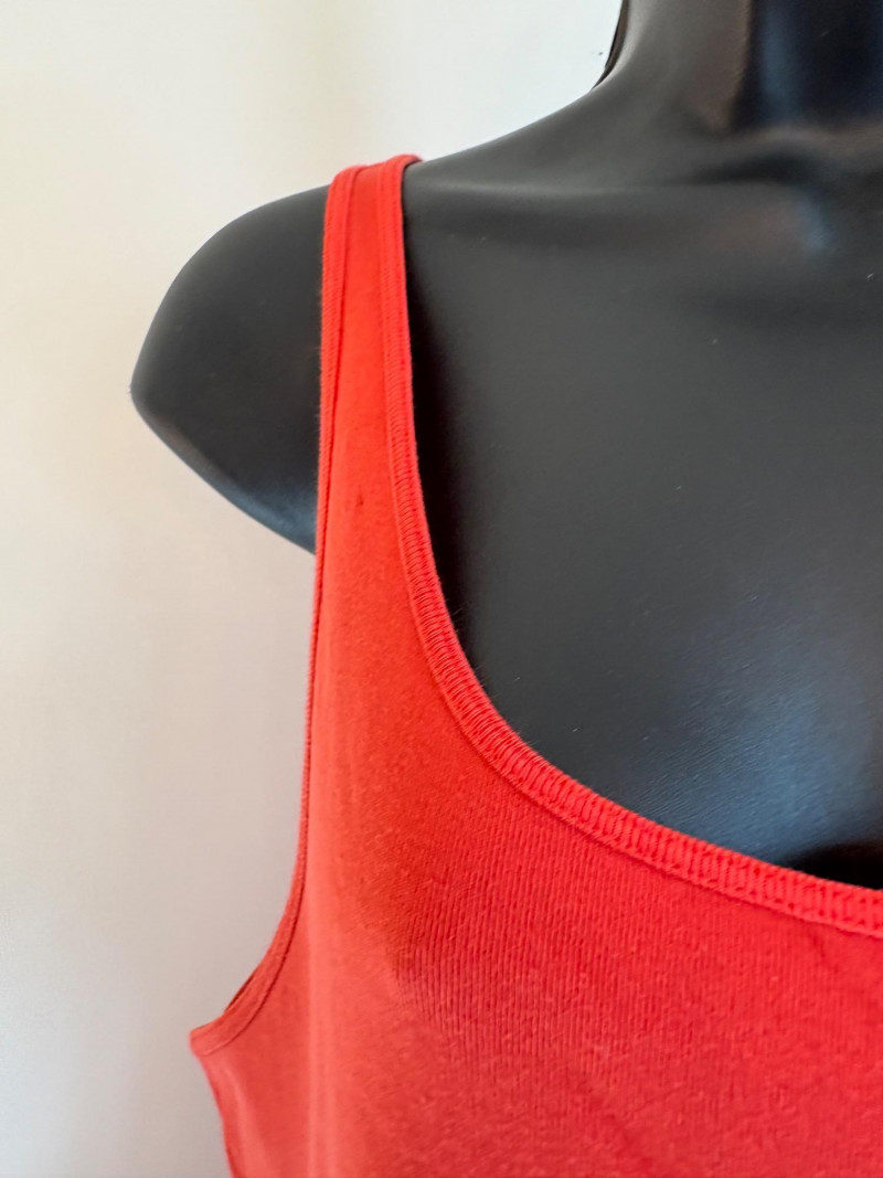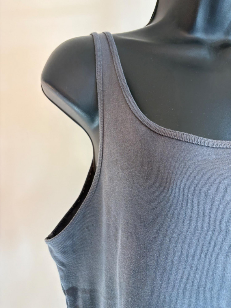 4 tanks from Eileen Fisher on the small side for this auction - all measure 17" pit to pit (unstretched, of course) Grey tank is 100% organic cotton. Size tag says L. Black butterfly back tank is Tencel/Spandex blend. Size tag says L. Shows small pilling overall - a quick date with a sweater shaver will make it look great again, although it is certainly wearable as is. Black tank is 100% organic cotton. Size tag says XL. Red tank is 100% organic cotton. Size tag says XL.