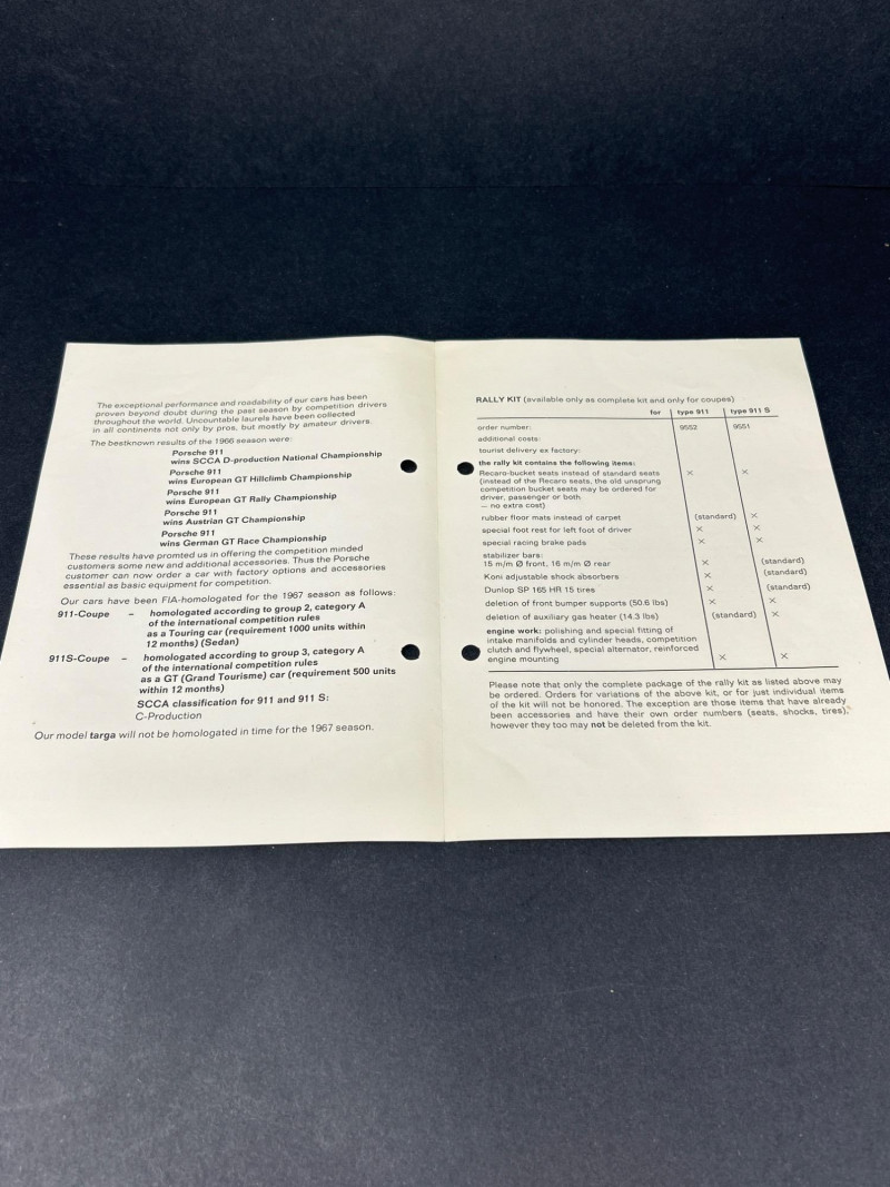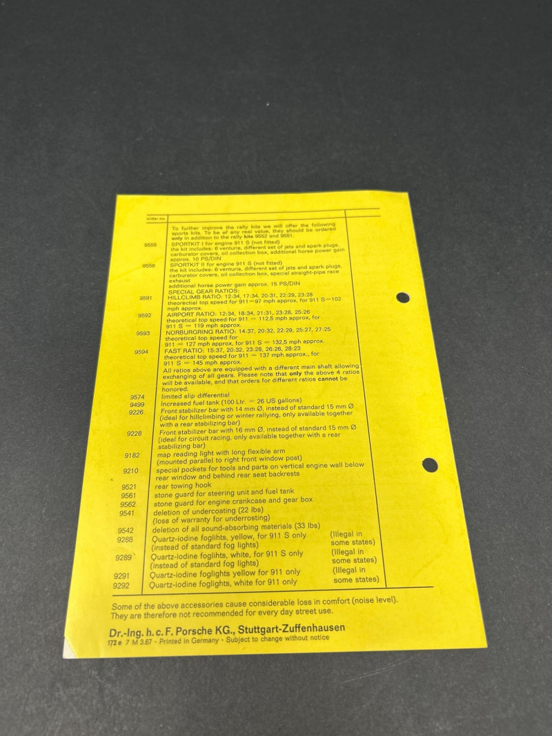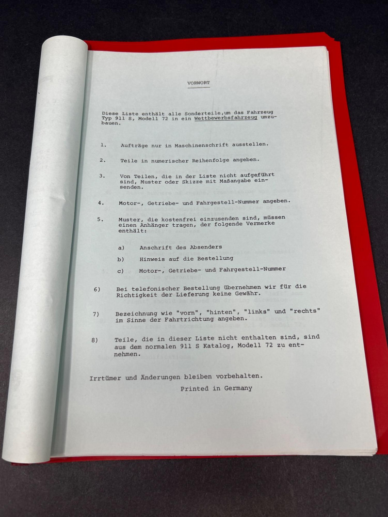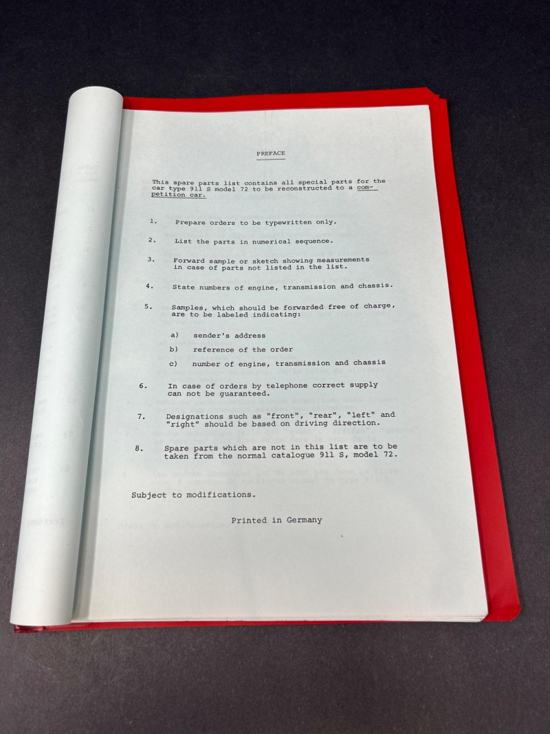 Lot # 60 - 1972 Porsche 911S Competition Spare Parts List (November 1971 Edition)