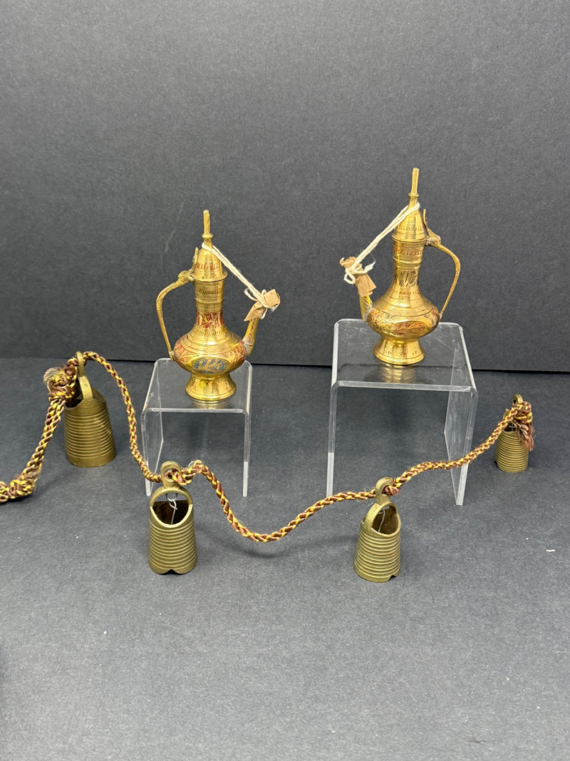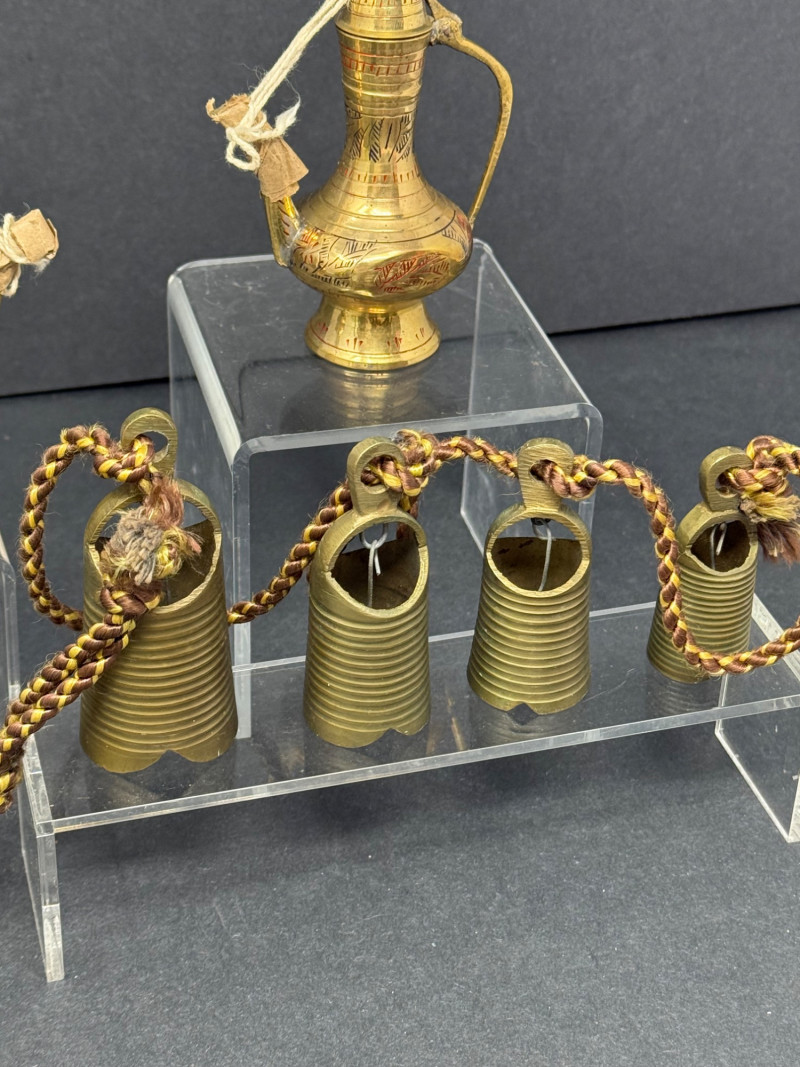Lot # 103 - Vintage Brass Decoratives – Miniature Ewers & String of Bells