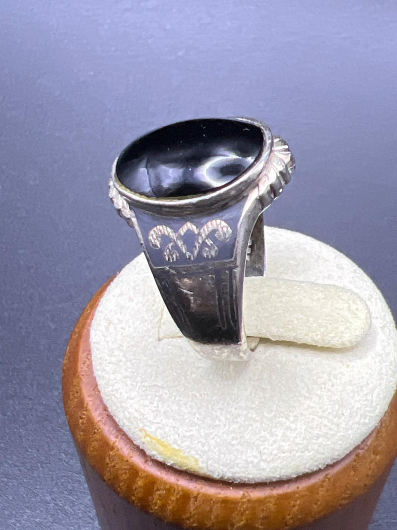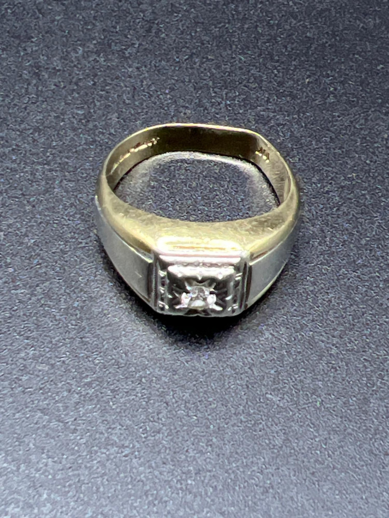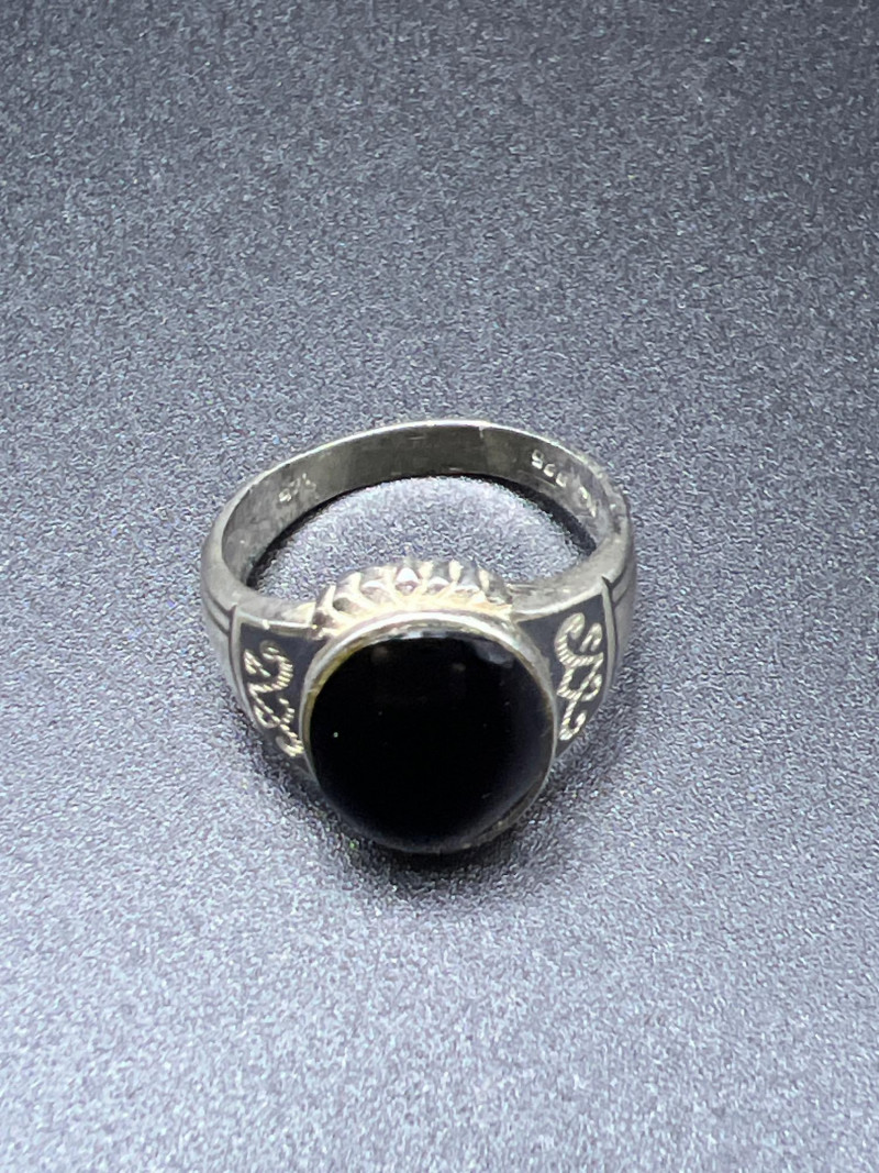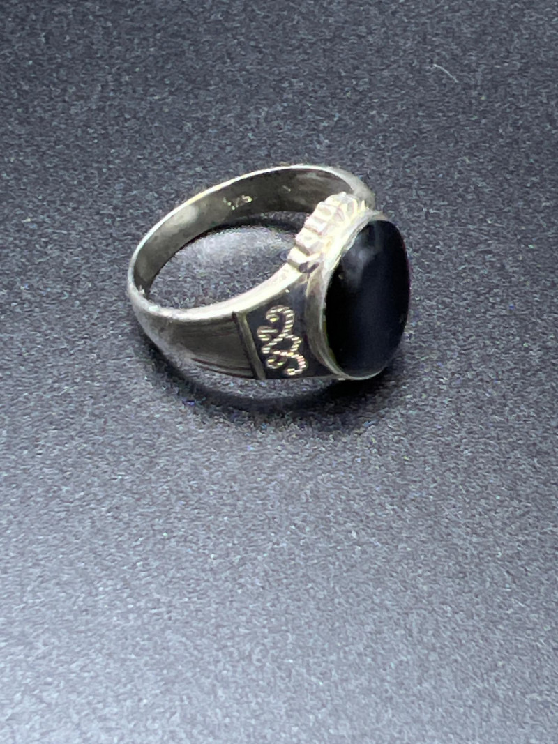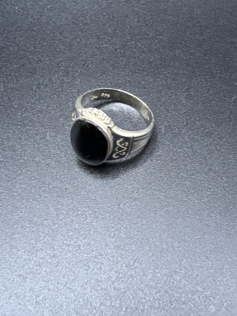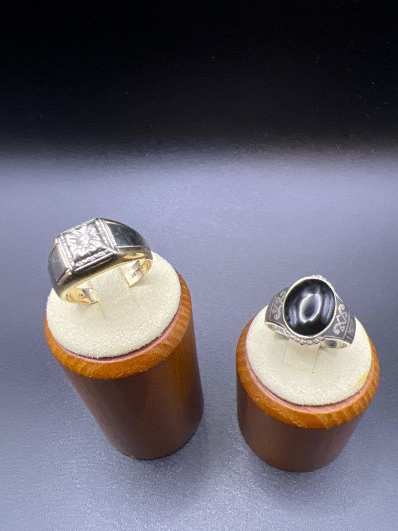 This lot features a classic men’s 10K gold ring (size 7.5) with a small diamond set at the center—an understated yet timeless piece that speaks to vintage craftsmanship. Paired with it is a 925 sterling silver ring (size 7) showcasing a bold black glass stone, offering striking contrast and character. Together, these rings balance refinement and statement style, making them ideal for collectors of vintage jewelry or anyone seeking versatile pieces that blend subtle luxury with bold design. Vintage, gently worn with natural patina.