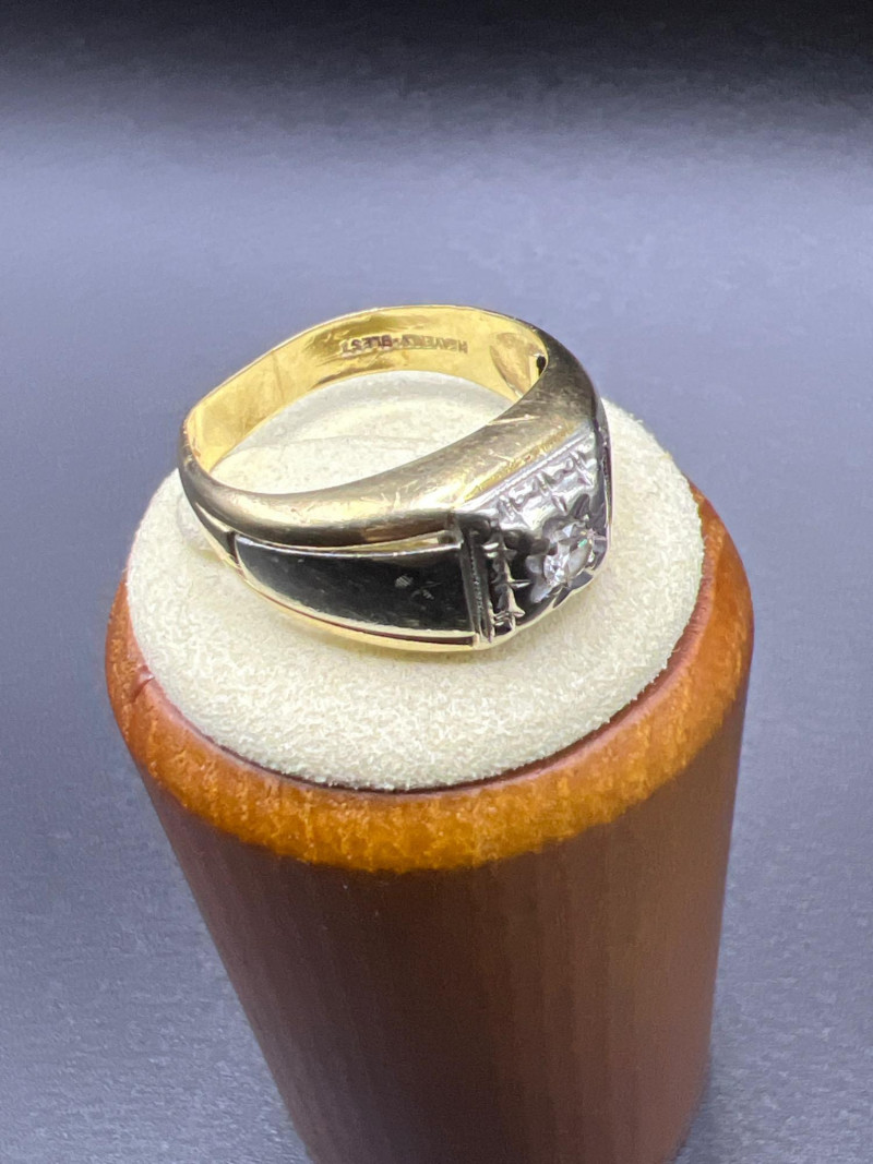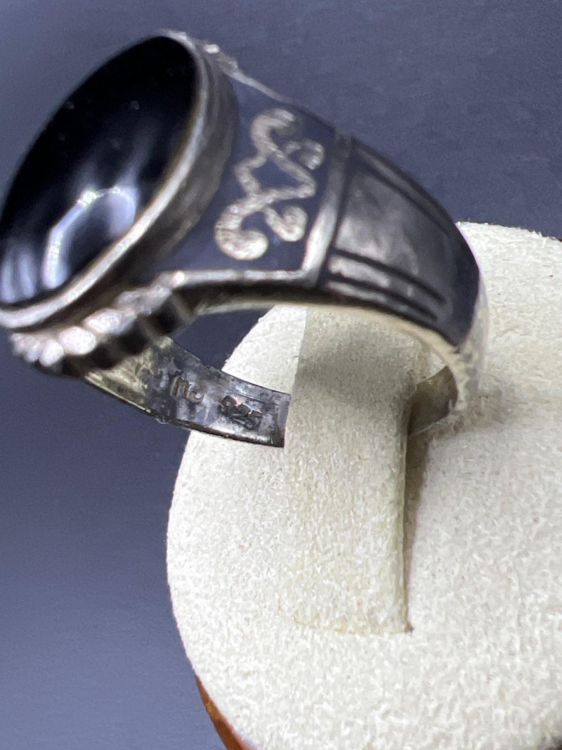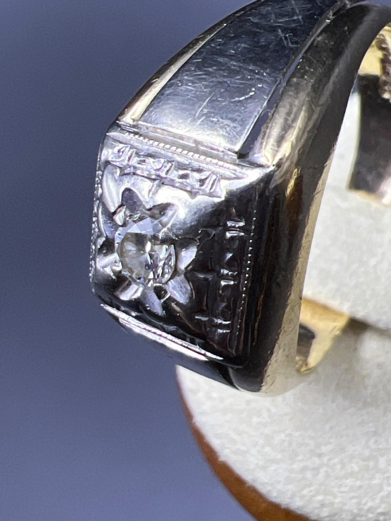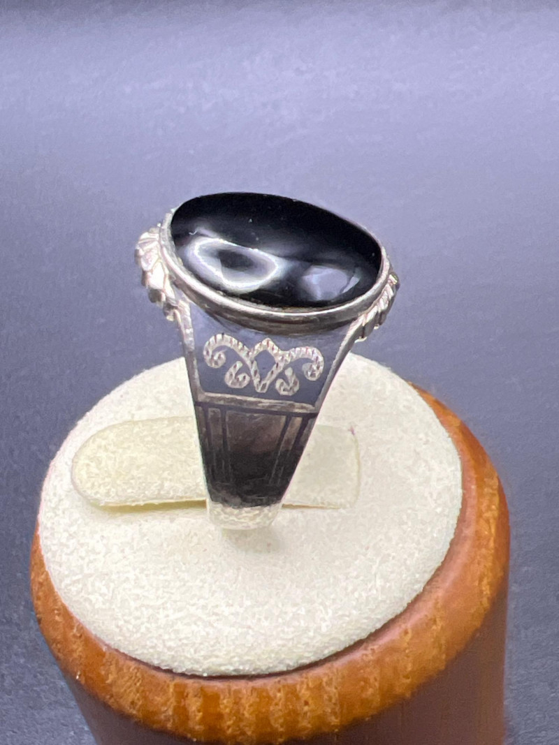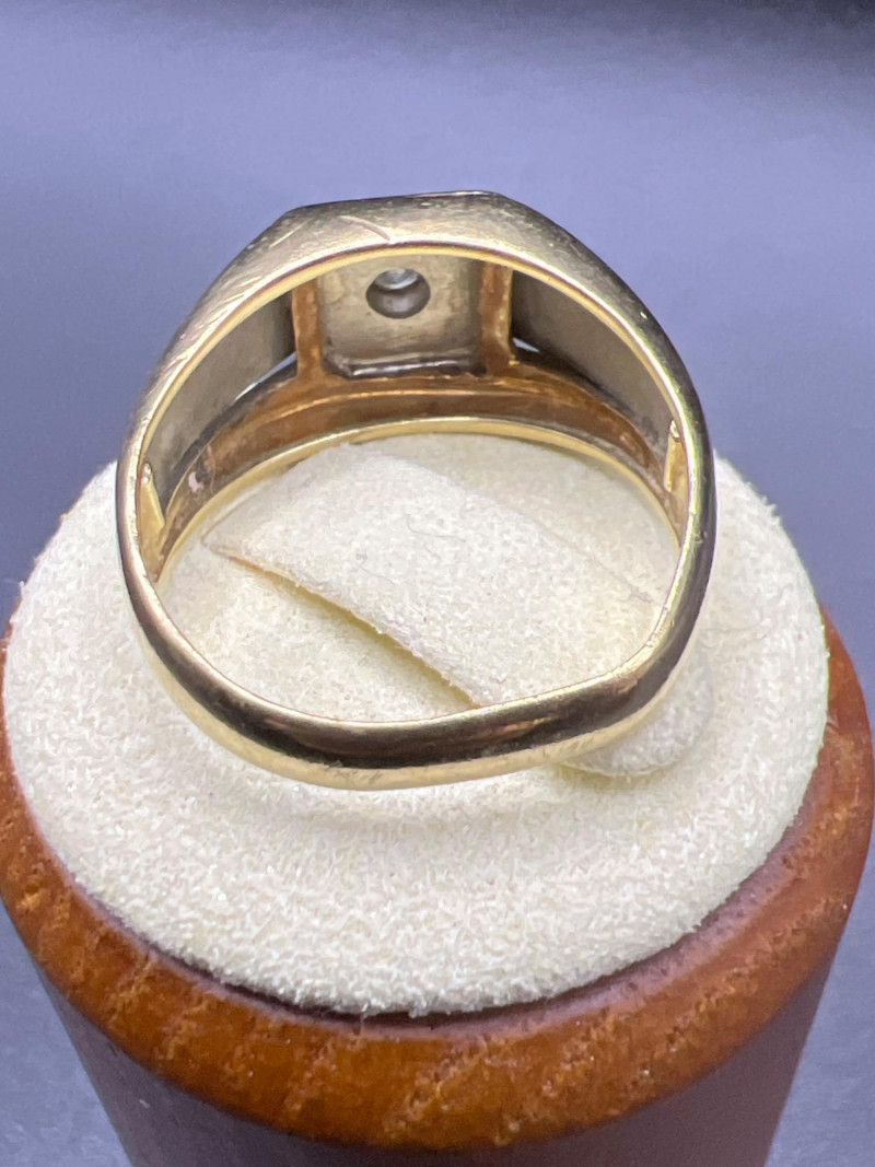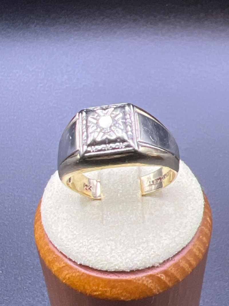This lot features a classic men’s 10K gold ring (size 7.5) with a small diamond set at the center—an understated yet timeless piece that speaks to vintage craftsmanship. Paired with it is a 925 sterling silver ring (size 7) showcasing a bold black glass stone, offering striking contrast and character. Together, these rings balance refinement and statement style, making them ideal for collectors of vintage jewelry or anyone seeking versatile pieces that blend subtle luxury with bold design. Vintage, gently worn with natural patina.