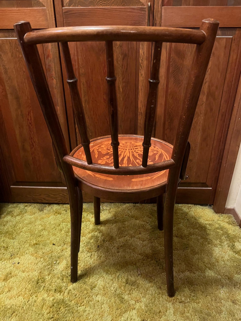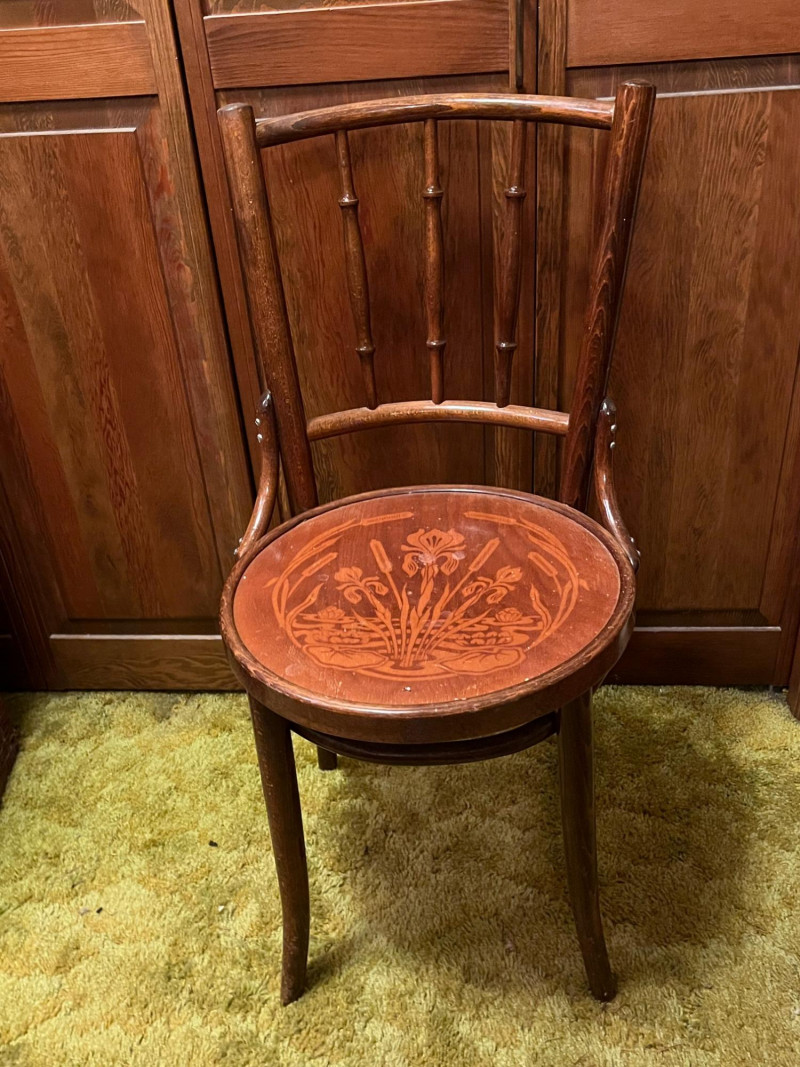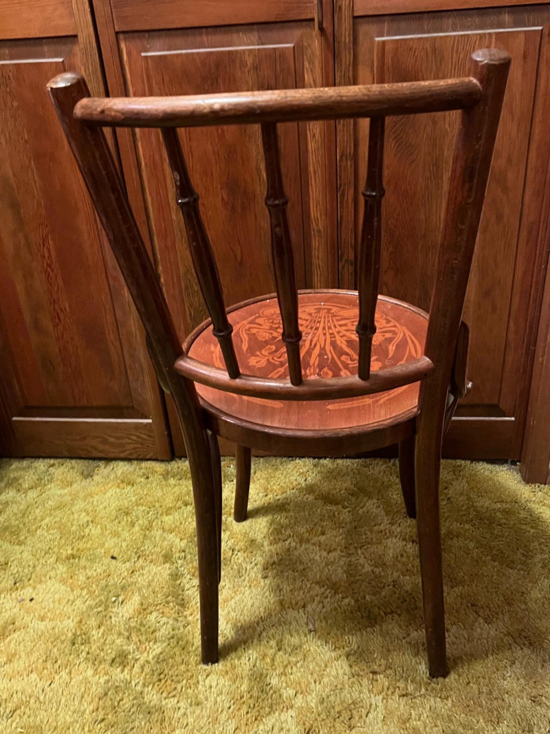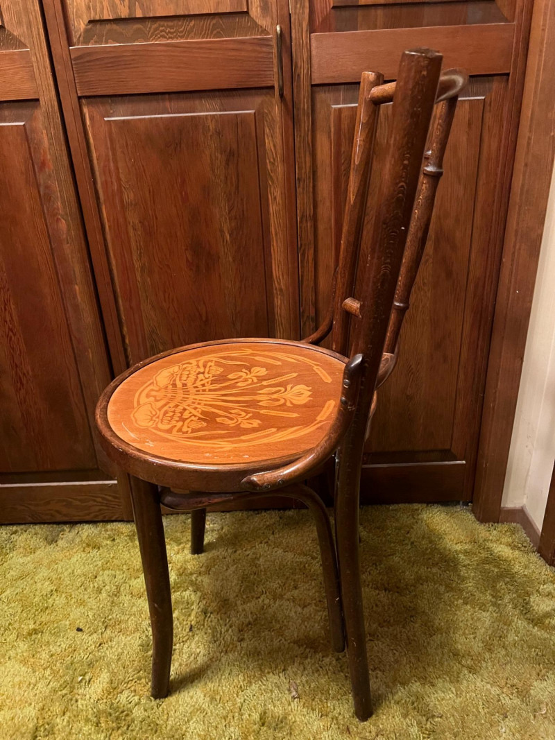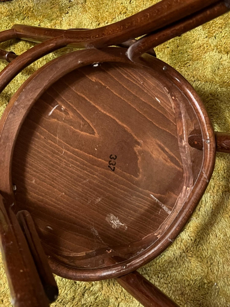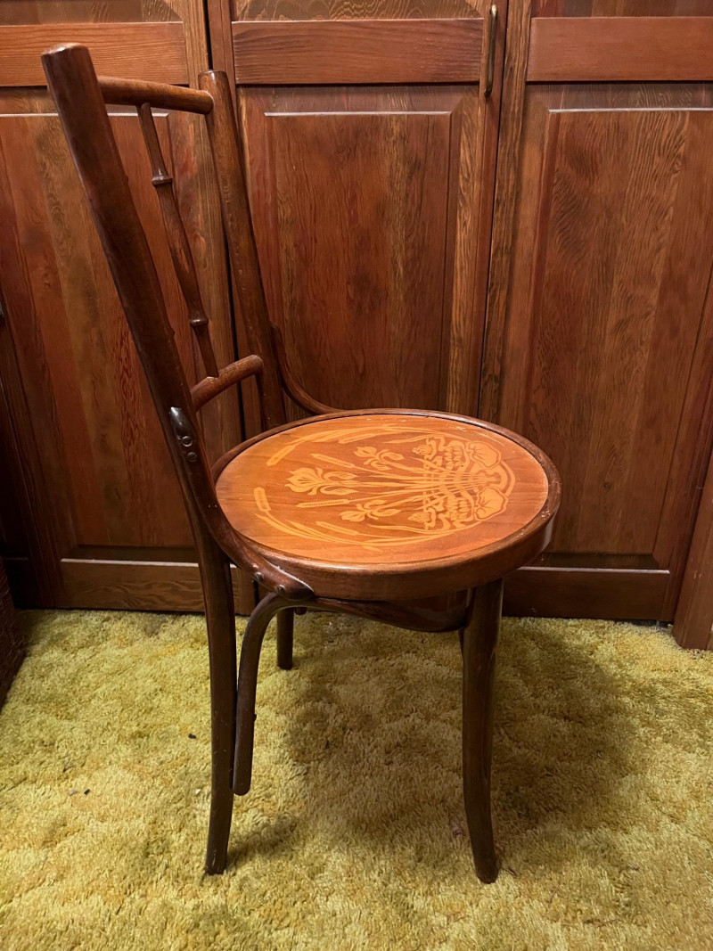 A classic pair of antique bentwood chairs, crafted in the traditional café style associated with early 20th‑century European makers. Each chair features the iconic steam‑bent beechwood frame, graceful curves, and lightweight yet durable construction that made bentwood seating a staple in bistros, parlors, and dining rooms for over a century. Their timeless silhouette and warm wood patina make them ideal for decorators, collectors, or anyone seeking authentic vintage seating with character and charm. Perfect as accent chairs, display pieces, or functional seating in a period‑inspired space.
