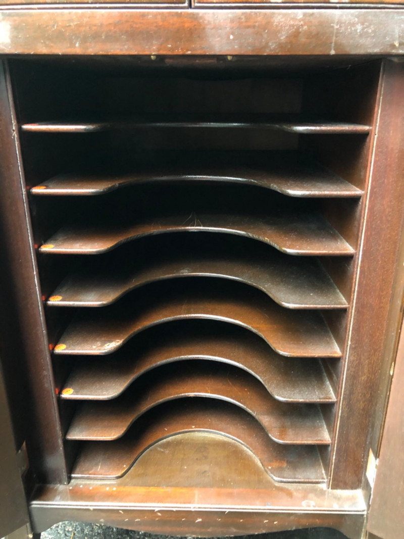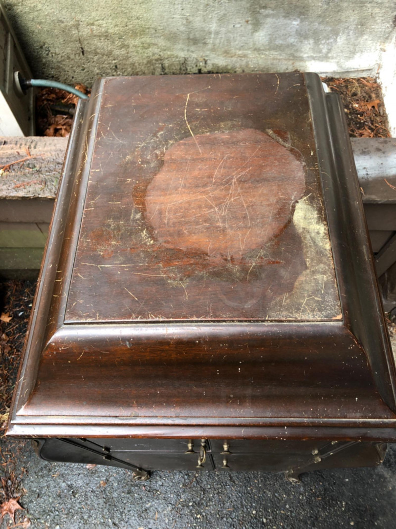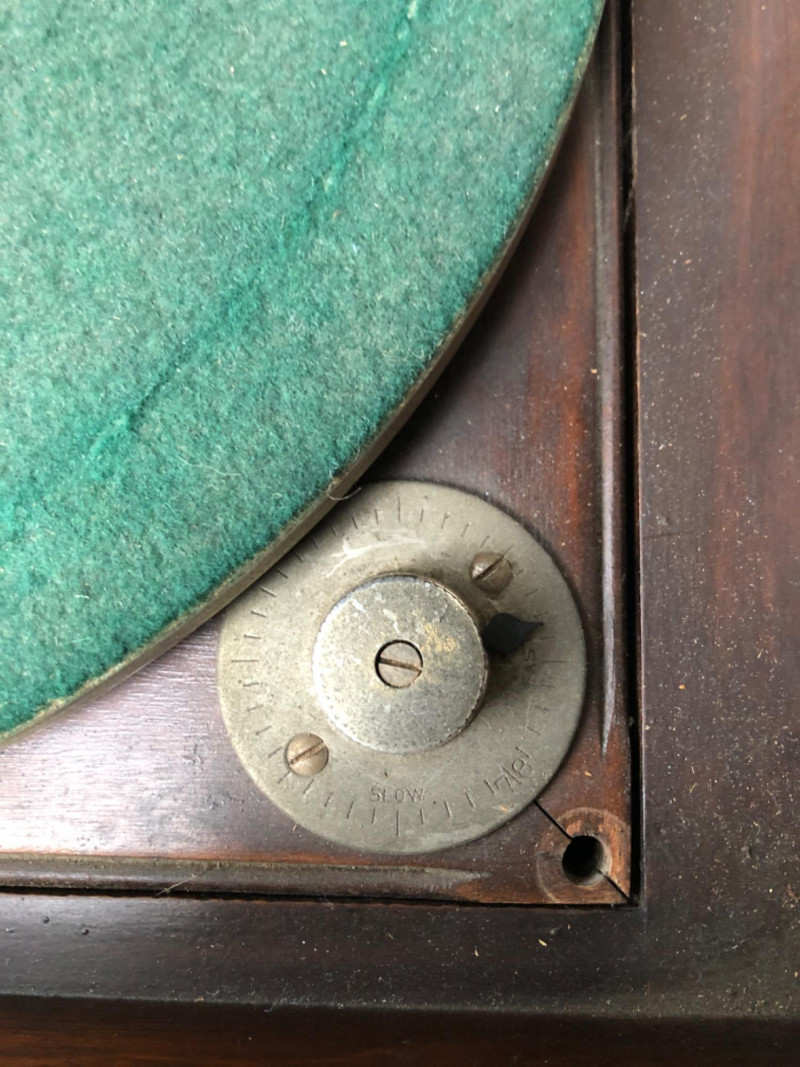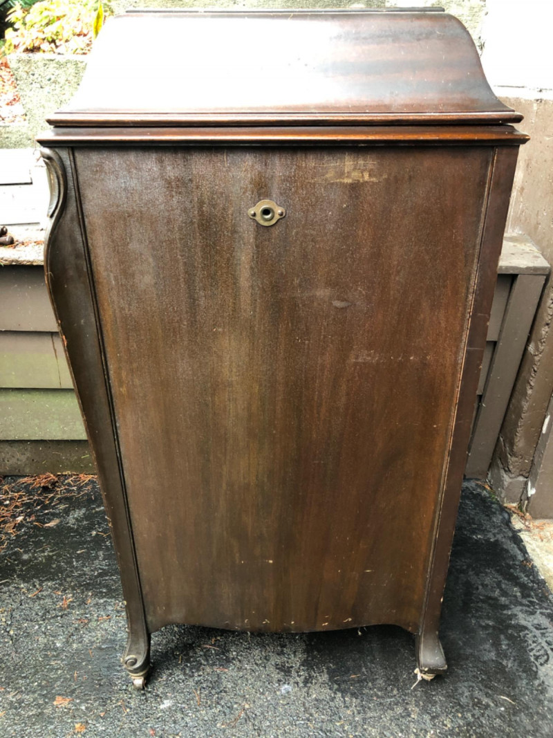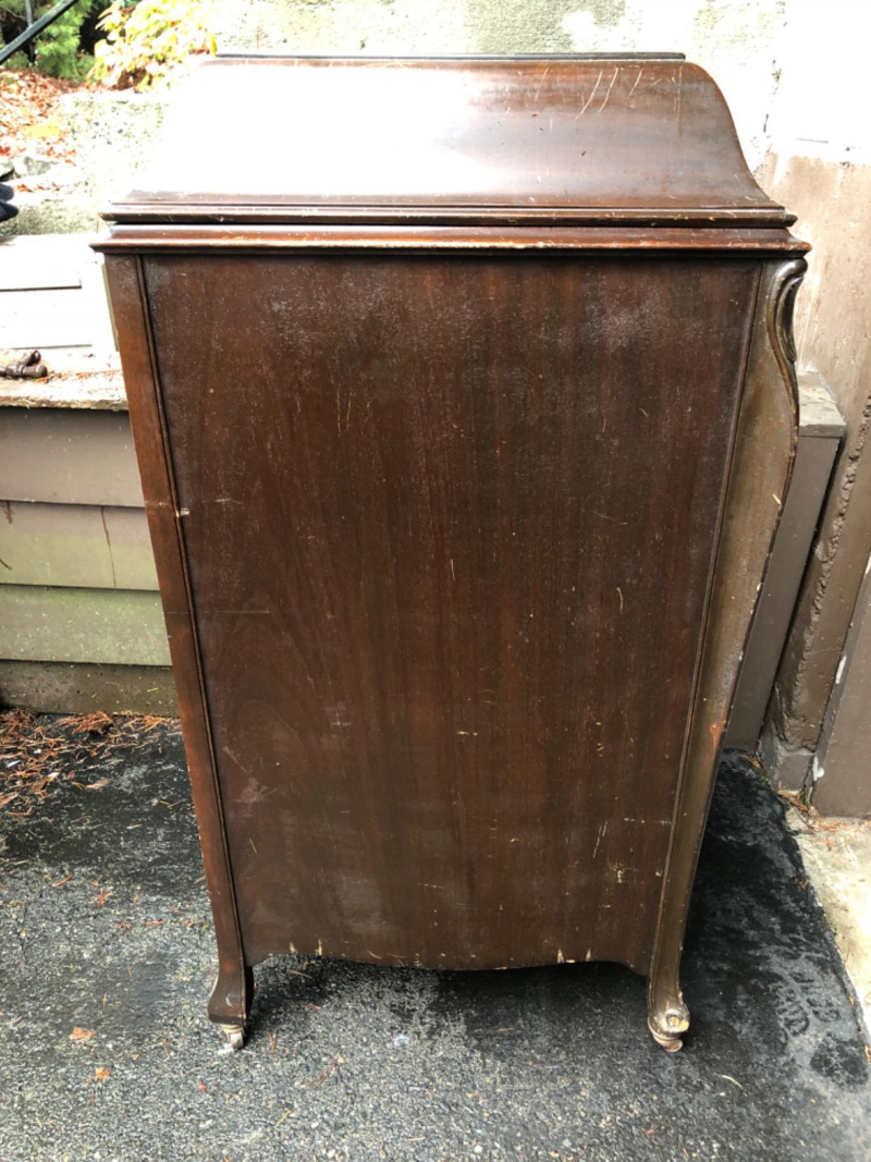 Antique Console-Style Gramophone, 1910–1921 An authentic Victrola XI Type 6 phonograph, serial number 276905G, manufactured by the Victor Talking Machine Company between 1910 and 1921. This console-style cabinet phonograph features a hand-crank motor, internal horn, and plays 78 rpm records with steel needles. The Victrola XI was one of Victor’s most popular models, prized for its elegant wood cabinetry and reliable double-spring motor. This piece represents a true antique in early audio history, blending craftsmanship with cultural significance. Ideal for collectors of phonographs, vintage furniture, or resellers seeking a centerpiece item with strong historical appeal. Condition: Untested; missing crank to wind machine. Some damage to feet, and water spots on lid (see pictures for cabinet condition). Other parts (such as needle) are unconfirmed including function of knobs. Includes 78 RPM records.
