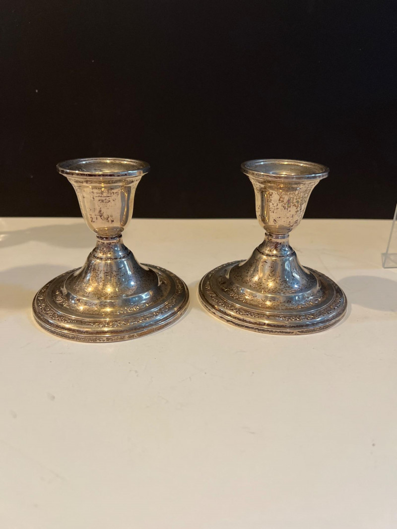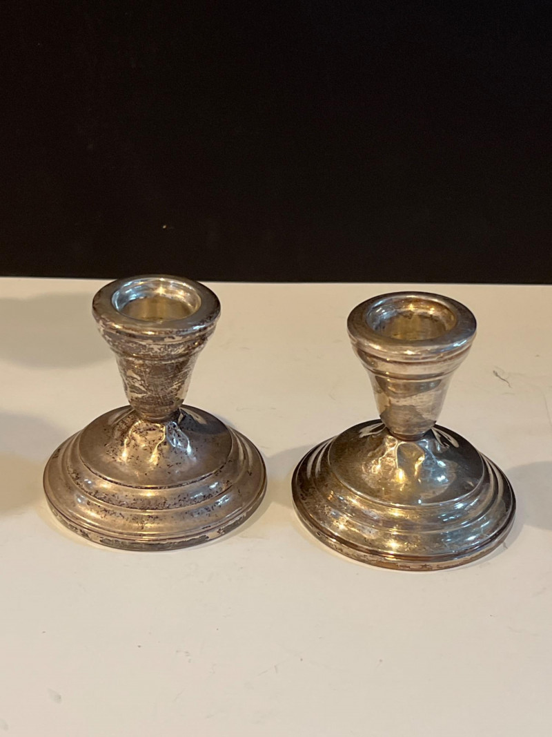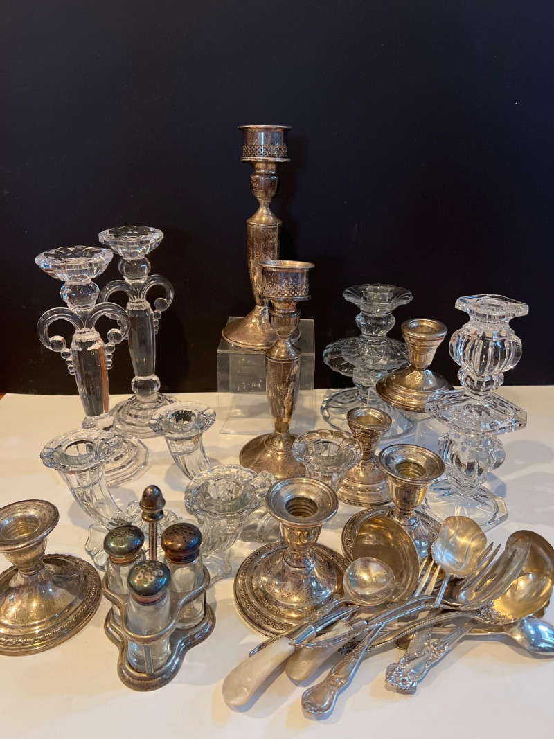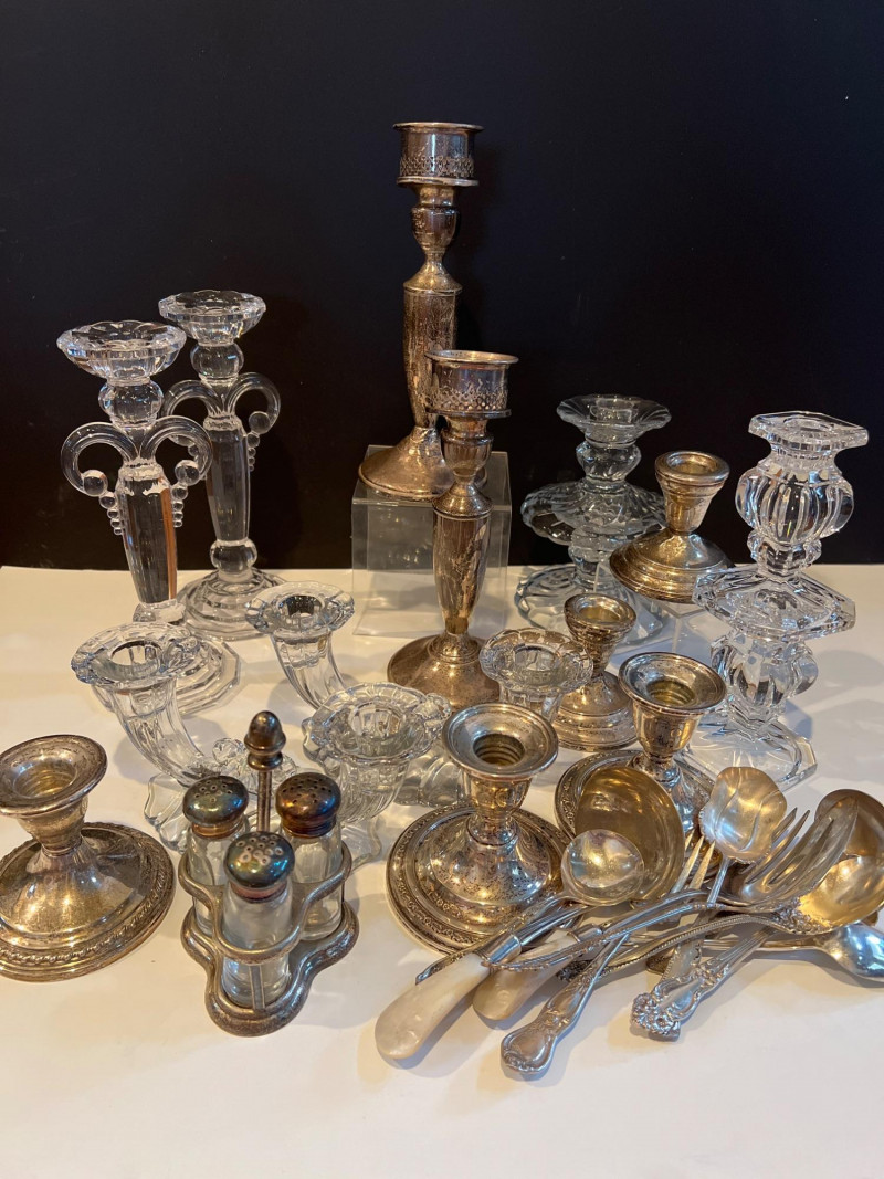 Lot # 34 - Sterling Silver & Crystal Candlesticks with Plated & Glass Tableware