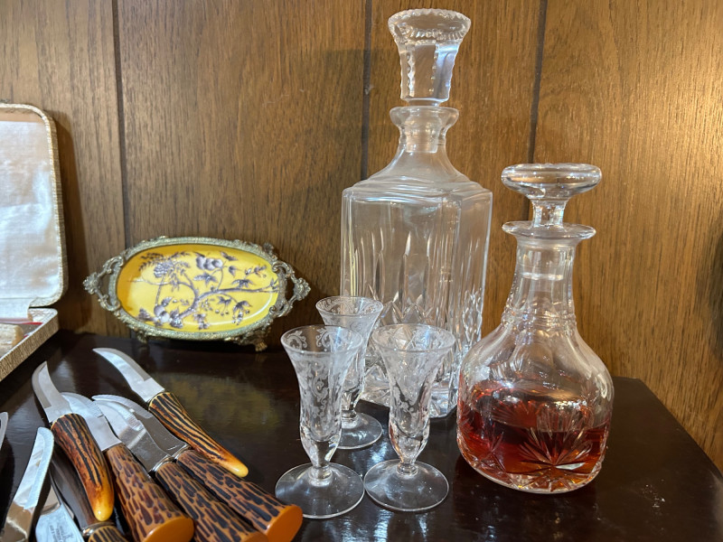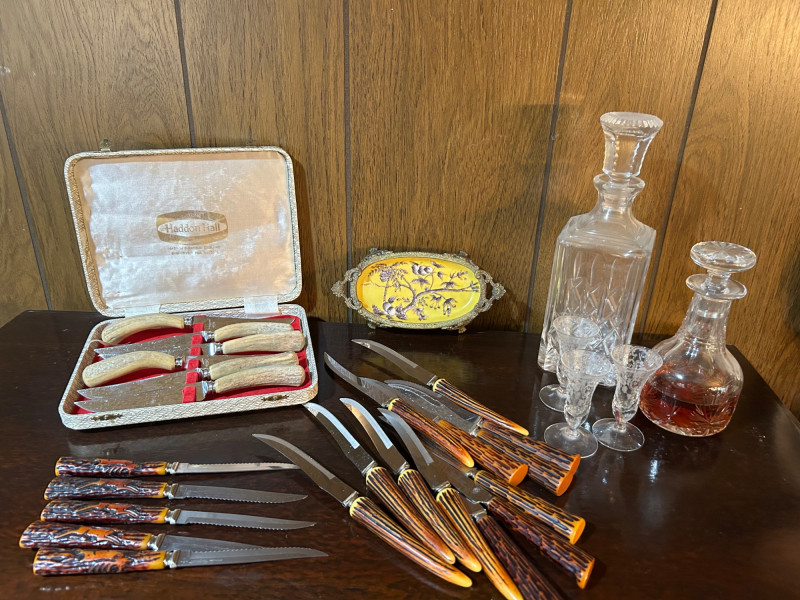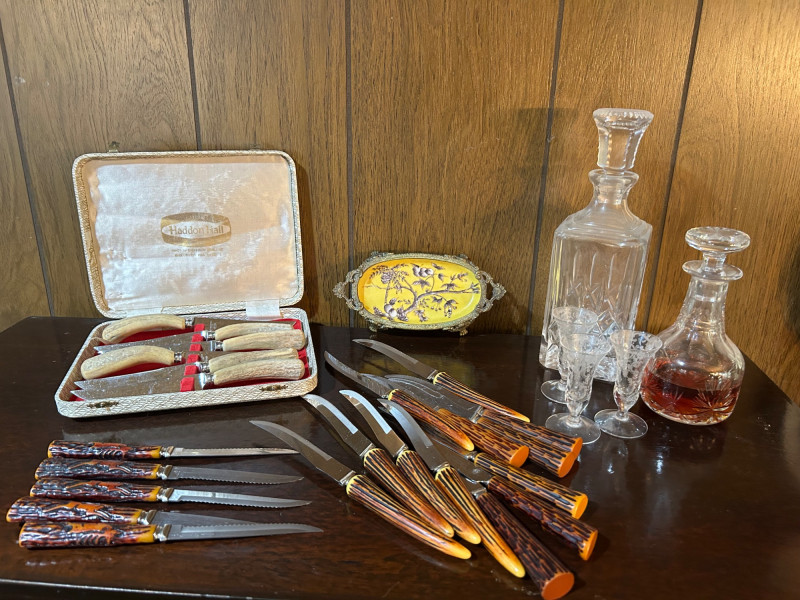 Lot # 41 - Bakelite-Handled Cutlery & Cut Crystal Carafes