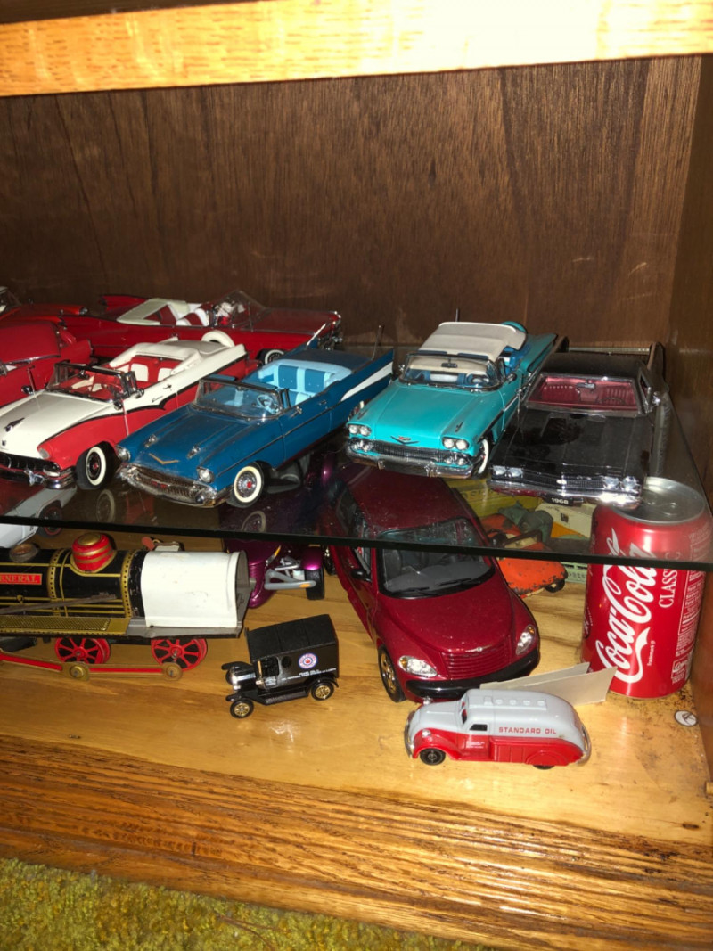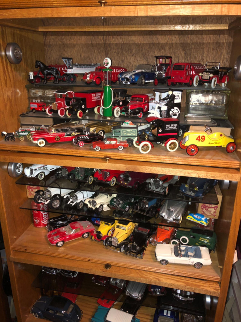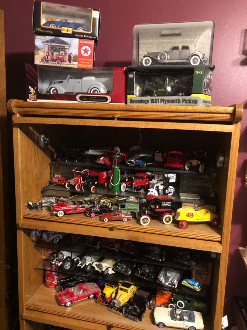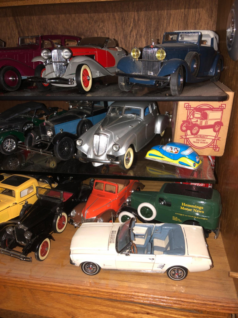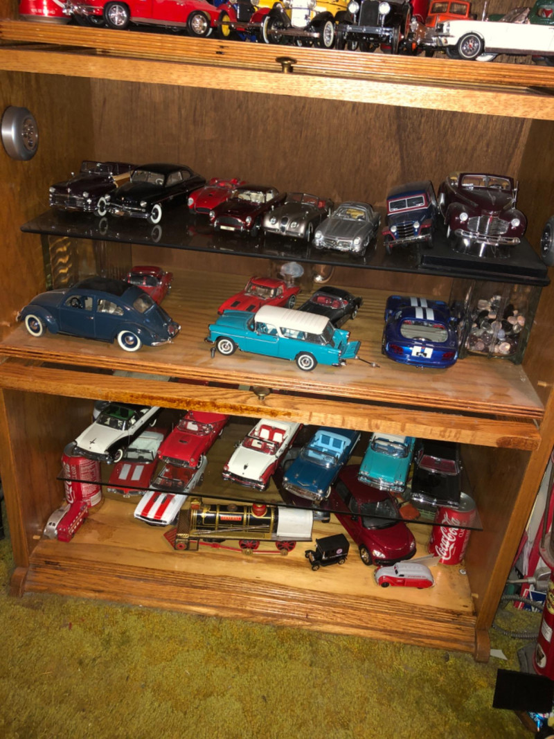 A wide‑ranging collection of die‑cast cars and model vehicles, including boxed pieces and loose display models. The assortment features classic cars, trucks, fire engines, race cars, motorcycles, and themed collectibles from various makers and eras. Several boxed models are included, along with numerous loose vehicles arranged on shelving. This is an excellent bulk lot for collectors, hobbyists, or resellers seeking inventory with strong display appeal and variety. The mix of scales, styles, and manufacturers offers plenty of opportunity for sorting, resale, or expanding an existing collection.