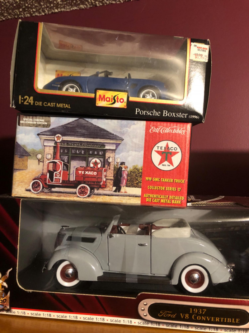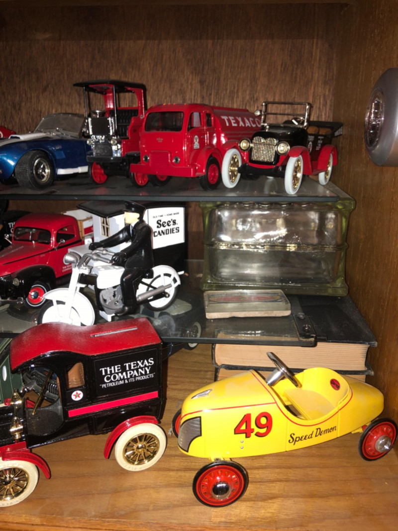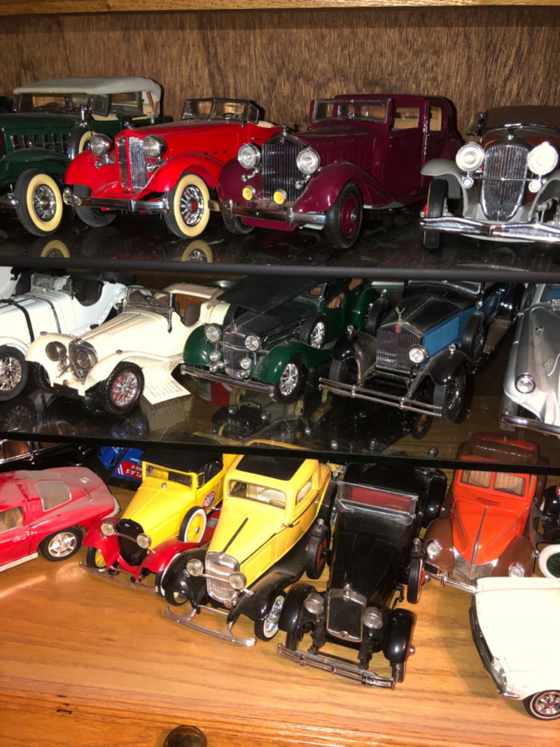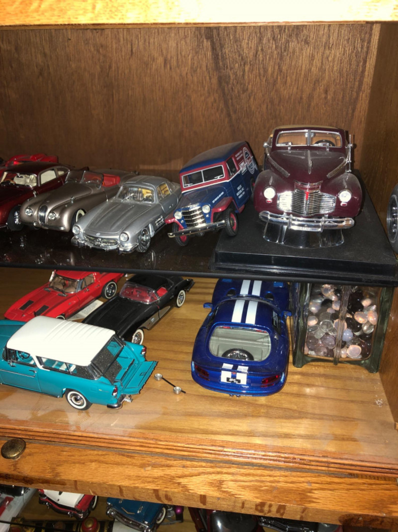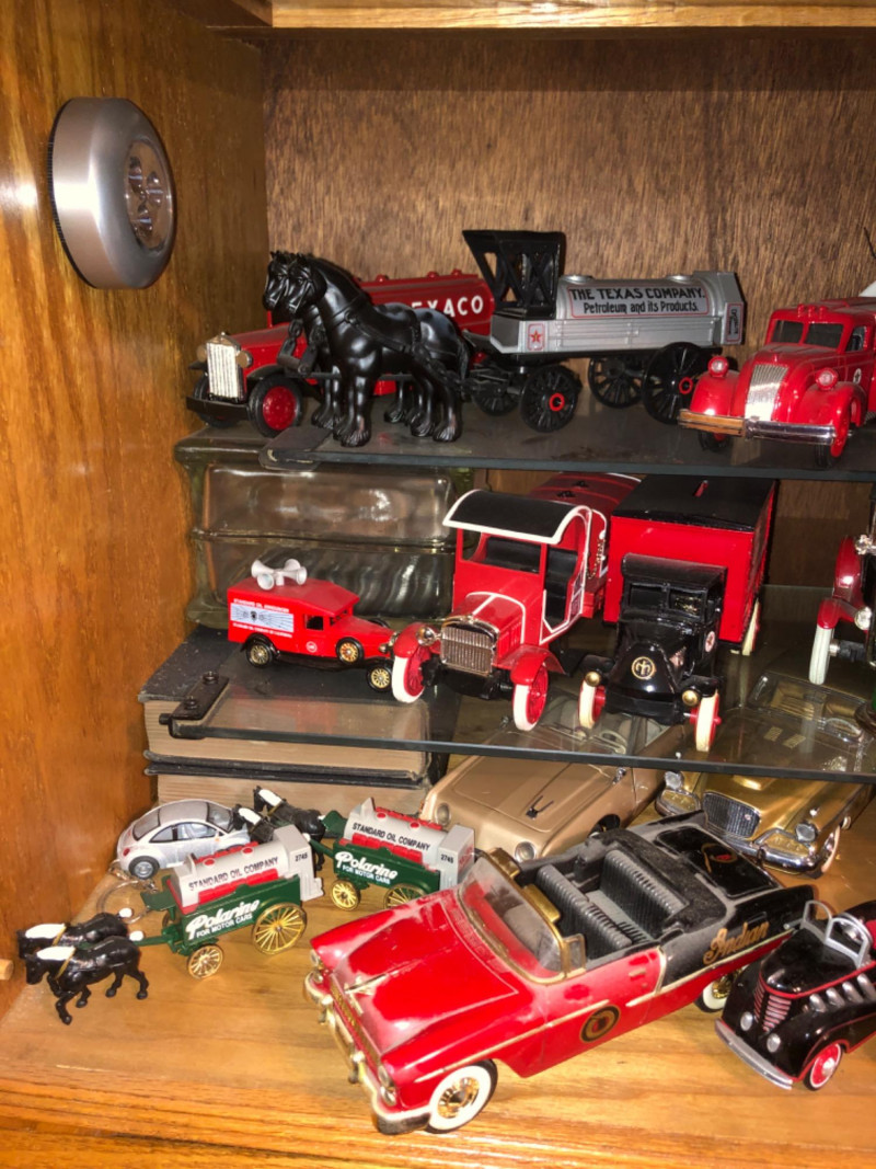 A wide‑ranging collection of die‑cast cars and model vehicles, including boxed pieces and loose display models. The assortment features classic cars, trucks, fire engines, race cars, motorcycles, and themed collectibles from various makers and eras. Several boxed models are included, along with numerous loose vehicles arranged on shelving. This is an excellent bulk lot for collectors, hobbyists, or resellers seeking inventory with strong display appeal and variety. The mix of scales, styles, and manufacturers offers plenty of opportunity for sorting, resale, or expanding an existing collection.