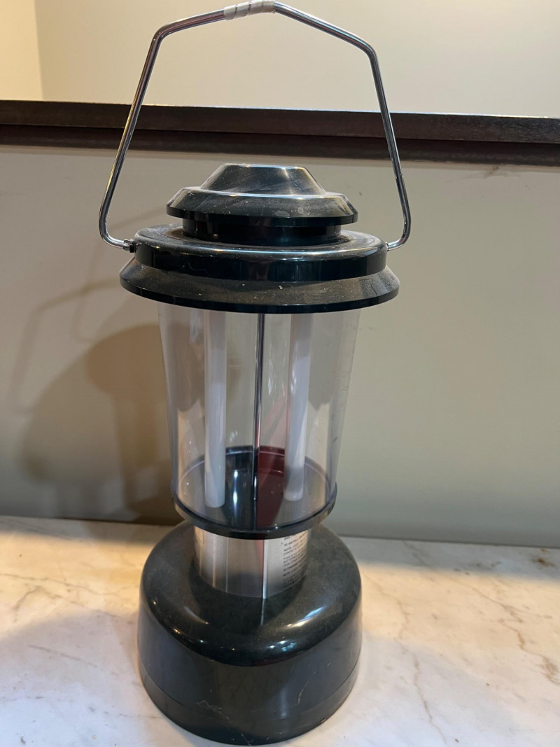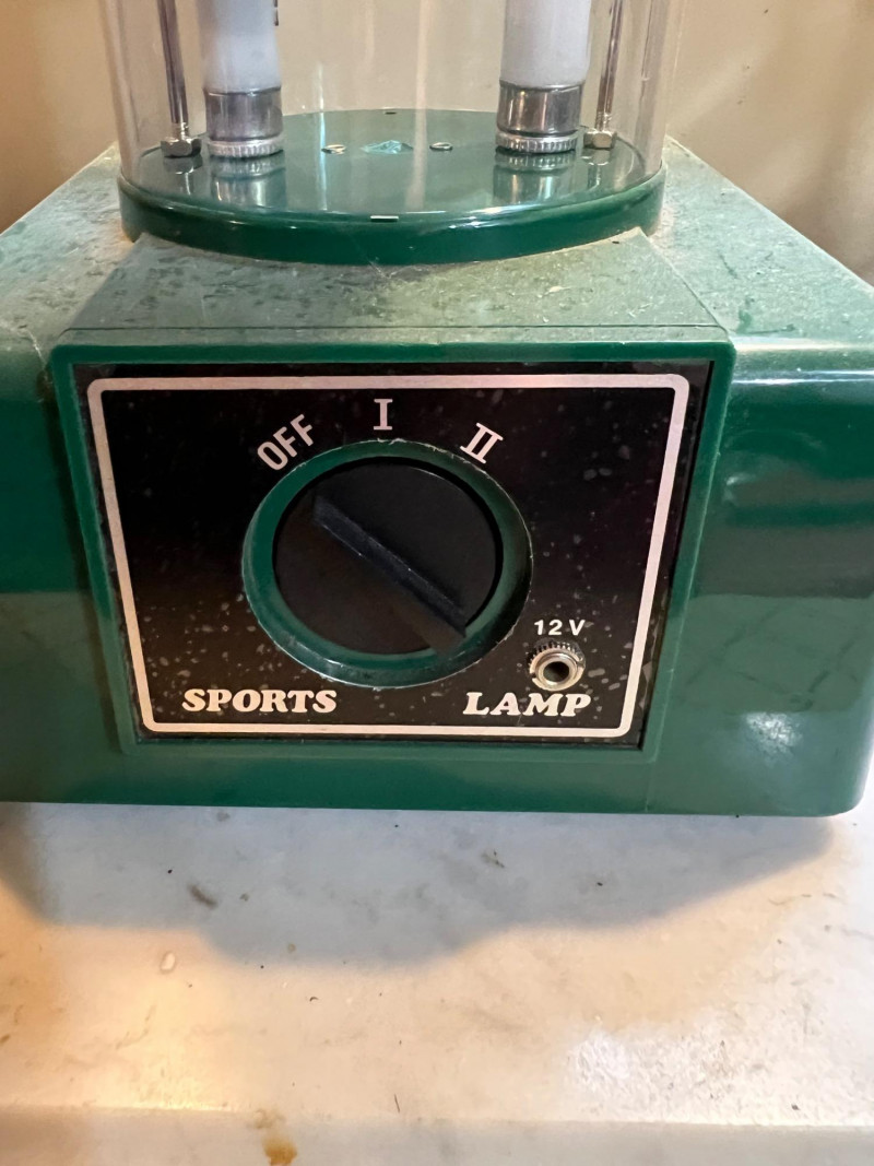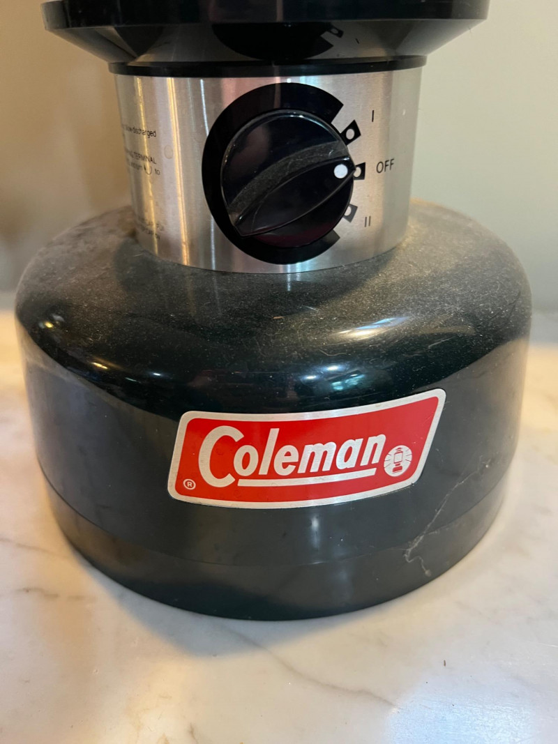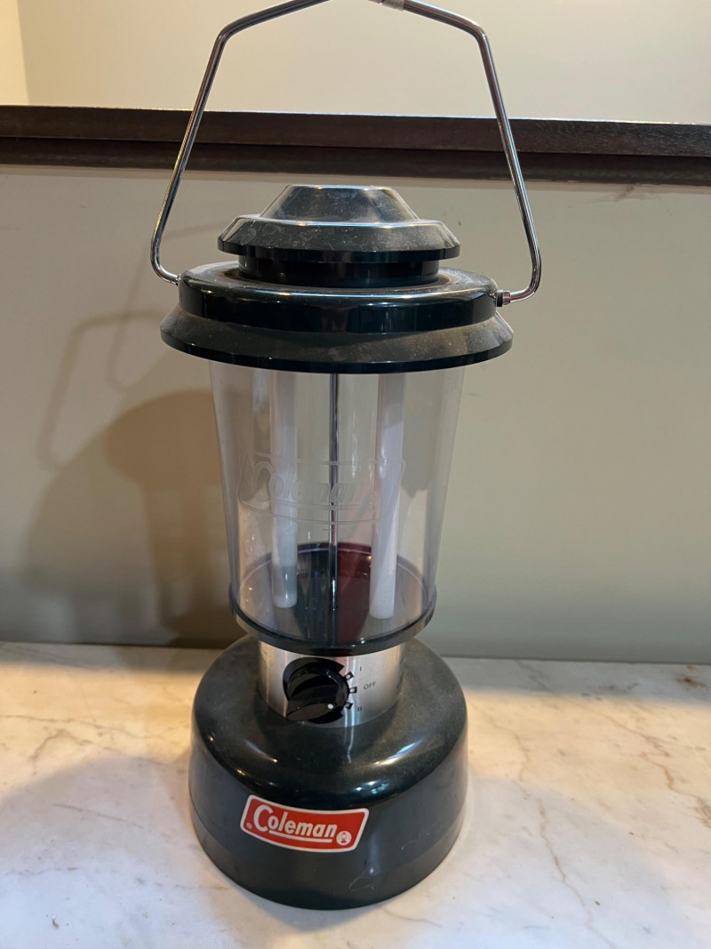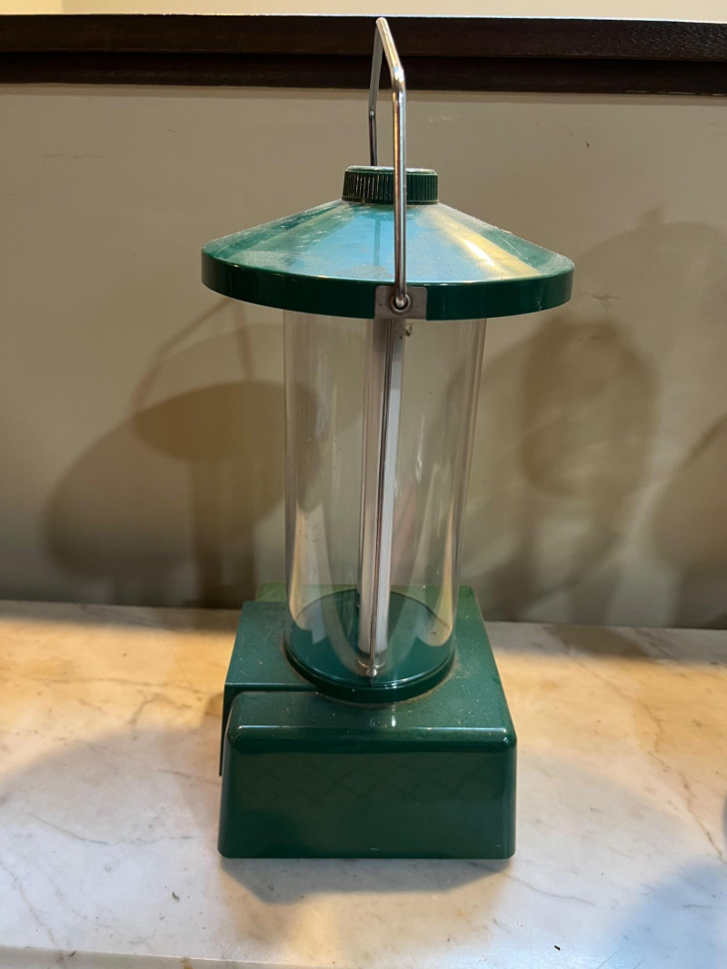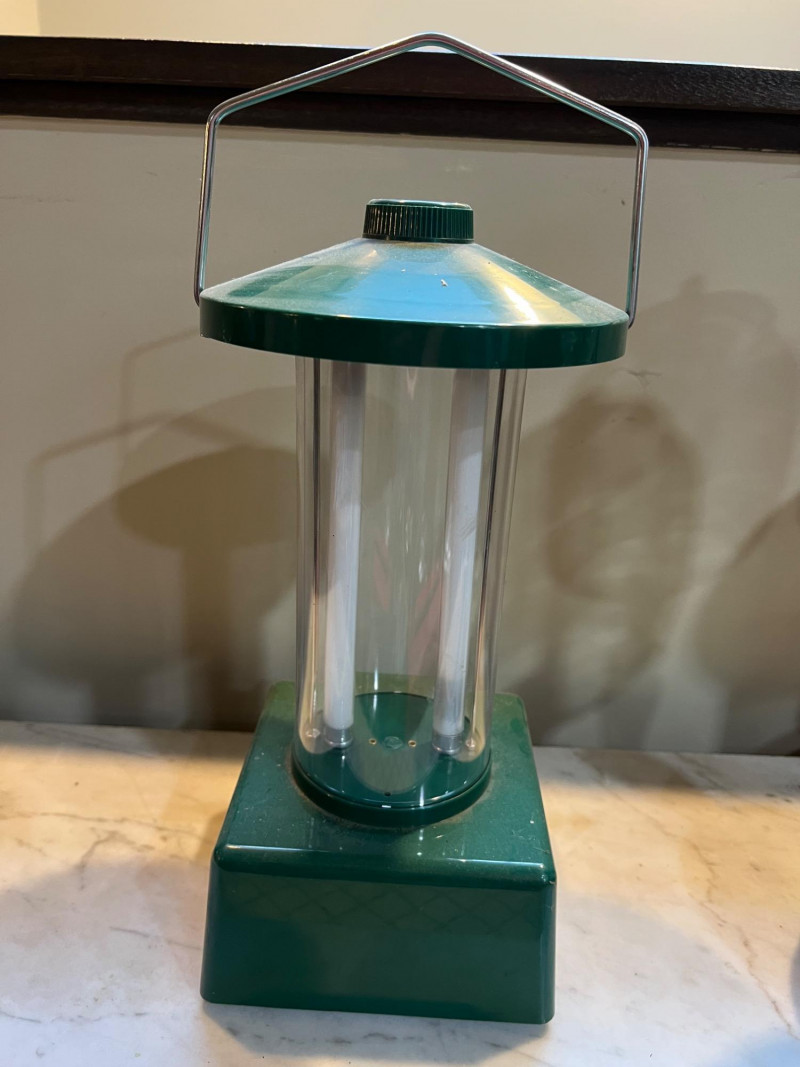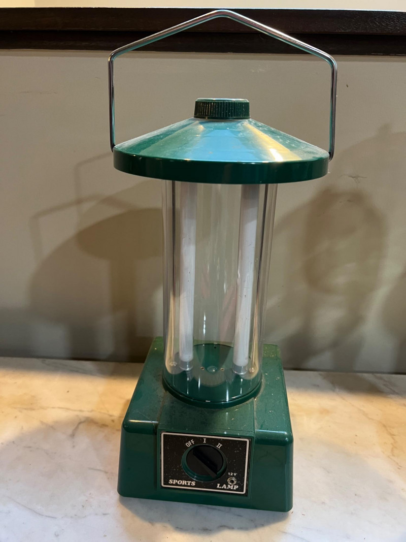 A versatile trio of camping and utility lanterns, including one vintage gas lantern and two electric models. The grouping features: Vintage Green Metal Gas Lantern — Classic design with glass globe and metal burner assembly; ideal for restoration, display, or outdoor décor. Sports Lamp Electric Lantern — Green plastic body with dual fluorescent tubes and rotary switch; great for camping or emergency lighting. Coleman Electric Lantern — Black and clear plastic housing with fluorescent tubes and top handle; a reliable modern camping staple. A practical and collectible mix for outdoor enthusiasts, vintage gear collectors, or resellers looking for easy‑to‑list items. Untested