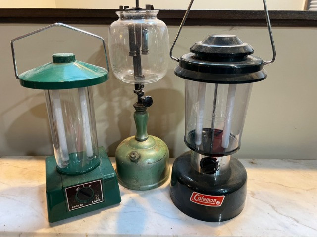 Lot # 64 - Mixed Lantern Trio — Gas & Two Electric Vintage Camping Lanterns