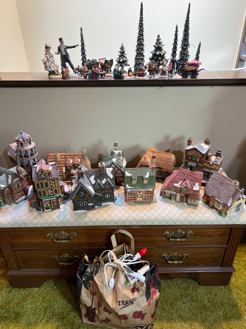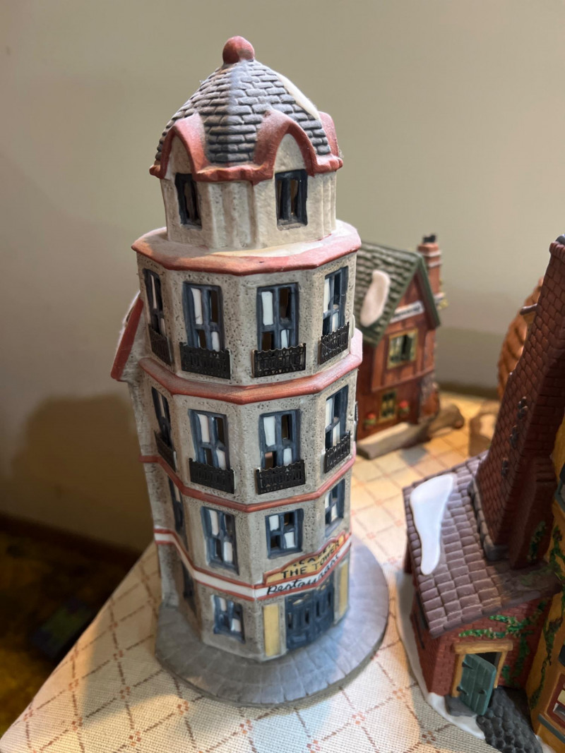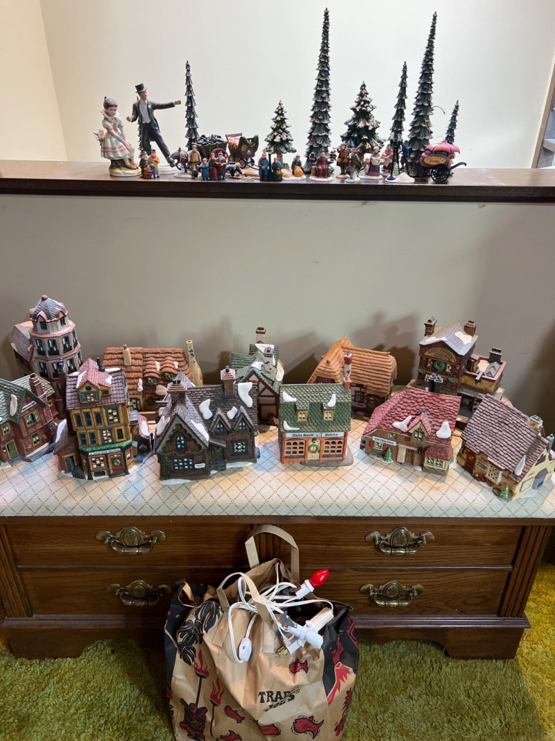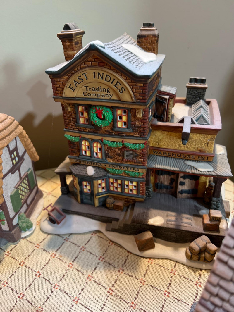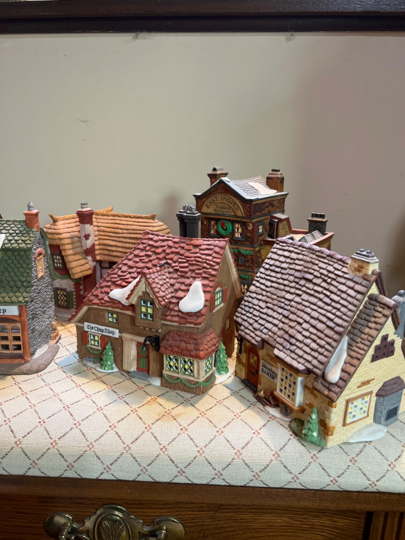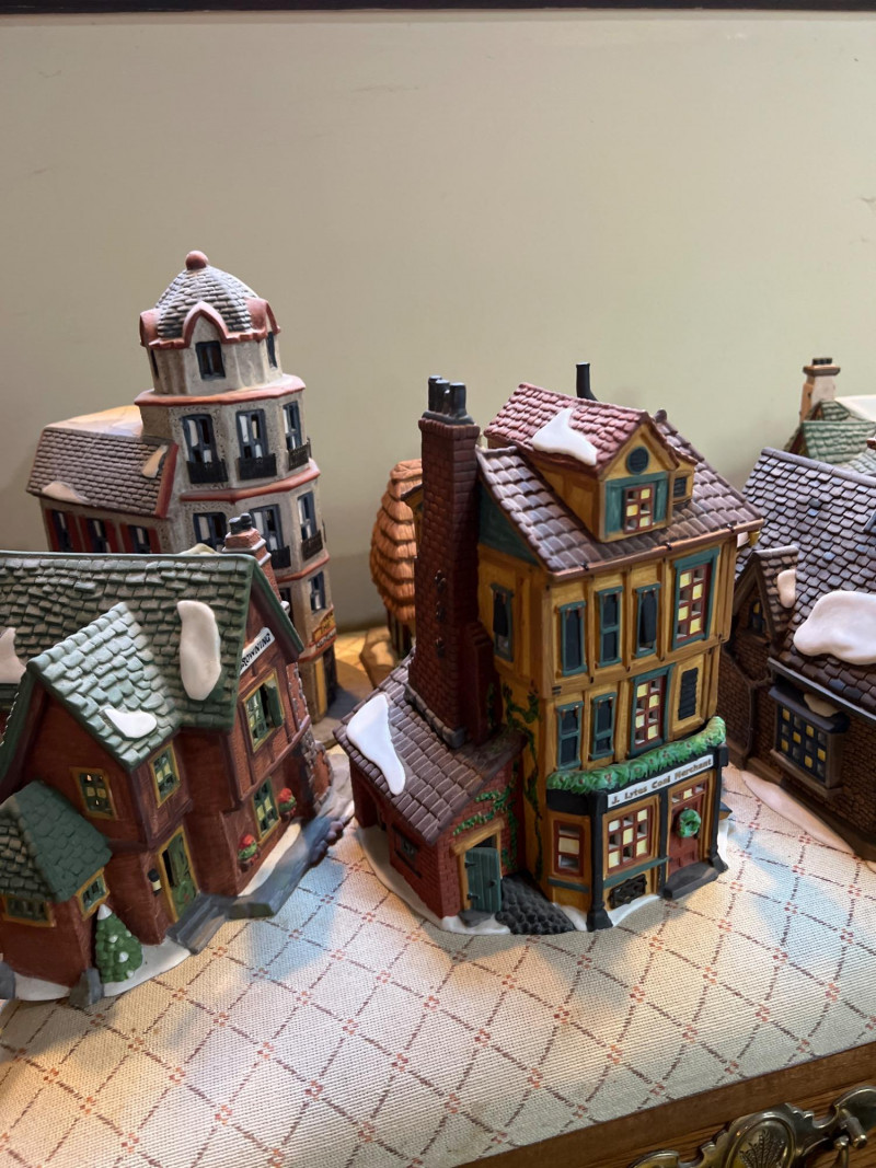 A charming collection from the Dickens Village Series by Department 56, featuring intricately detailed houses accompanied by figures, trees, lights, and cords. This set captures the nostalgic spirit of Victorian England, inspired by Charles Dickens’ beloved stories. Each piece is hand-painted and crafted with fine detail, bringing to life cobblestone streets, festive storefronts, and warm village scenes. The inclusion of figures and accessories enhances the display, creating a complete holiday tableau. With working lights and cords, the set offers both decorative beauty and functional illumination, perfect for seasonal displays or year-round collectors.