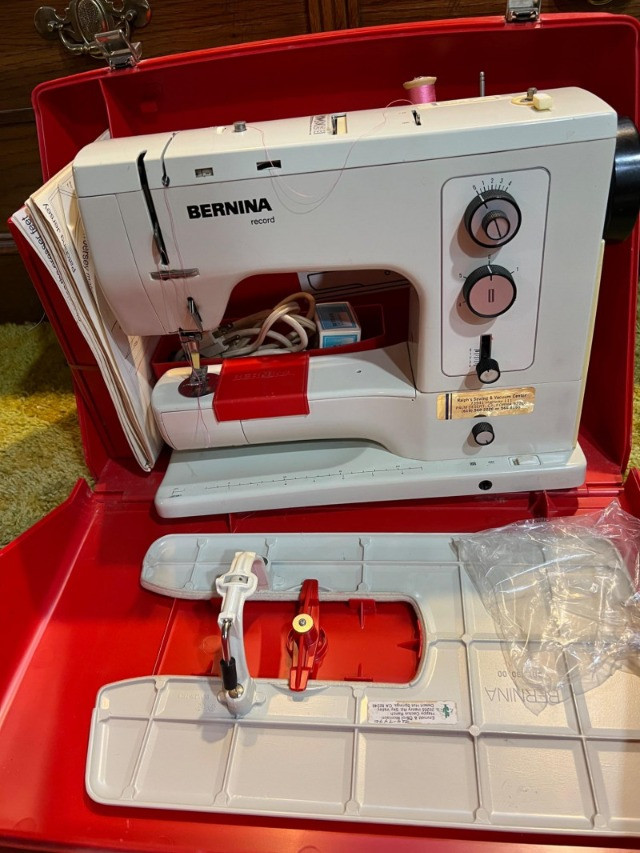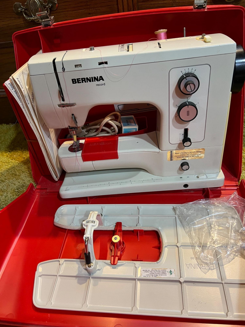 Swiss‑Made Mechanical Classic – Highly Regarded Vintage Model A Bernina 830 Record sewing machine, one of Bernina’s most respected and sought‑after vintage models. Swiss‑made and fully mechanical, the 830 Record is known for its exceptional stitch quality, smooth motor, and all‑metal internal construction. This model was produced during the 1970s, making it a true vintage machine with a reputation for lasting decades. Features include adjustable stitch length and width, multiple utility and decorative stitches, and Bernina’s precision engineering throughout. A favorite among quilters, tailors, and sewists who value reliability and power. Sewing machine is untested. Offered As-is. Includes case, instructions and accessories.