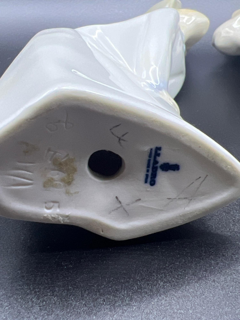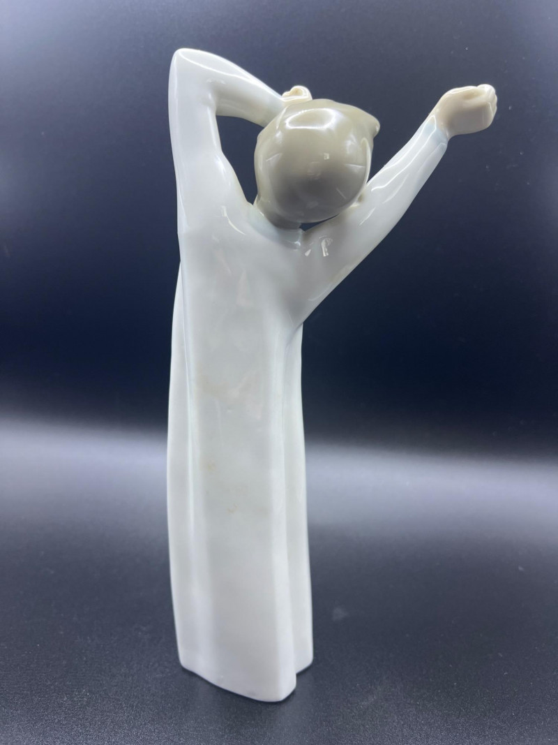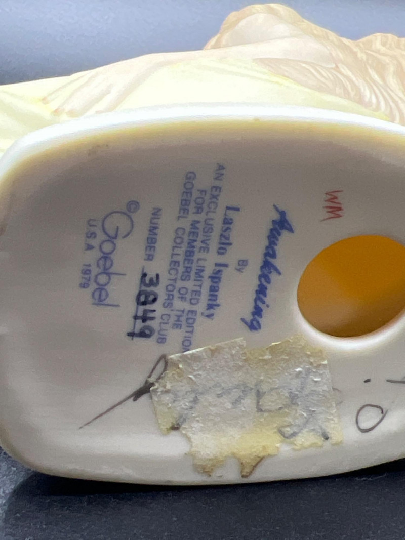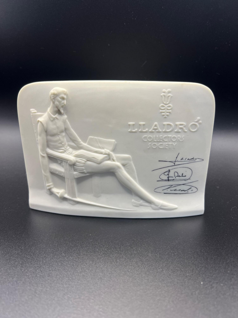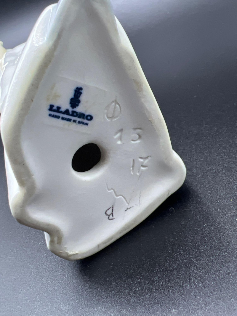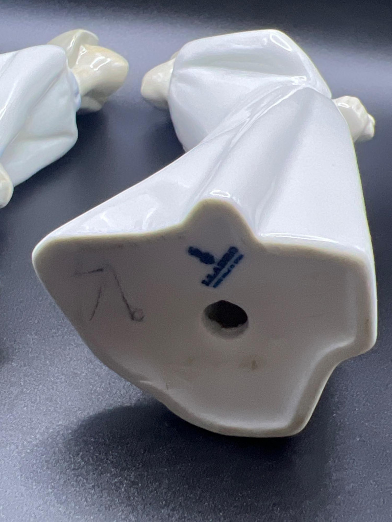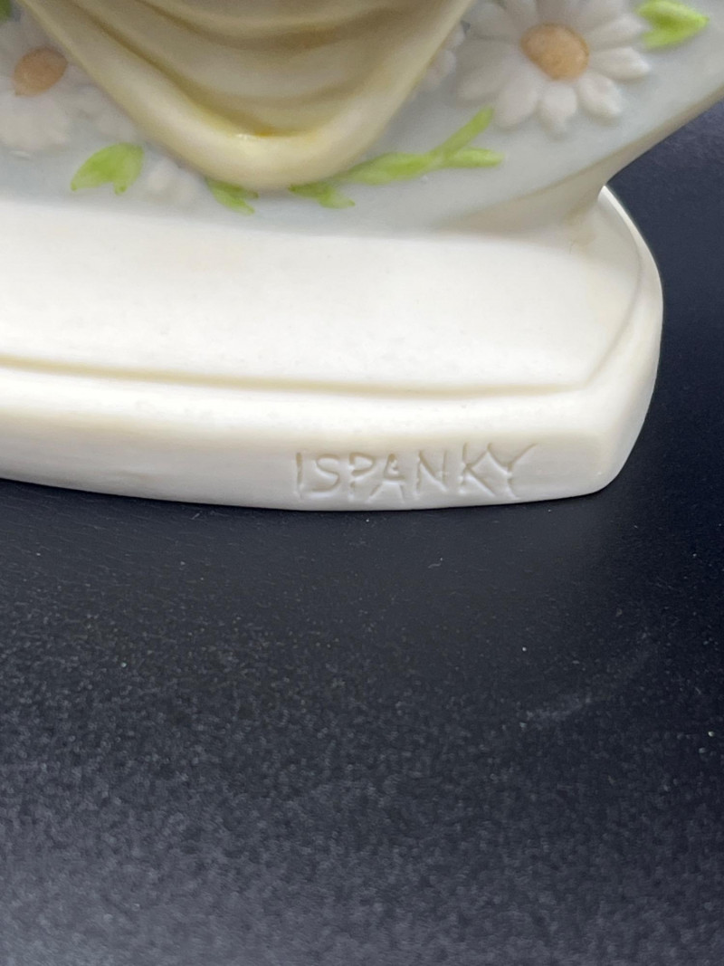 A beautiful grouping of fine porcelain figurines, featuring authentic Lladró children, a signed Lladró Collectors Society plaque, and a striking Ispanky sculpture. Included are: Lladró Boy & Girl Leaning Forward (Kissing Pose) — A charming paired display from Lladró’s Children/Youth series, each child leaning forward with hands behind their back, crafted with the soft pastel palette and expressive innocence characteristic of Lladró’s early work. Lladró Yawning/Stretching Boy — A delightful figure depicting a sleepy child mid‑stretch, capturing motion and personality with Lladró’s signature smooth glazing and gentle detailing. Ispanky “Awakening” Figurine — A dramatic and expressive sculpt by Laszlo Ispanky, known for his elegant forms and emotional presence. This piece adds artistic contrast to the softer Lladró children. Lladró Collectors Society Standing Plaque (Signed) — A porcelain membership plaque featuring the classic Lladró bellflower emblem, signed and designed for display, adding collectible value to the lot. Together, these pieces create a refined blend of whimsy, artistry, and collectible prestige, ideal for Lladró enthusiasts, porcelain collectors, or decorative display.
