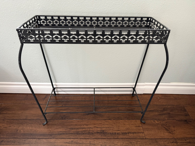 Lot # 175 - Black Metal Plant Stand with Floral Cutout Design