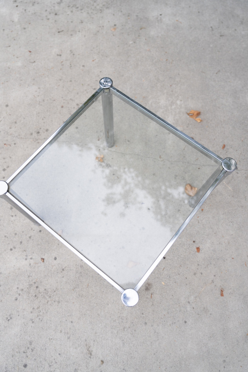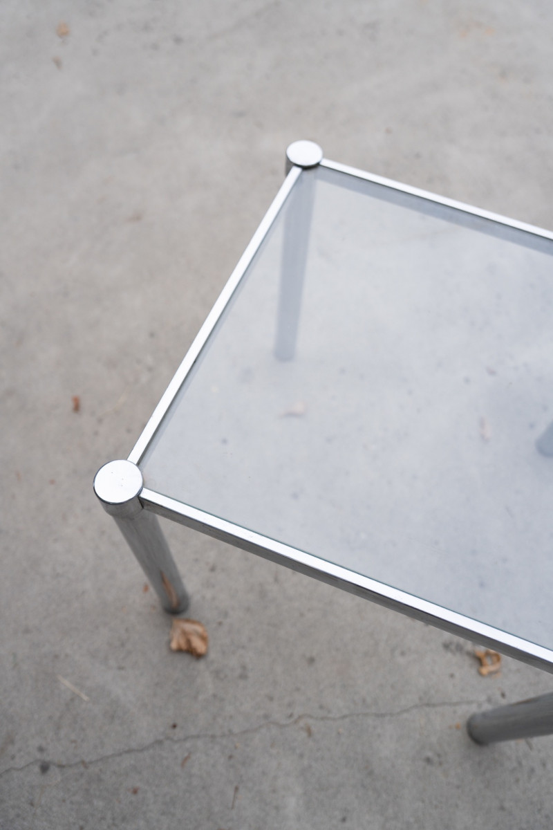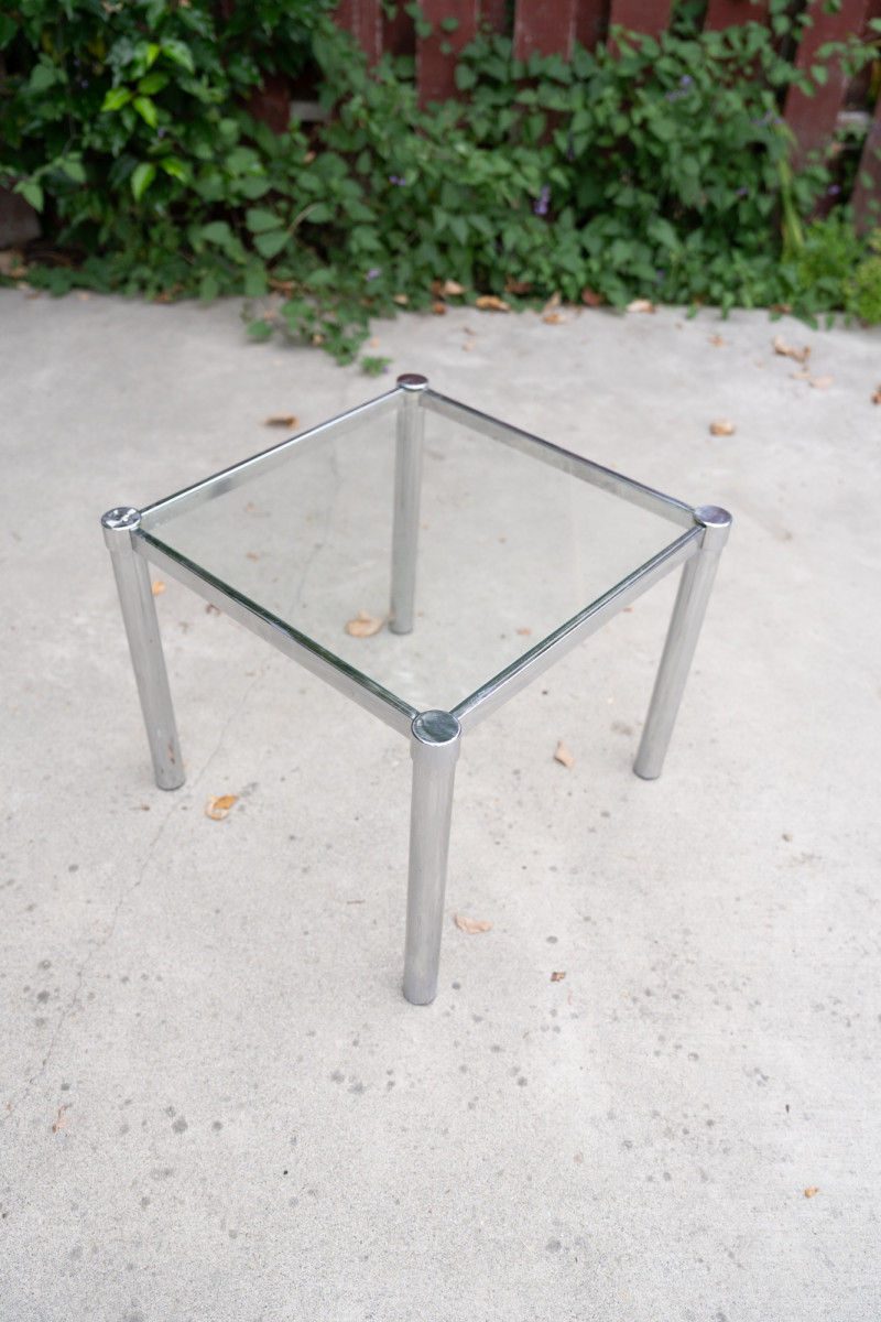 Lot # 50 - Mid-Century Modern Chrome & Glass Side Table – 1970s Minimalist Design