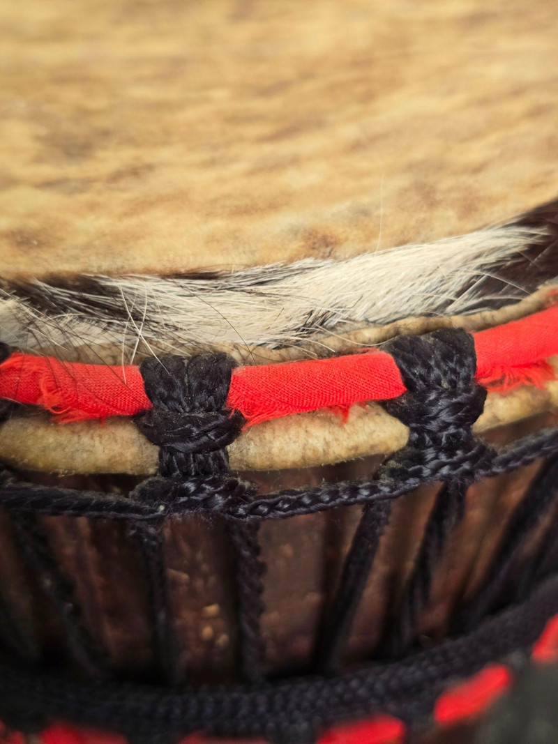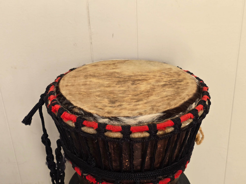 Lot # 2 - Hand-Carved African Djembe Drum – Rope-Tuned – Carved Faces Base