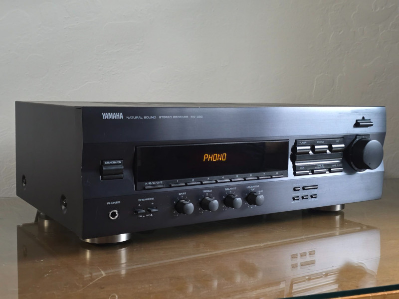 Offered here is a Yamaha RX‑496 Natural Sound Stereo Receiver, a well‑regarded two‑channel unit known for clean amplification and dependable build quality. This example has been tested and is fully functional. The RX‑496 features an integrated amplifier, preamplifier section, and a dedicated Phonoinput, making it turntable‑readyright out of the box. Yamaha’s Natural Sound design philosophy emphasizes low distortion, wide frequency response, and neutral playback—ideal for both vintage and modern audio setups. Features & Details • Yamaha Natural Sound Series • Two‑channel stereo receiver • Integrated amplifier + preamplifier • Phono input for turntable use• Multiple line‑level inputs for auxiliary components • AM/FM tuner • Tested and operational Condition Clean vintage condition with normal signs of use consistent with age. All tested functions operate as expected. A solid, reliable Yamaha receiver suitable for vinyl listening, home stereo systems, or collectors of quality 1990s audio gear.