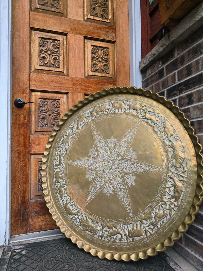 Lot # 6 - Large 30Lbs Vintage Hand‑Engraved Brass Tabletop – Made in India